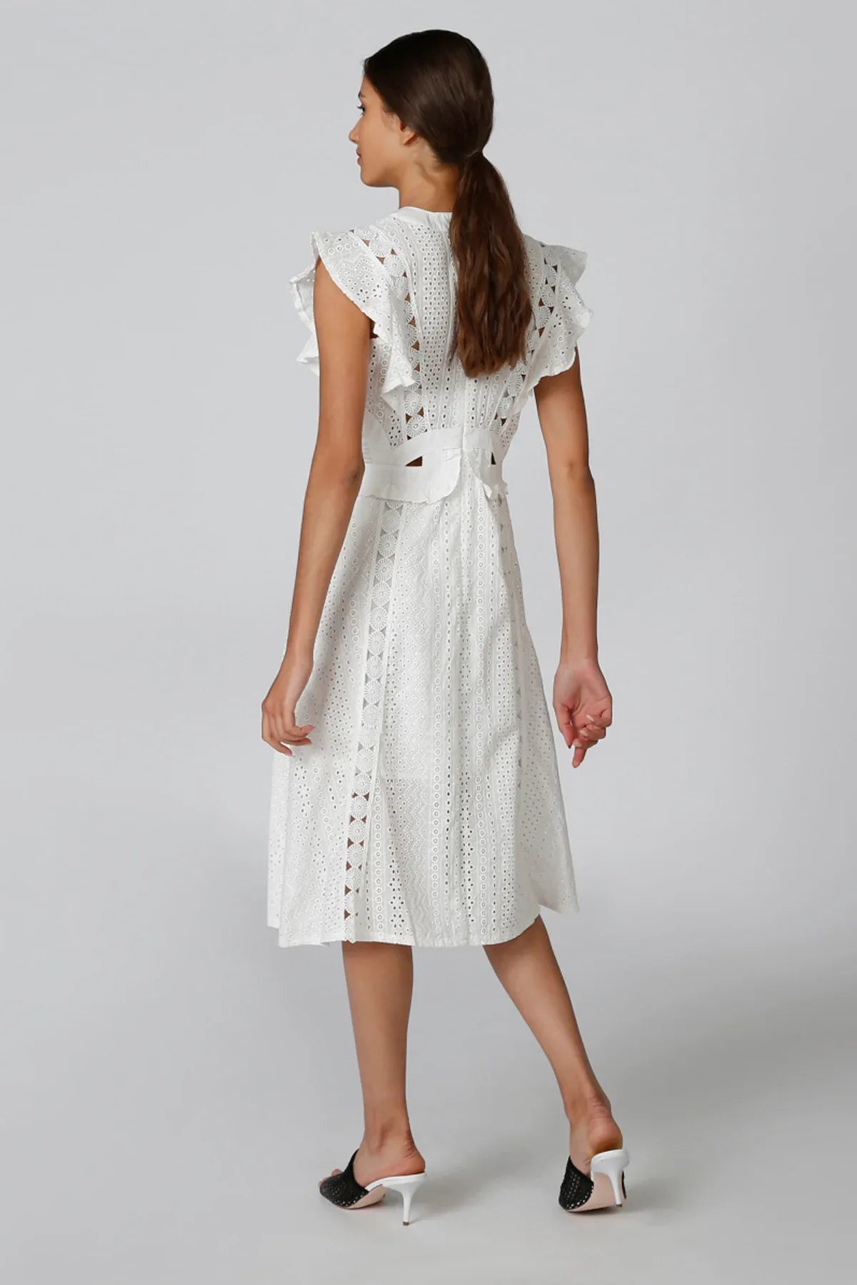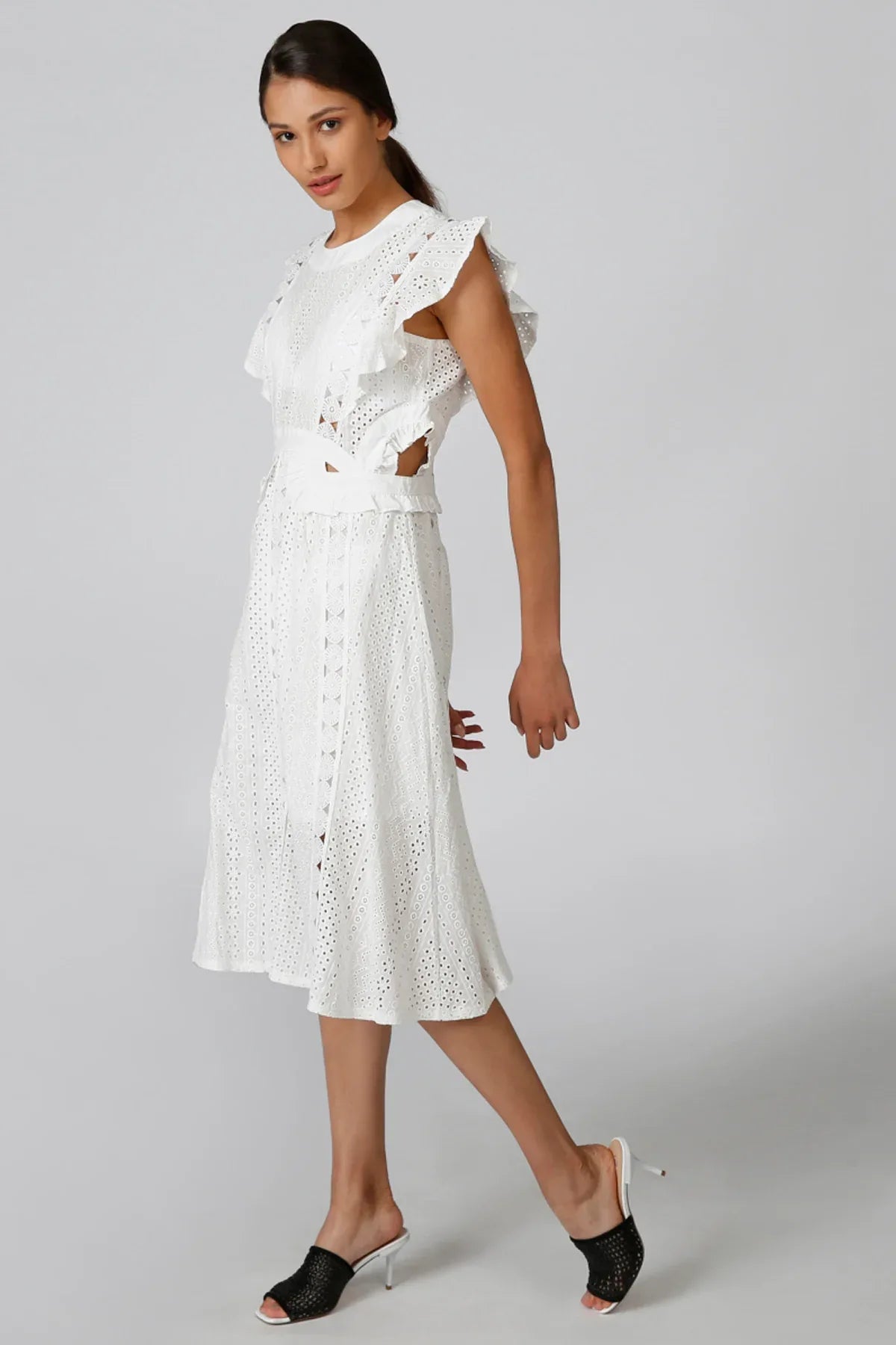 Schiffli Maxi A-line Dress with Ruffle Detail