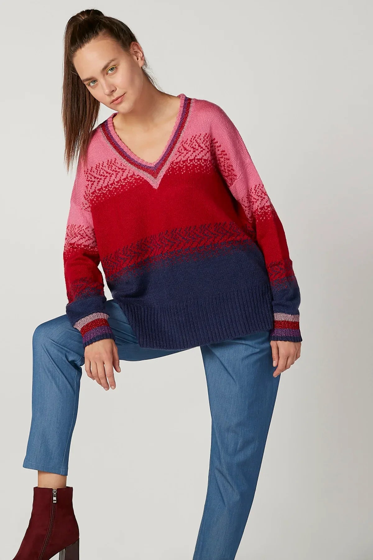 Premium quality Splash Women Textured Sweater with V-neck and Long Sleeves Multicolor color
