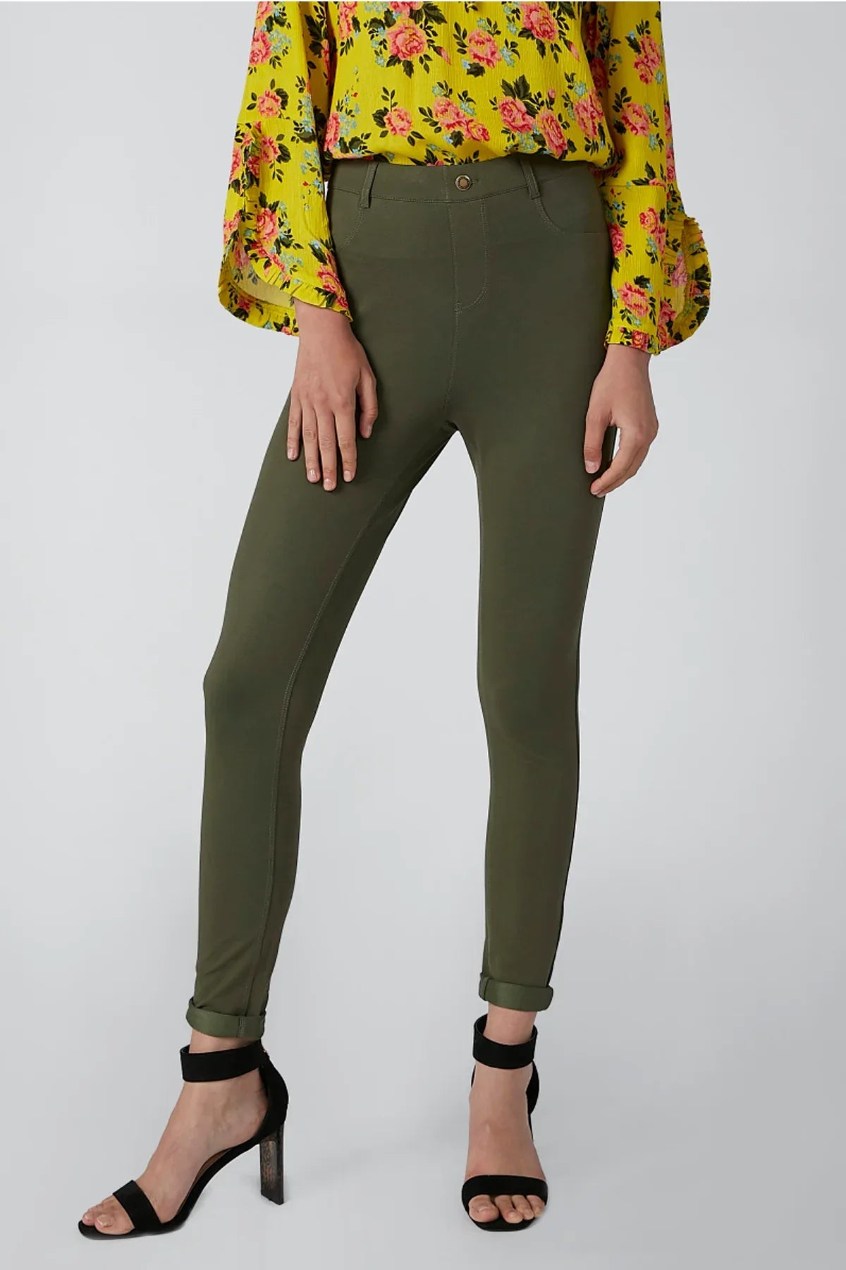 Premium quality Splash Women Plain Slim-Fit Jeggings with Pocket Detail Green color