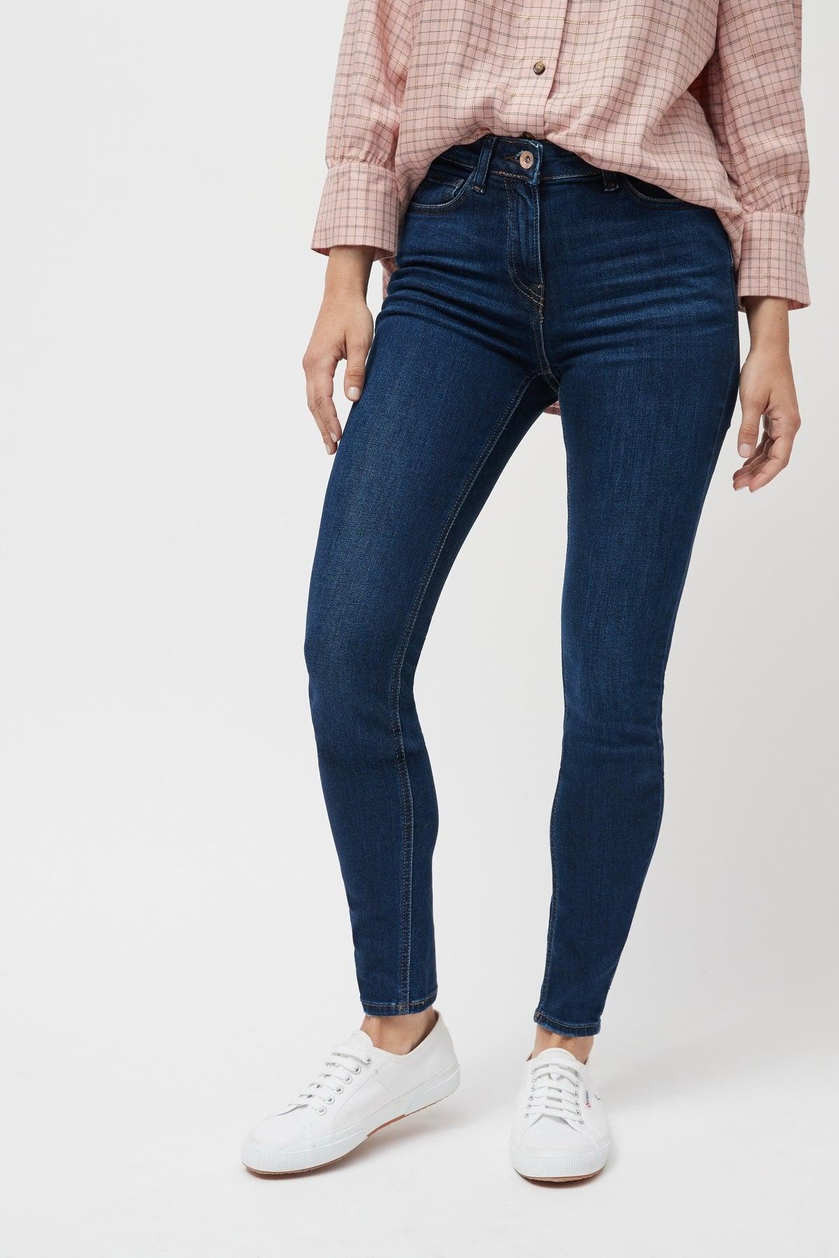 Made from a soft cotton-blend fabric with recycled polyester. In a flattering mid-rise, fitted through the leg to a skinny ankle, and with a zip-fly fastening. These versatile jeans are a denim must-have.