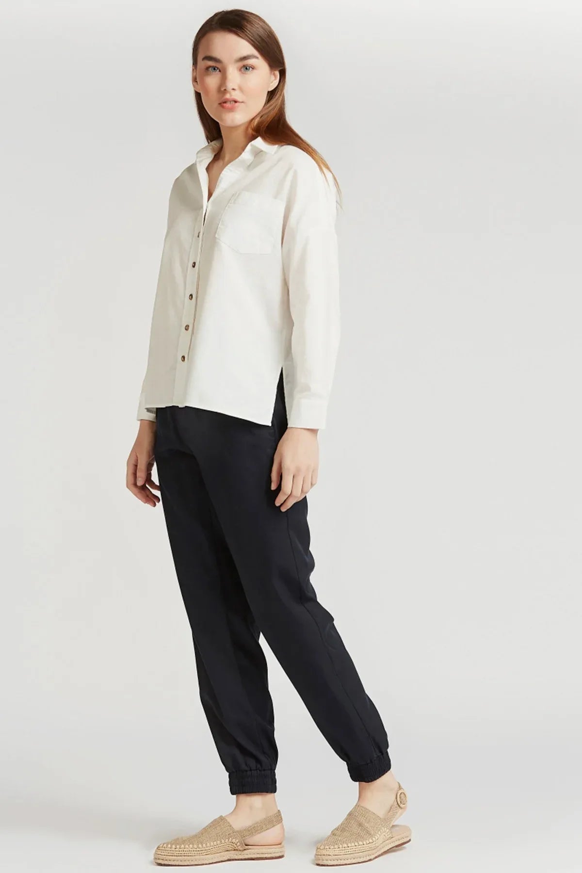 Solid Asymmetric Hem Shirt with Long Sleeves and Chest Pocket