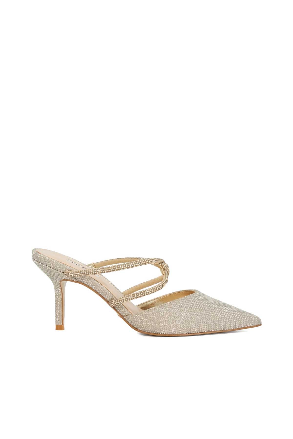 This Graduated Gold Heel Court Has A Contemporary Art Deco Feel. This Classic Silhouette Features A Simple Peep Toe. Keep All The Attention On Your Shoes By Wearing With A Simple Shift Dress.
