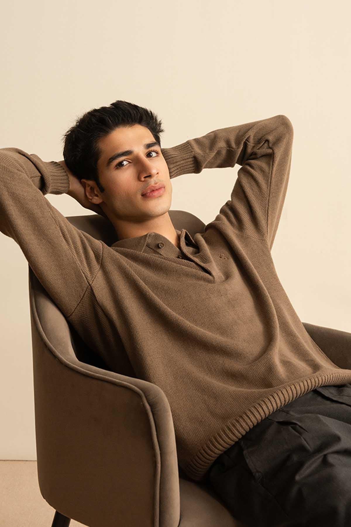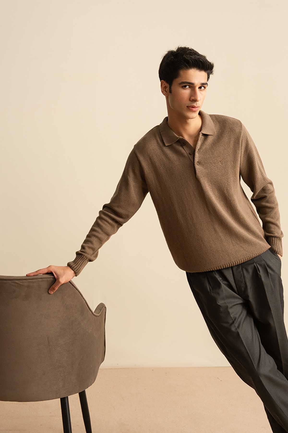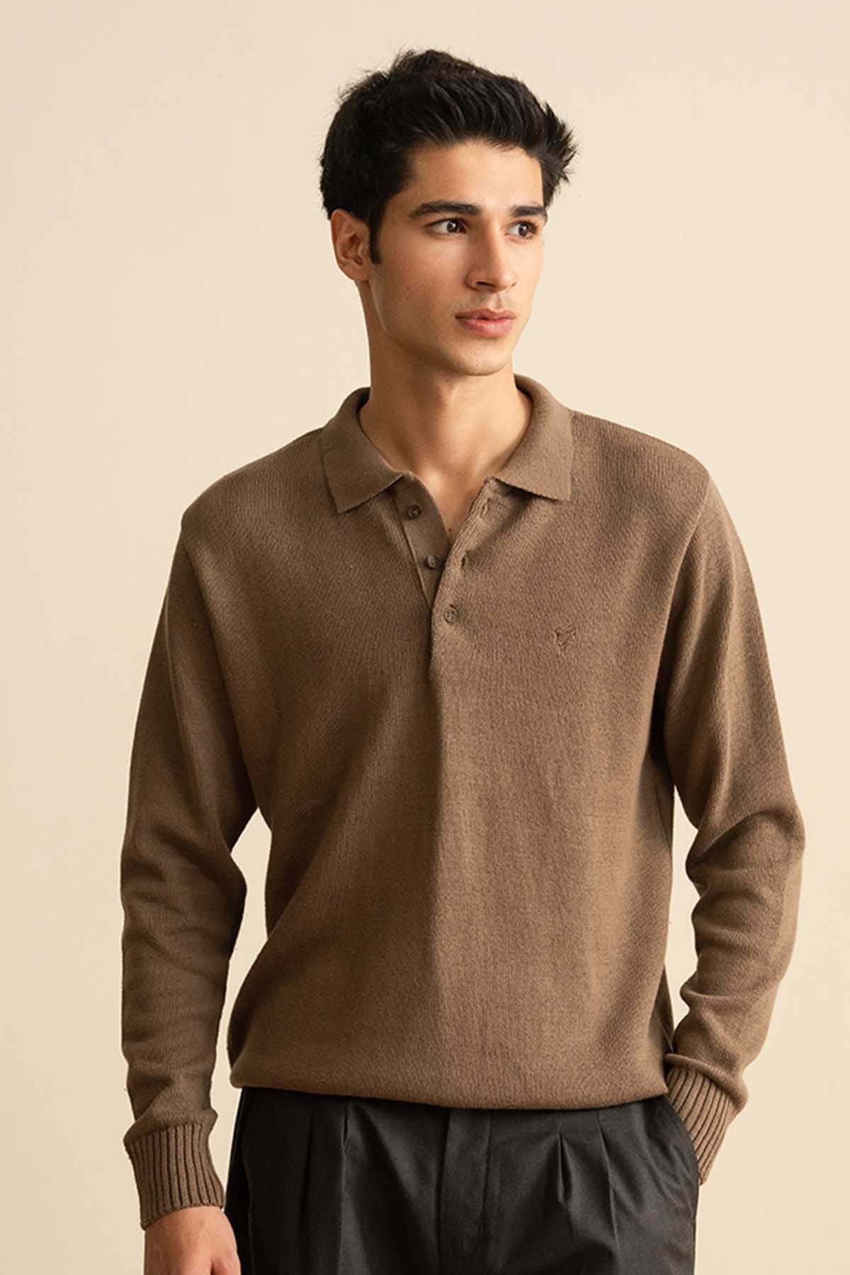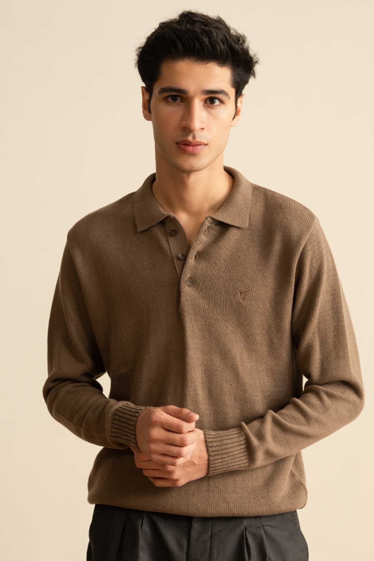 Camel Knitted Full Sleeve POLO