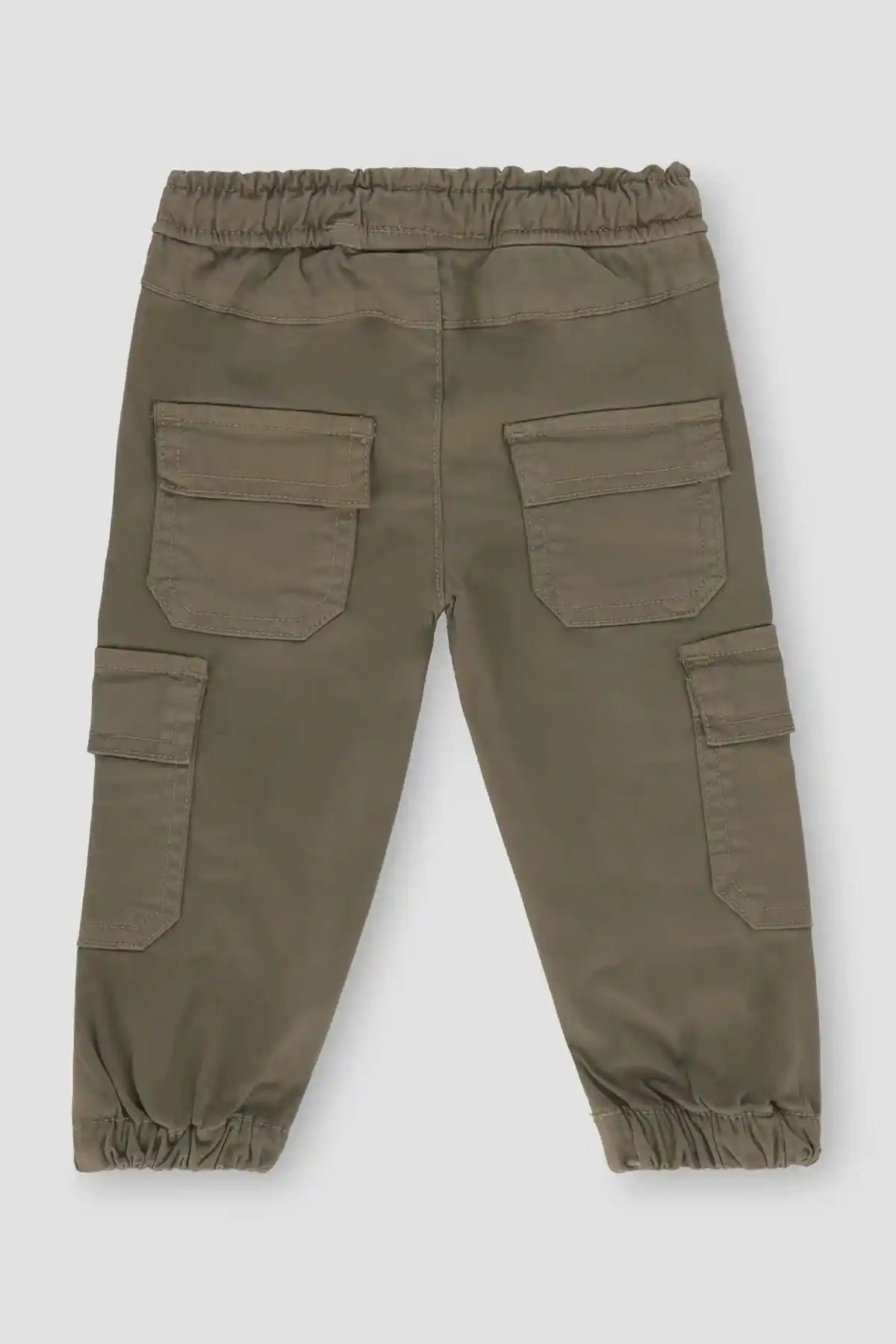 98% Cotton 2% Elastane. Classical Smart Casual Muted Cargo Jogger Pants With Elasticated Waistband Featuring Drawstring. Front Slash Pockets. Rear Yoke And Flap Pockets. Cuff Hem