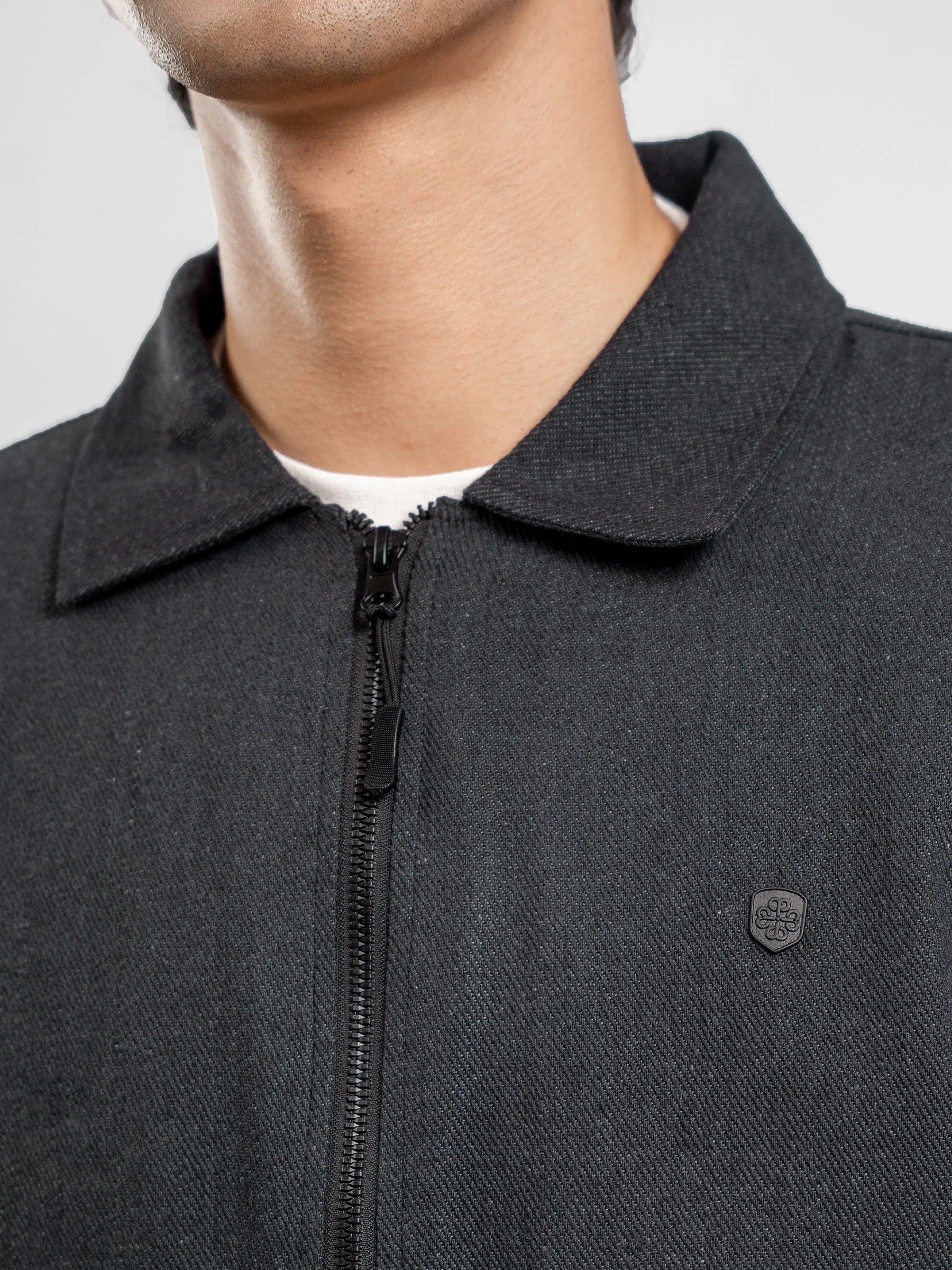 Crafted from durable cotton-blended fabric, this charcoal casual jacket features a smart collar design and spacious cargo pockets for added functionality. Finished with heavy flannel lining to keep you warm on cold days. Ideal for casual wear
