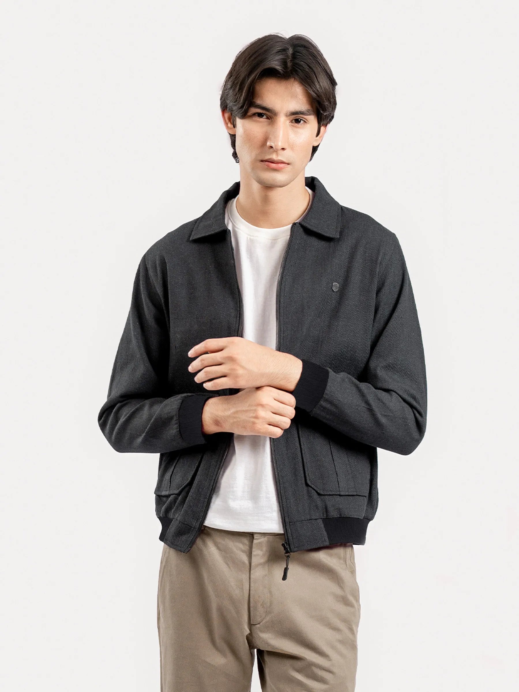 Charcoal Casual Collar Jacket With Cargo Pocket