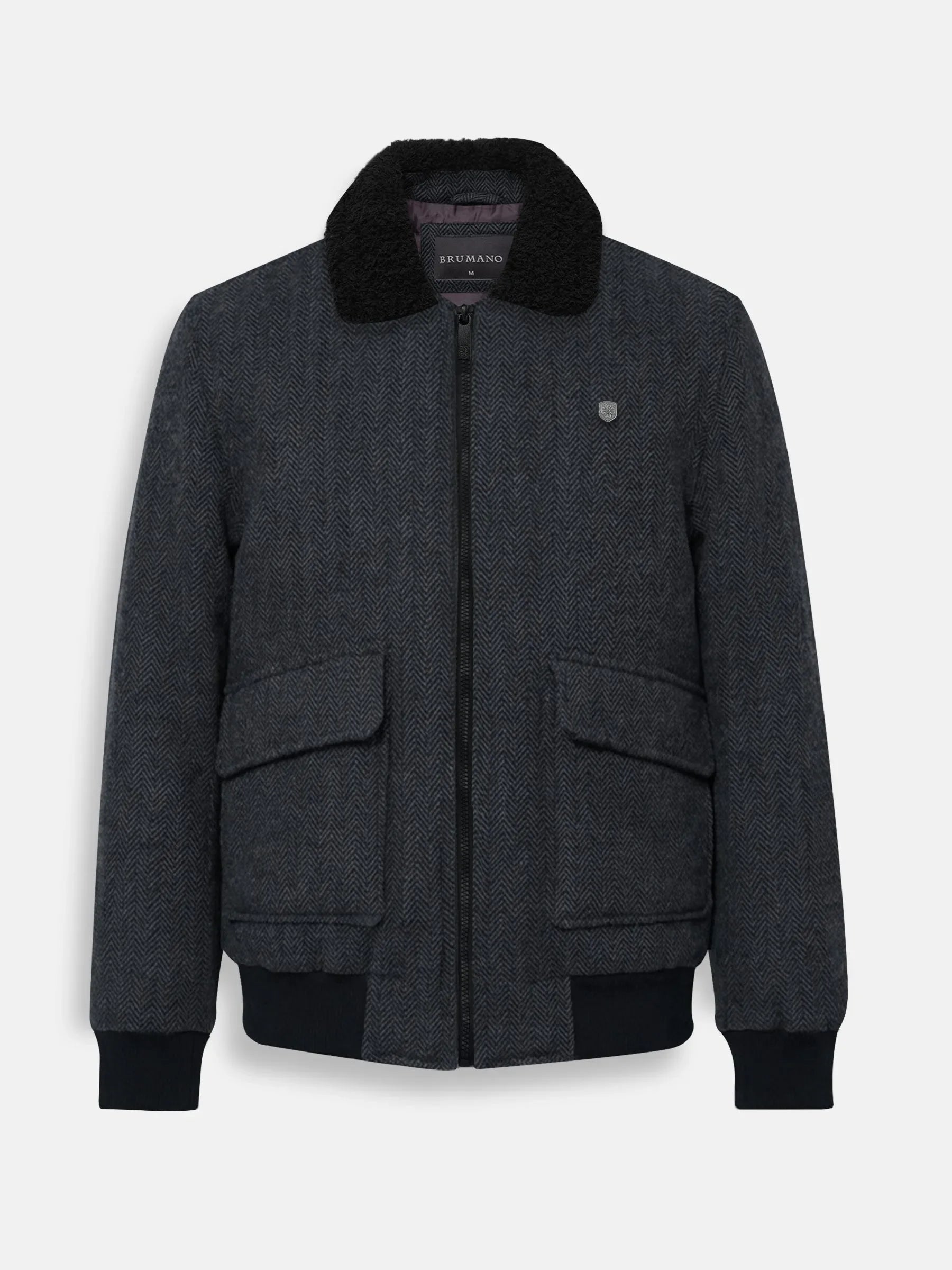 Mens charcoal wool blended aviator jacket with a cozy black sherpa collar built for cold days with a classic flight-inspired look. Warm, comfortable, and easy to style with jeans or chinos for an effortless everyday fit. This heavy jacket is idel for minum temperatures