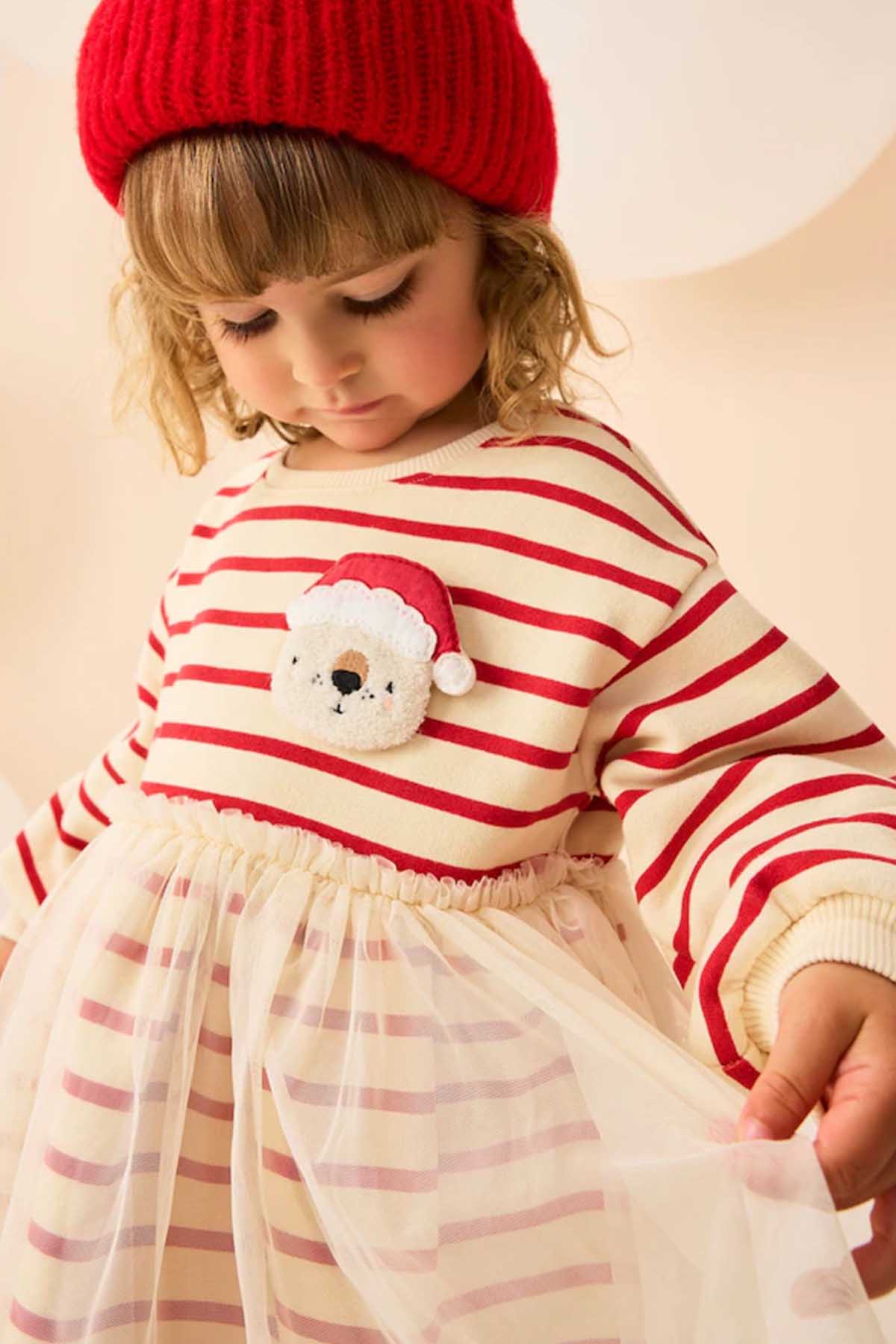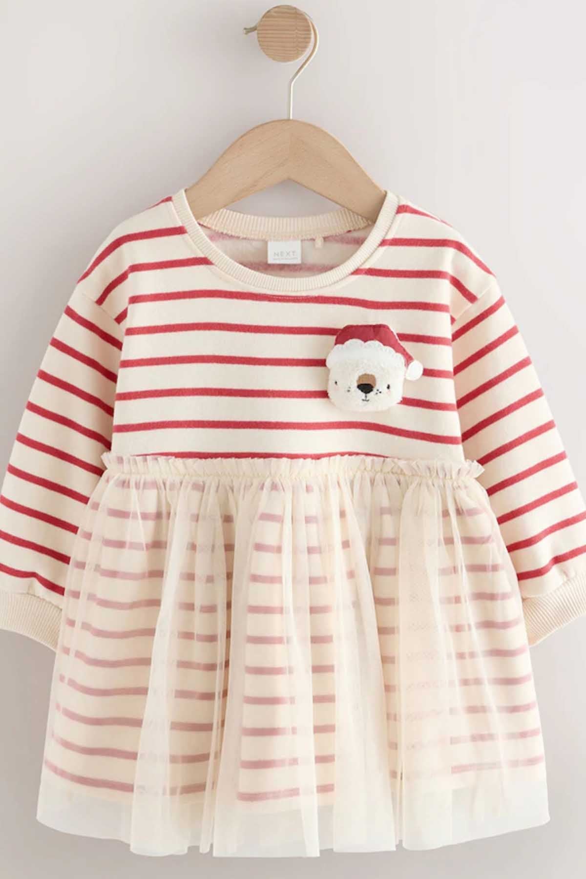 Christmas Bear Mesh Sweat Party Dress (3mths-7yrs)