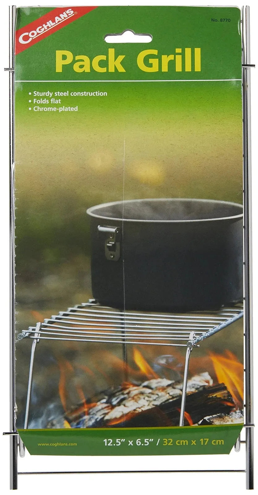 Looking for a lightweight and compact grill to take with you on your next camping or backpacking trip? Look no further than Coghlan's Pack Grill! This sturdy and durable grill is made of chrome-plated steel and can support lightweight backcountry cookware. With a 12.5 inch x 6.5 inch grill surface, it's the perfect size for cooking up a delicious meal over an open fire. And when you're done, it folds flat for easy packing and transport. Just remember, it's not intended for direct food contact - be sure to use cookware for your culinary creations!