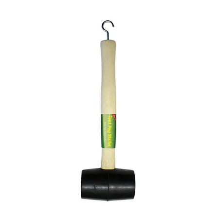 Our mallet features a rubber head and a wooden handle which includes a hook on the end to make quick work of pulling pegs.
