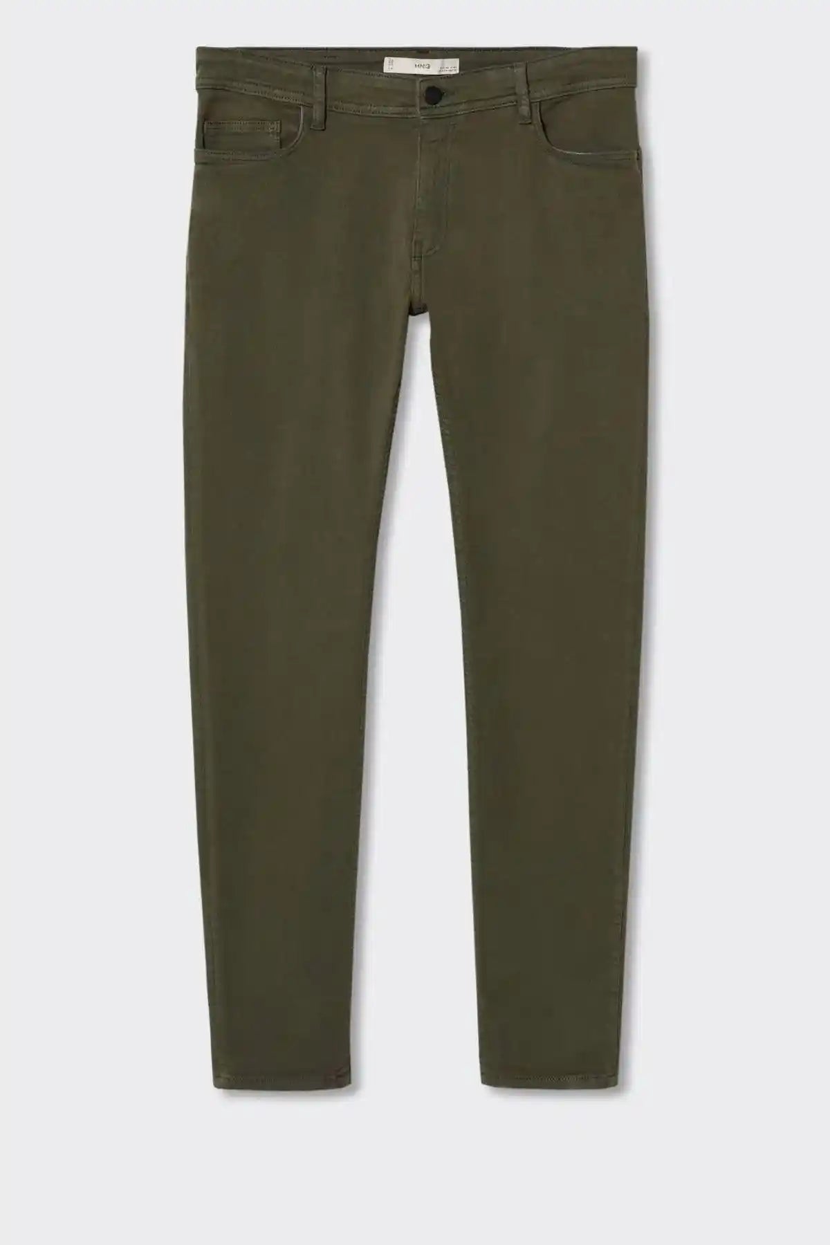 Sustainable cotton blend fabric. Cropped design. Medium waist. Heavy structure. Skinny fit. Loops. Two side pockets. Coin pocket. Two patch pockets on the back. Zip and one button fastening. The model is 183cm and is wearing a size 42.