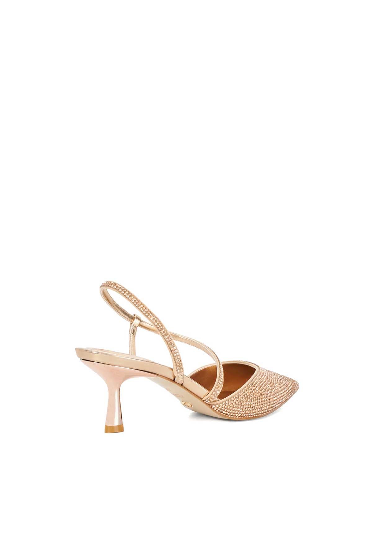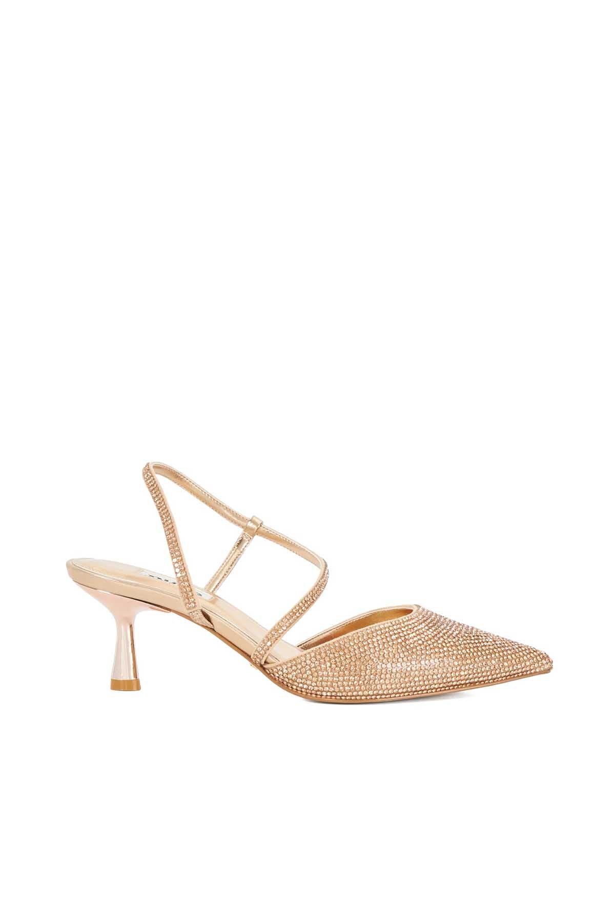 It'S All In The Detail With Our Gold Kitten Heel Slingbacks. Set On A Flattering And Comfortable Mid Height Heel The Upper Of This Embellished Silhouette Boasts Hot Fix Embellishment. Complete With An Elegant Asymmetric Strap That Crosses Over The Front Of The Foot This Elegant Style Will Add A Subtle Shimmer To Your Occasion Looks.