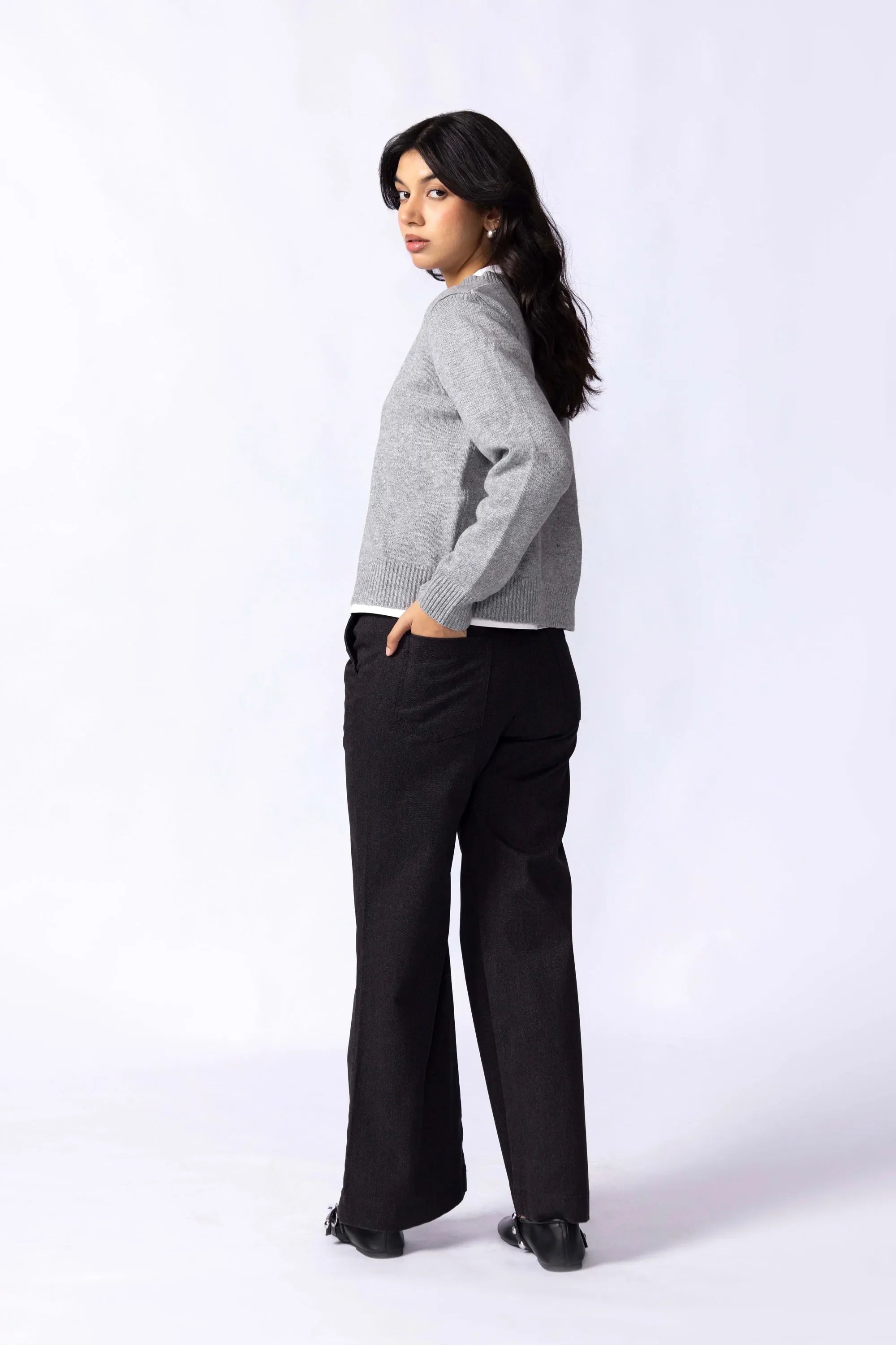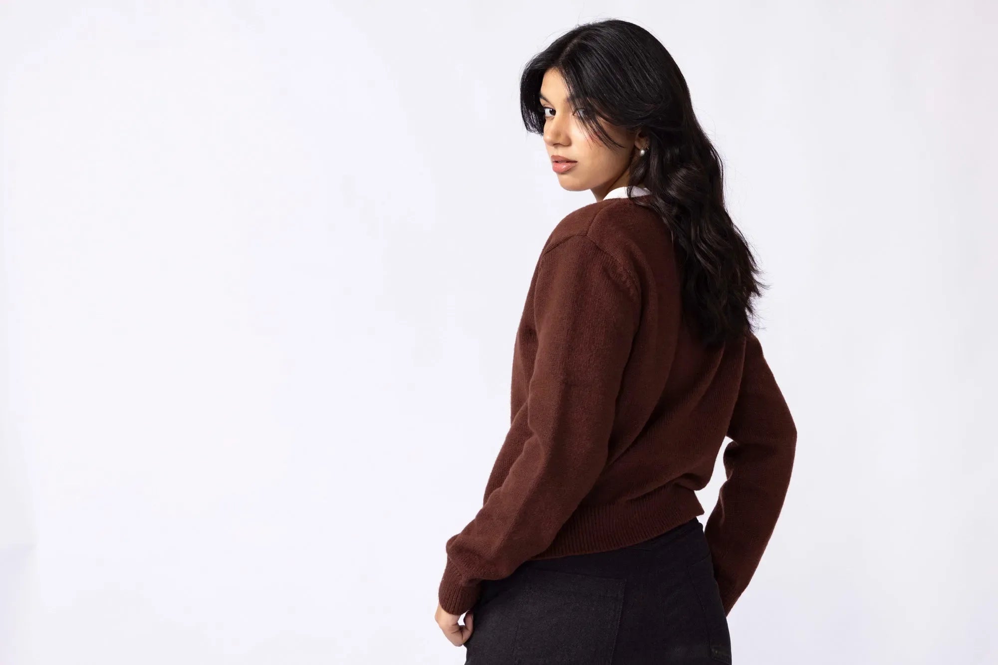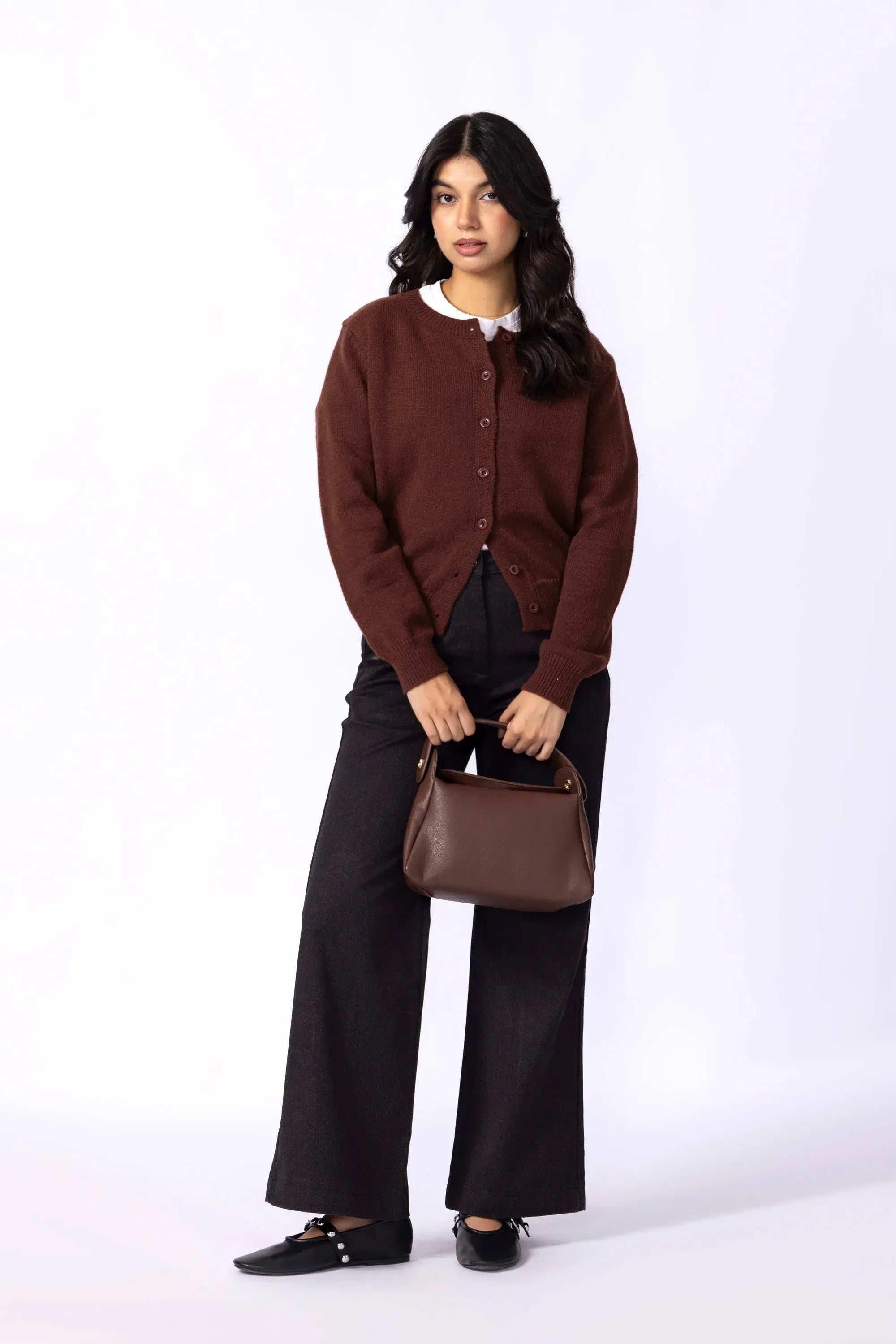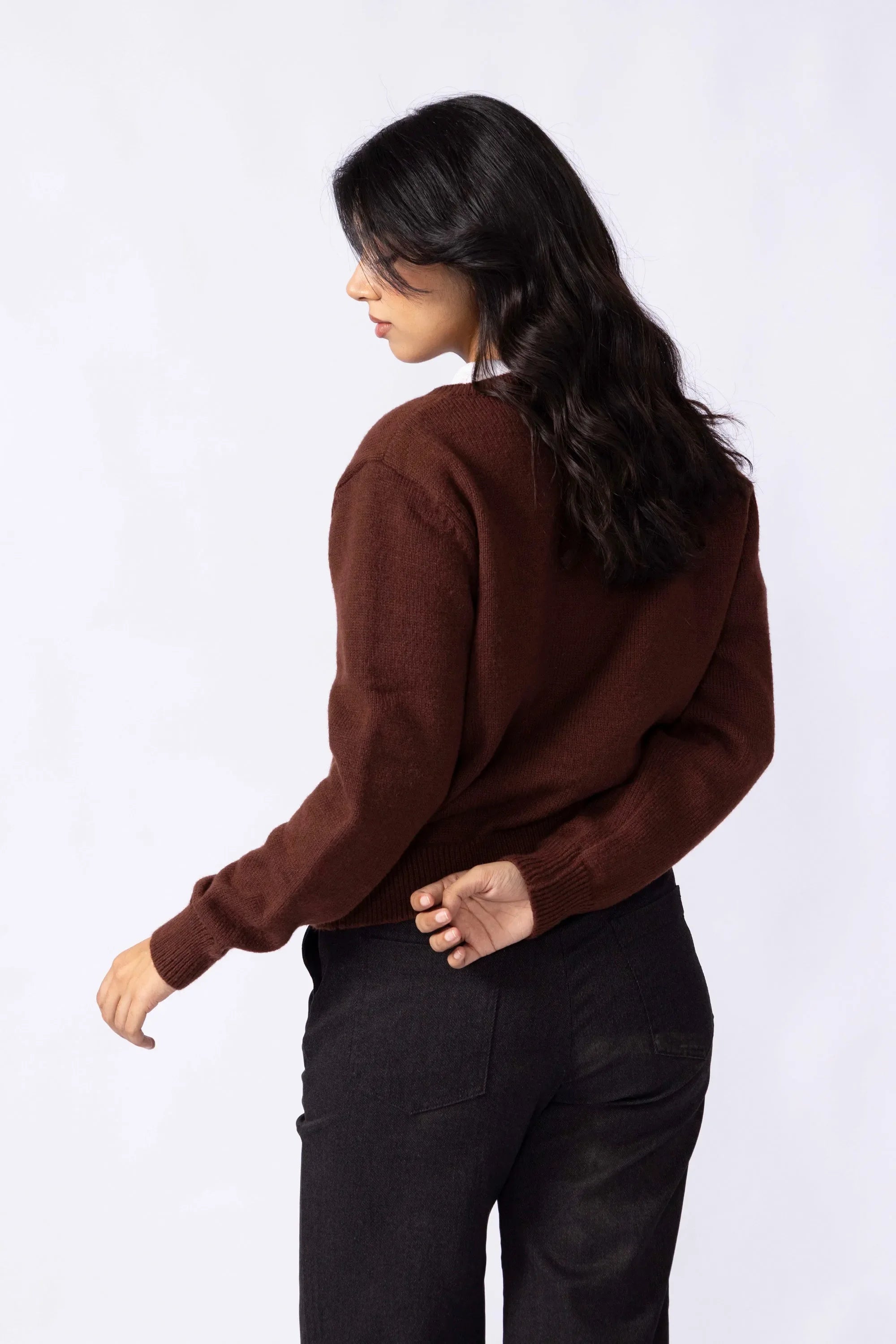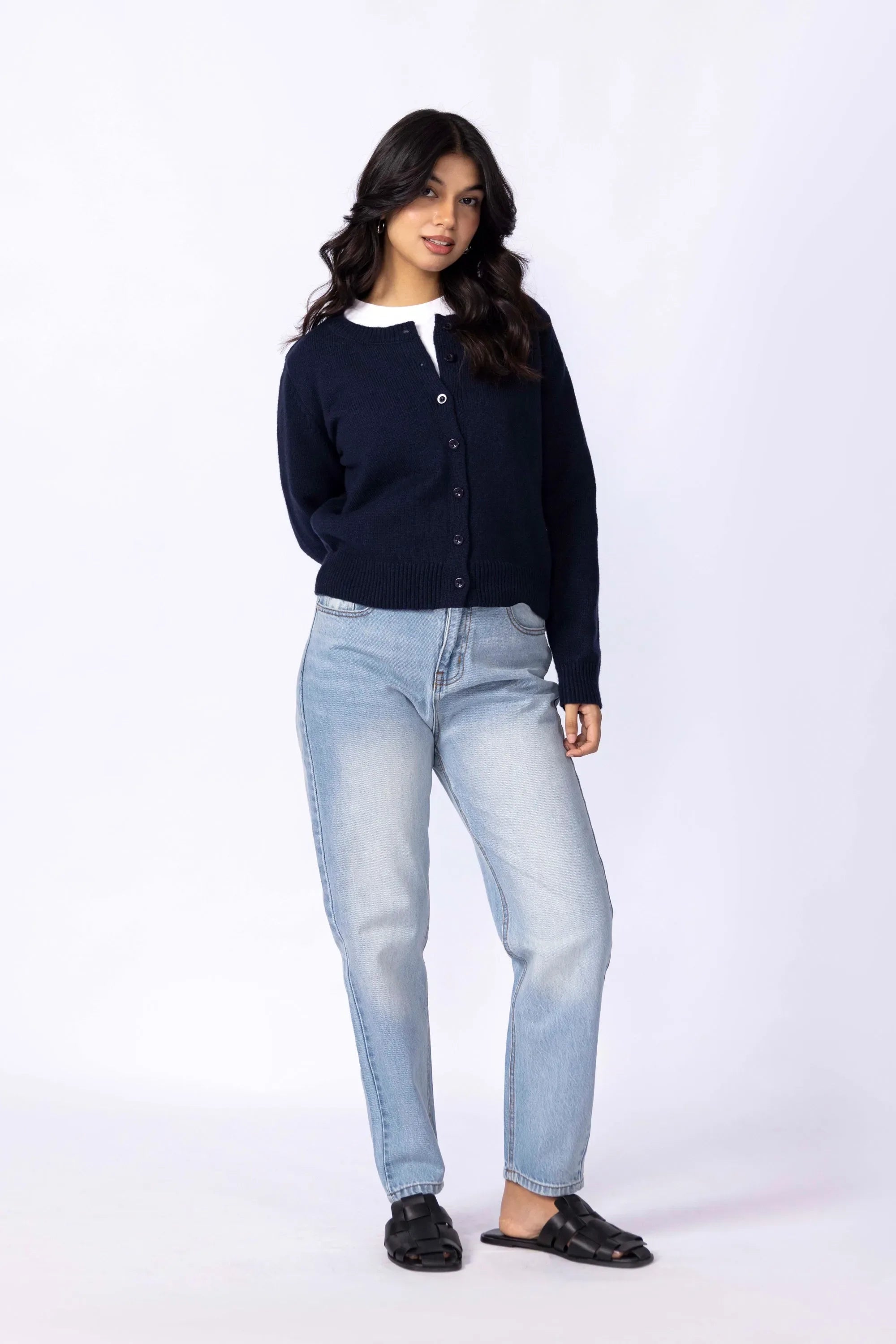 Knitted from a soft, stretch-blend yarn for comfort that moves with you. The cropped silhouette sits neatly at the waist, creating a clean, modern line that pairs effortlessly with high rise trousers or skirts. Designed with a button-down front for styling versatility and long sleeves finished with ribbed cuffs for subtle structured. A minimal piece that transitions easily between casual and refined looks
