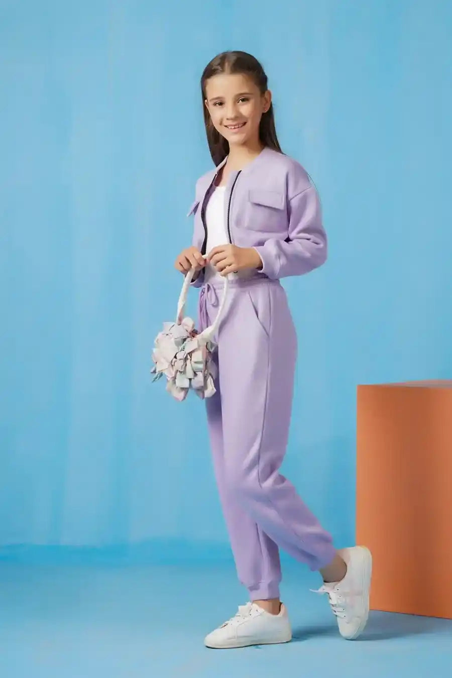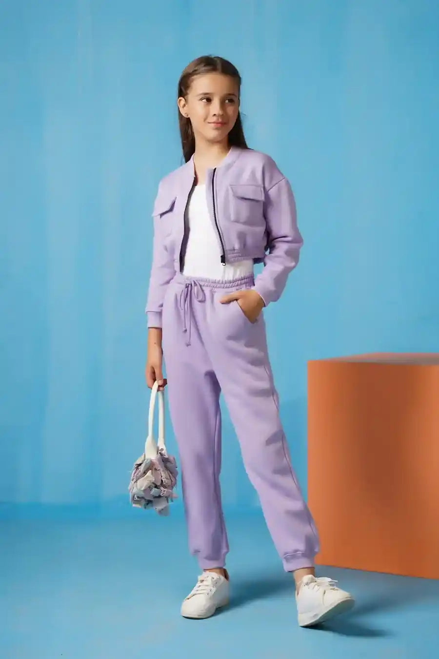 Crop Jacket With Jogger Pant - Lilac