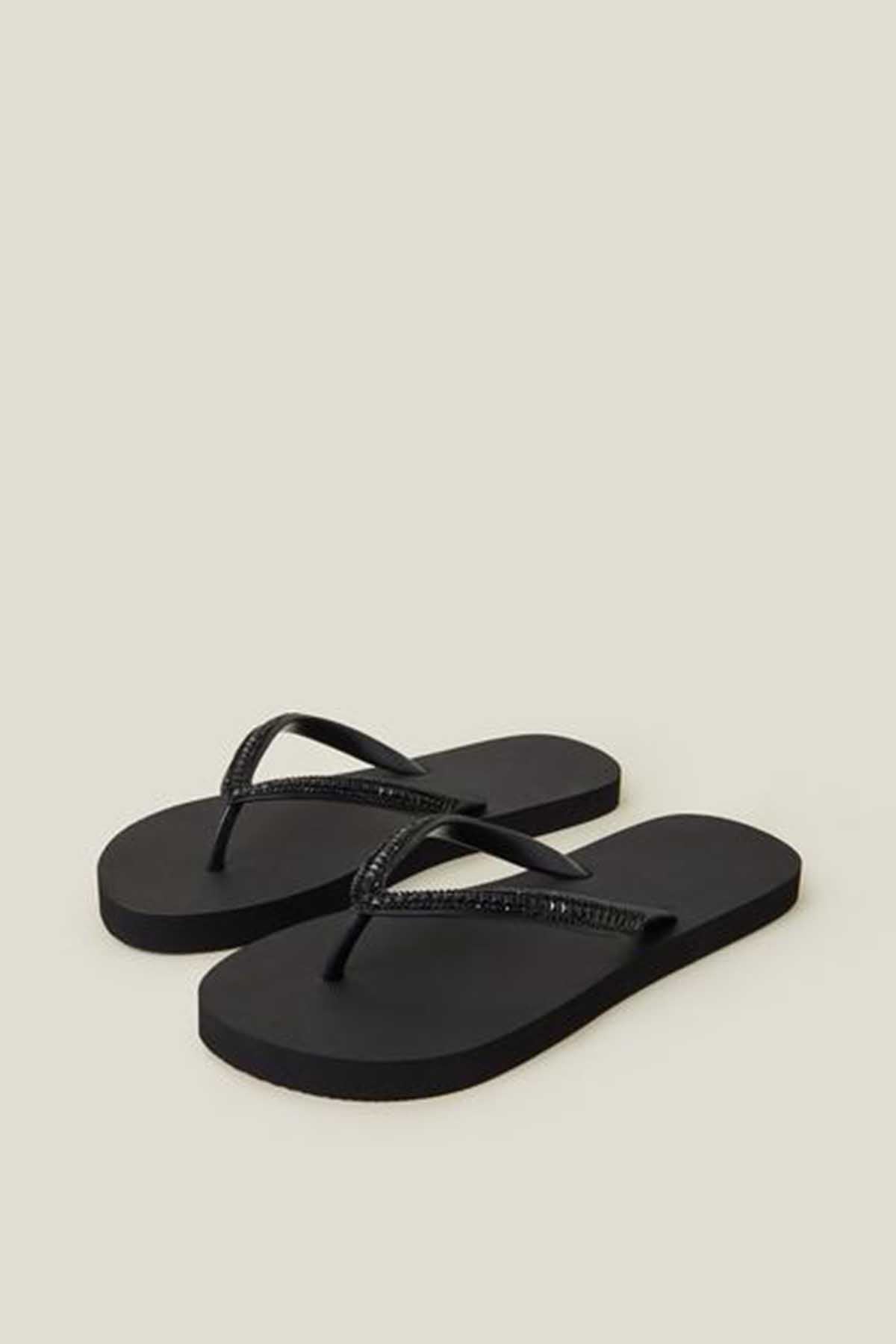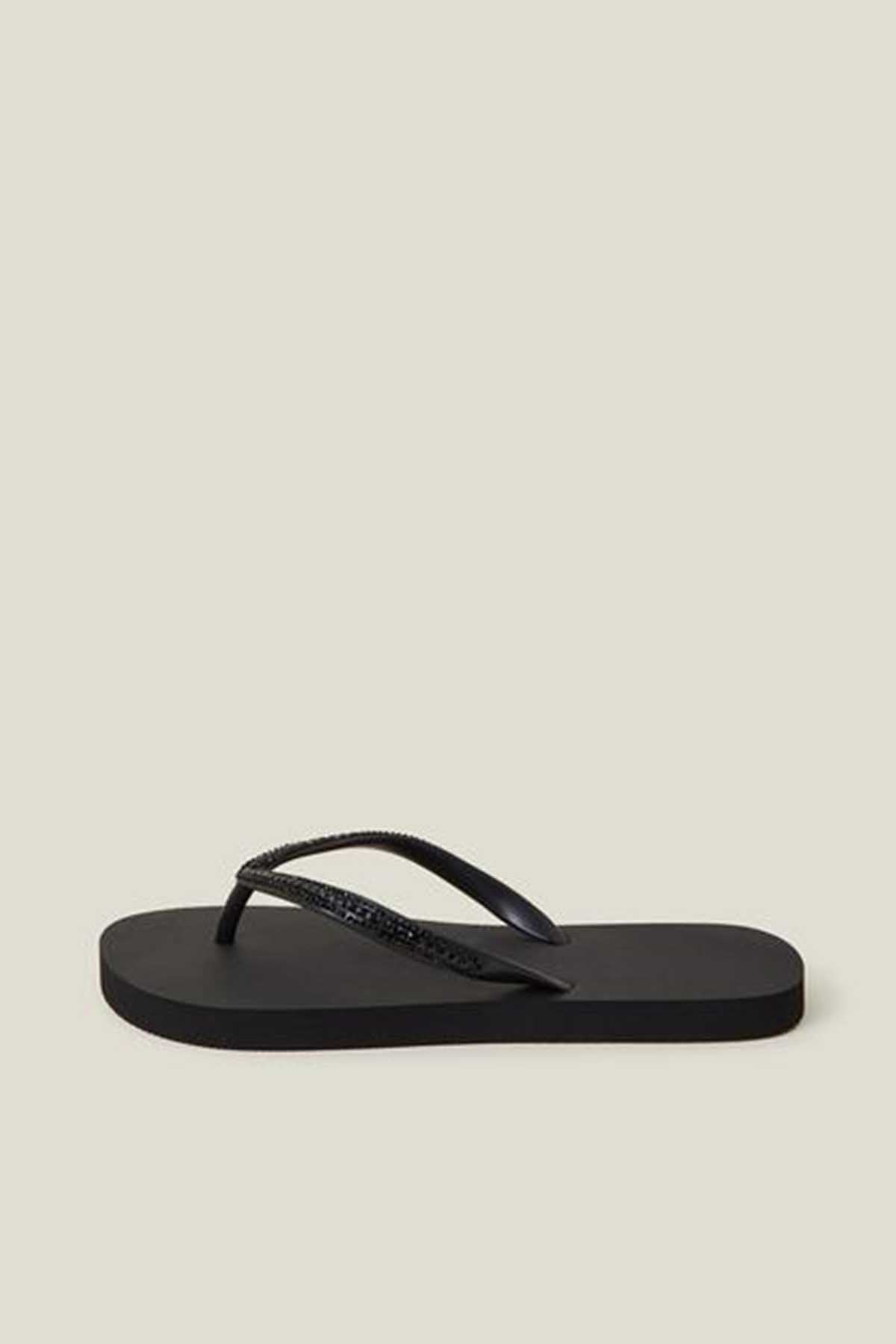 Crystal Embellished Flip Flops Black