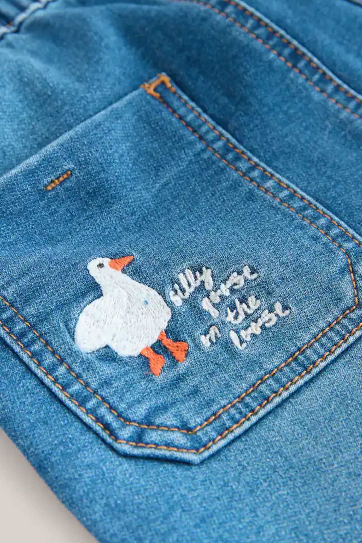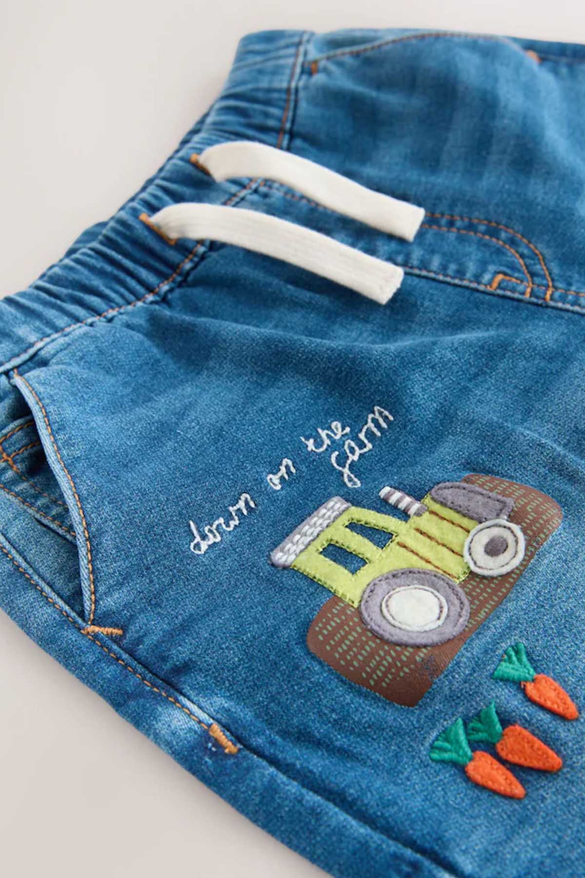 Dark Blue Character Farm Loose Pull On Jeans