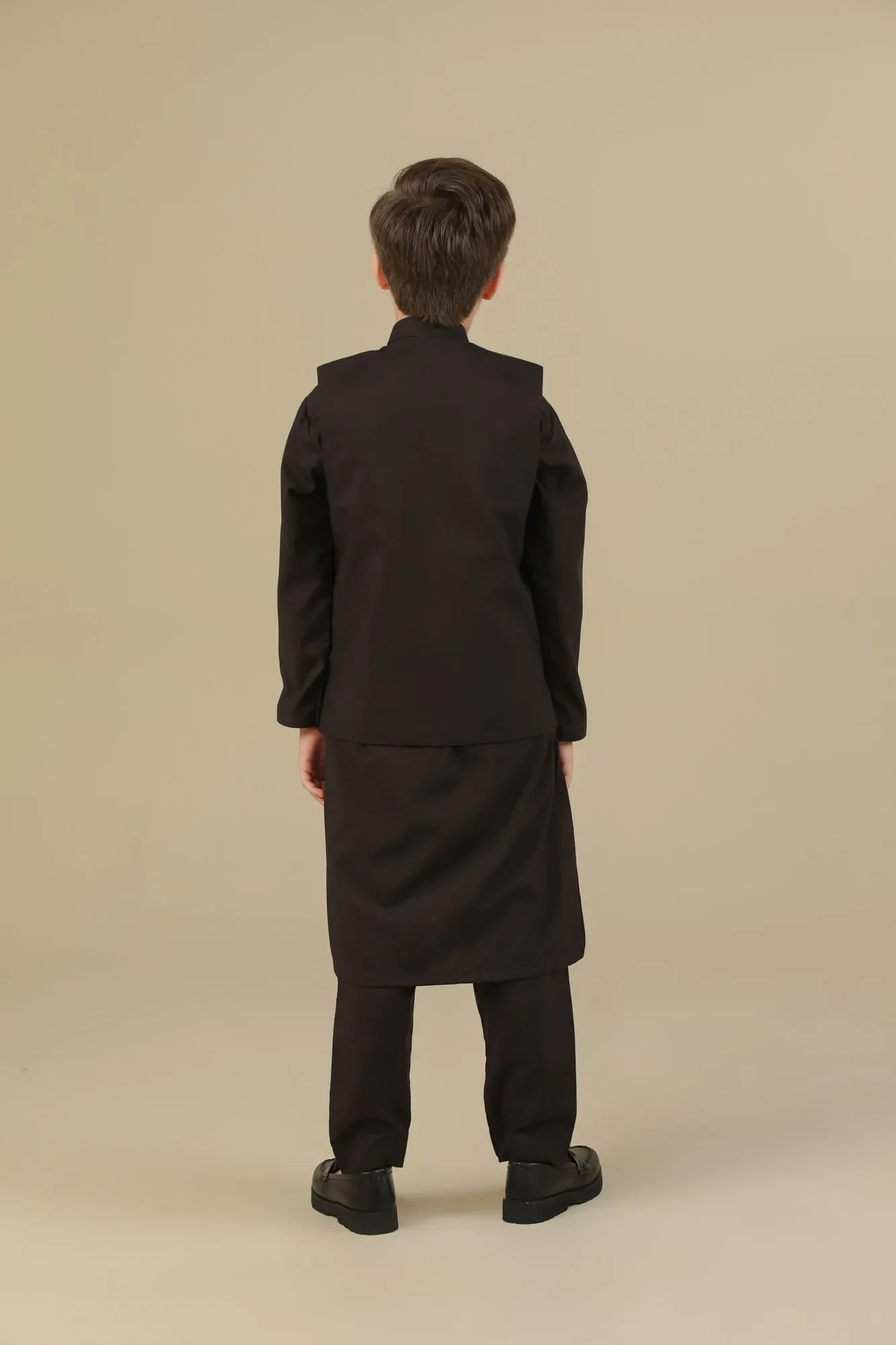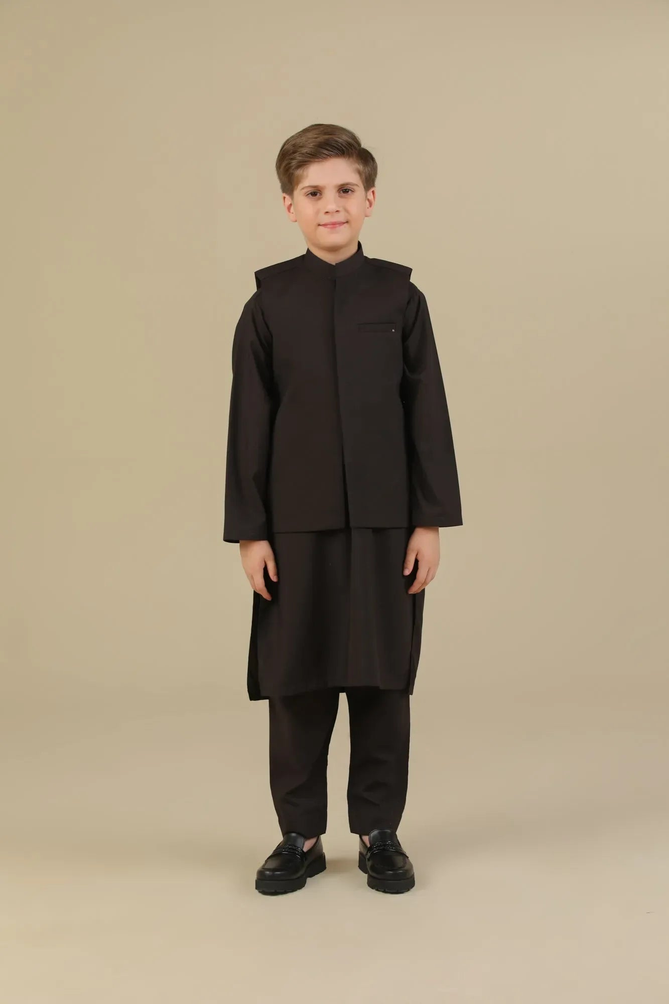 Dark Brown Kurta Trouser with Blended Waistcoat - Kids
