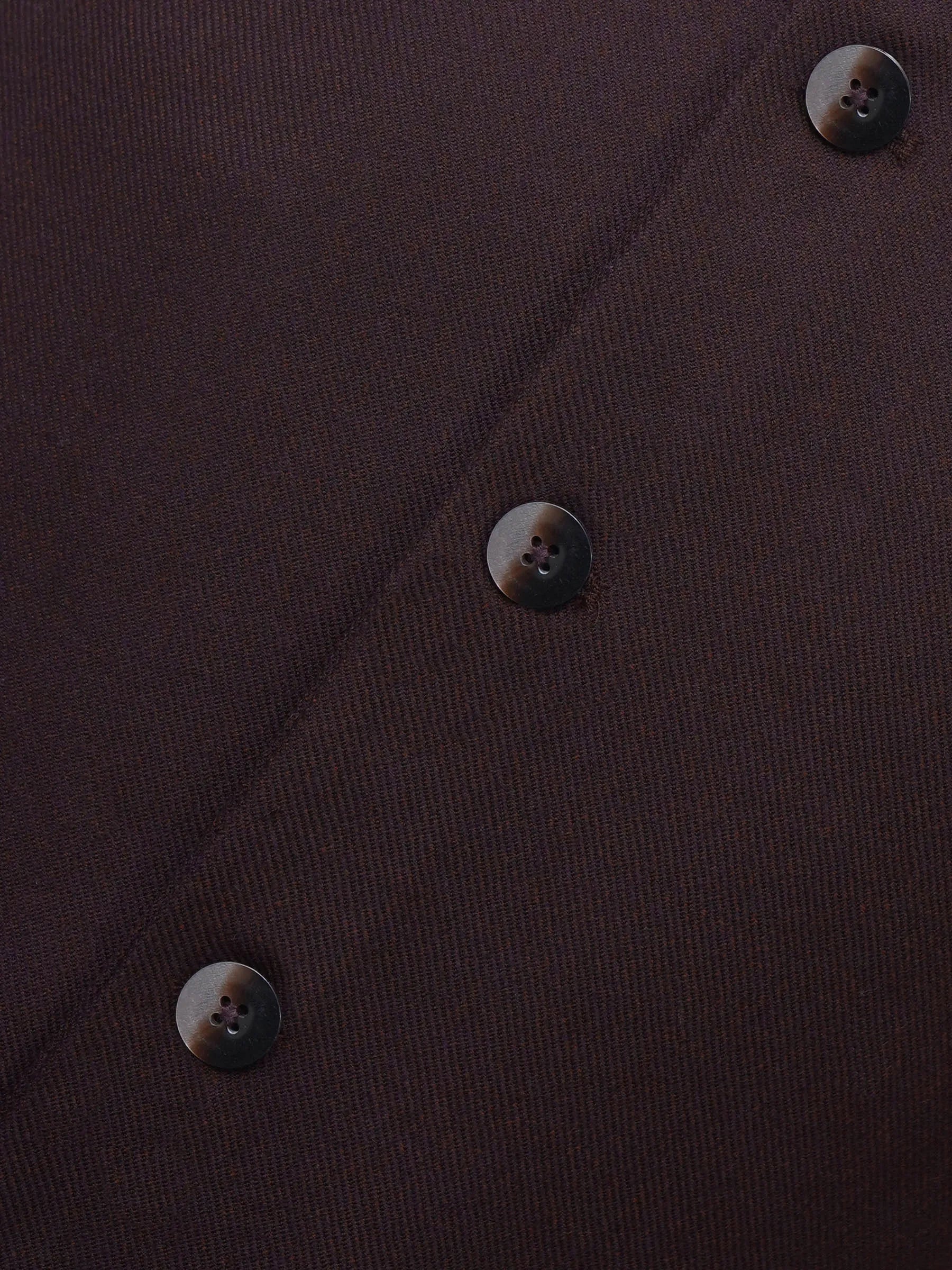 This waistcoat serves as a versatile layer for winter suiting. The deep burgundy tone complements navy or charcoal trousers. Ensure the bottom button remains undone for traditional etiquette.