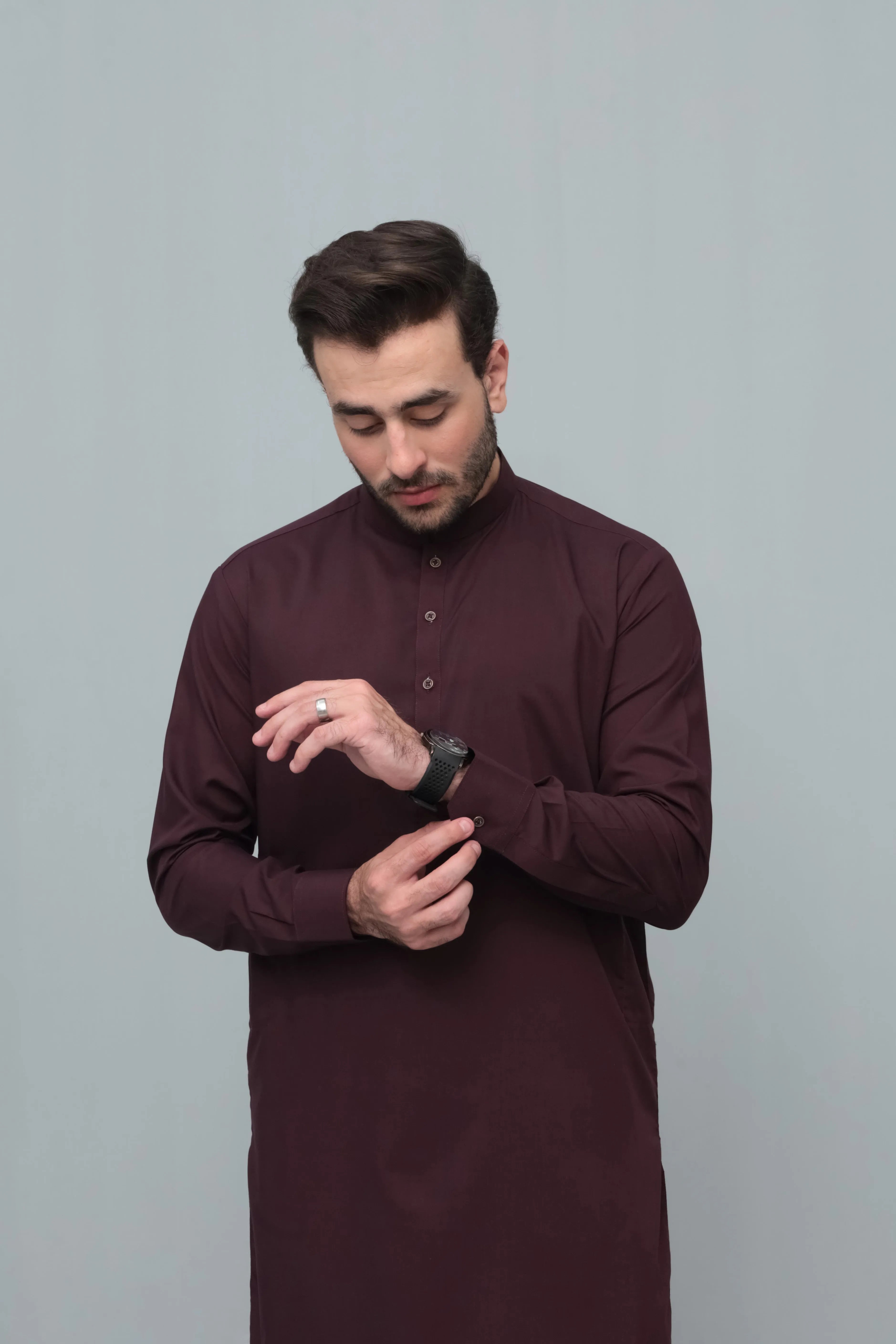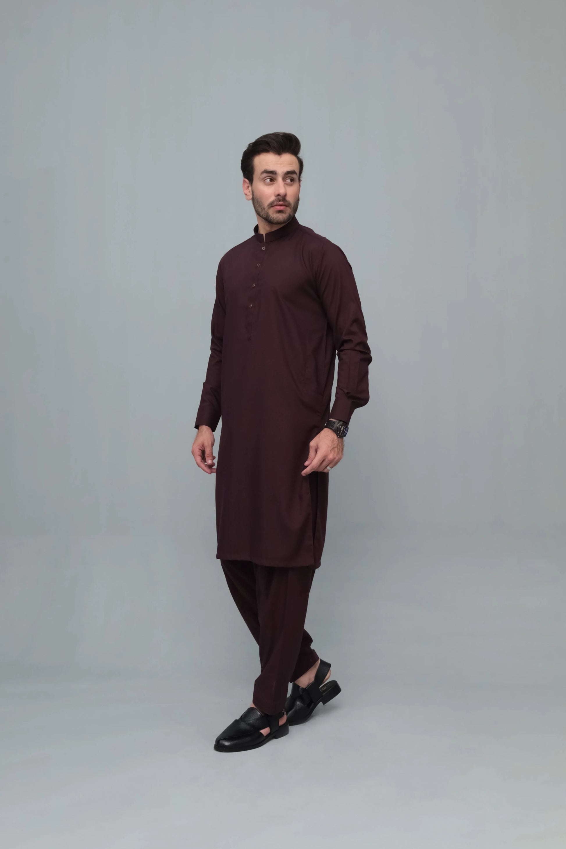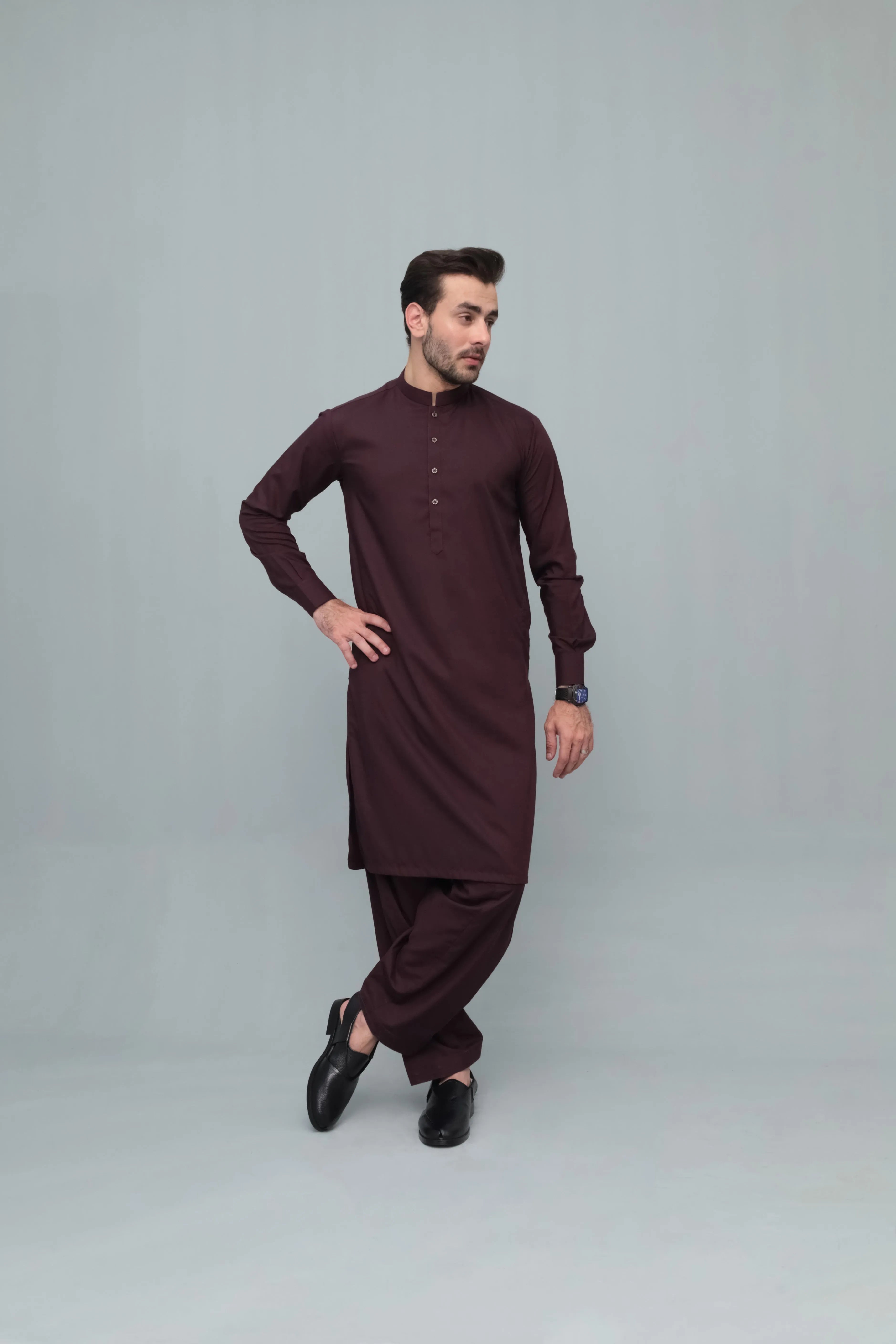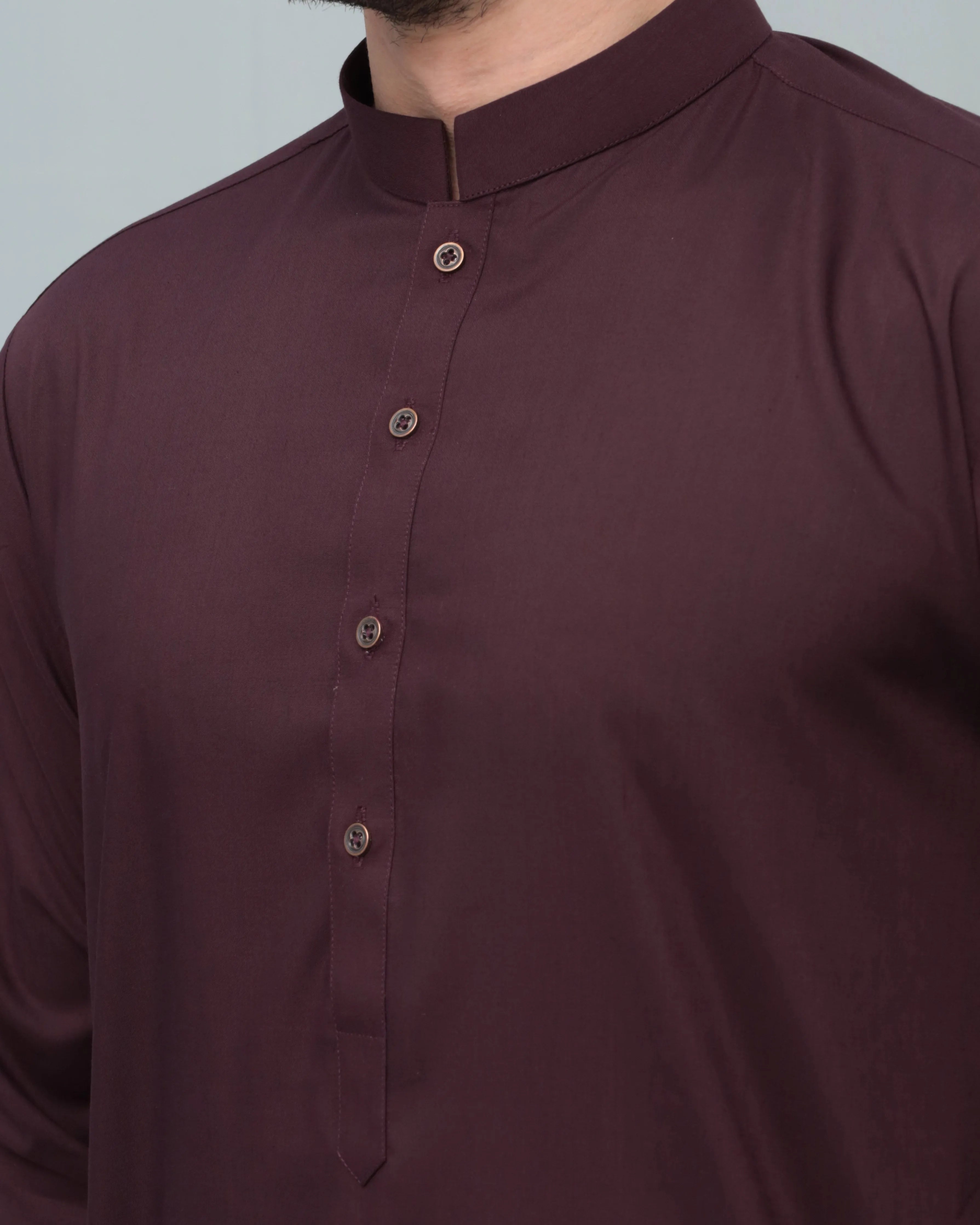 Dark Marron Blended Kameez Shalwar- Men