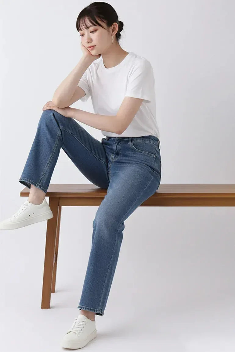 A wardrobe essential, these Straight Fit Denim Jeans for Women in Mid Blue offer timeless style and everyday comfort. Crafted from high-quality stretch denim, they feature a flattering straight-leg silhouette that provides a relaxed yet structured fit. Designed with classic five-pocket detailing and a mid-rise waist, these jeans pair perfectly with anything from a crisp white tee to a tailored blouse. Ideal for both casual outings and smart-casual looks, these jeans deliver versatility and effortless sophistication.