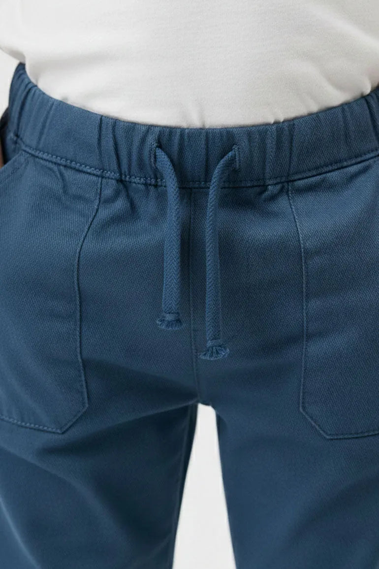 Comfort fit pants with an elastic waistband and adjustable drawstring for easy wear. Front patch pockets add a practical look for everyday adventures. Easy to style with tees and shirts for school outings and playtime