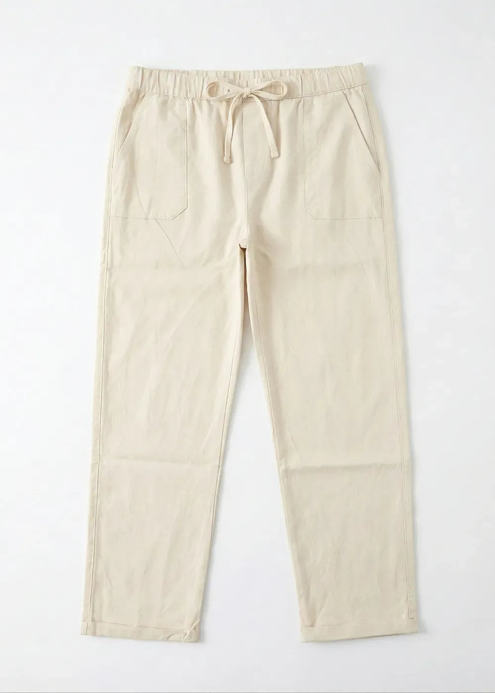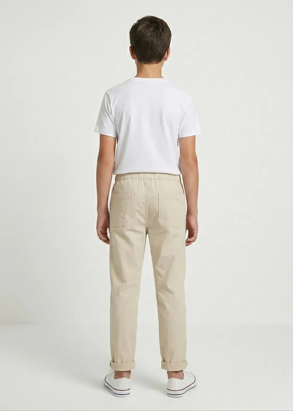 Designed for all-day comfort, these beige drawstring trousers feature a relaxed fit with a soft, breathable fabric. Perfect for casual outings or everyday wear, they offer effortless style with easy movement. A versatile wardrobe essential for growing boys.