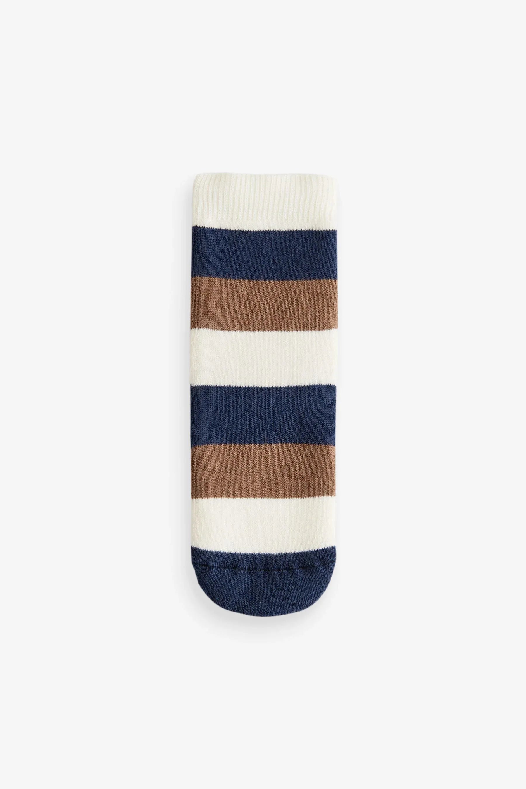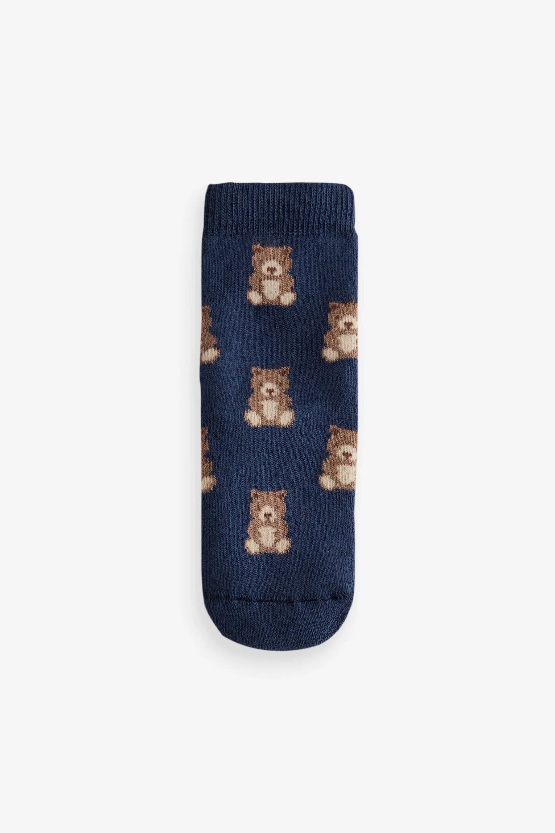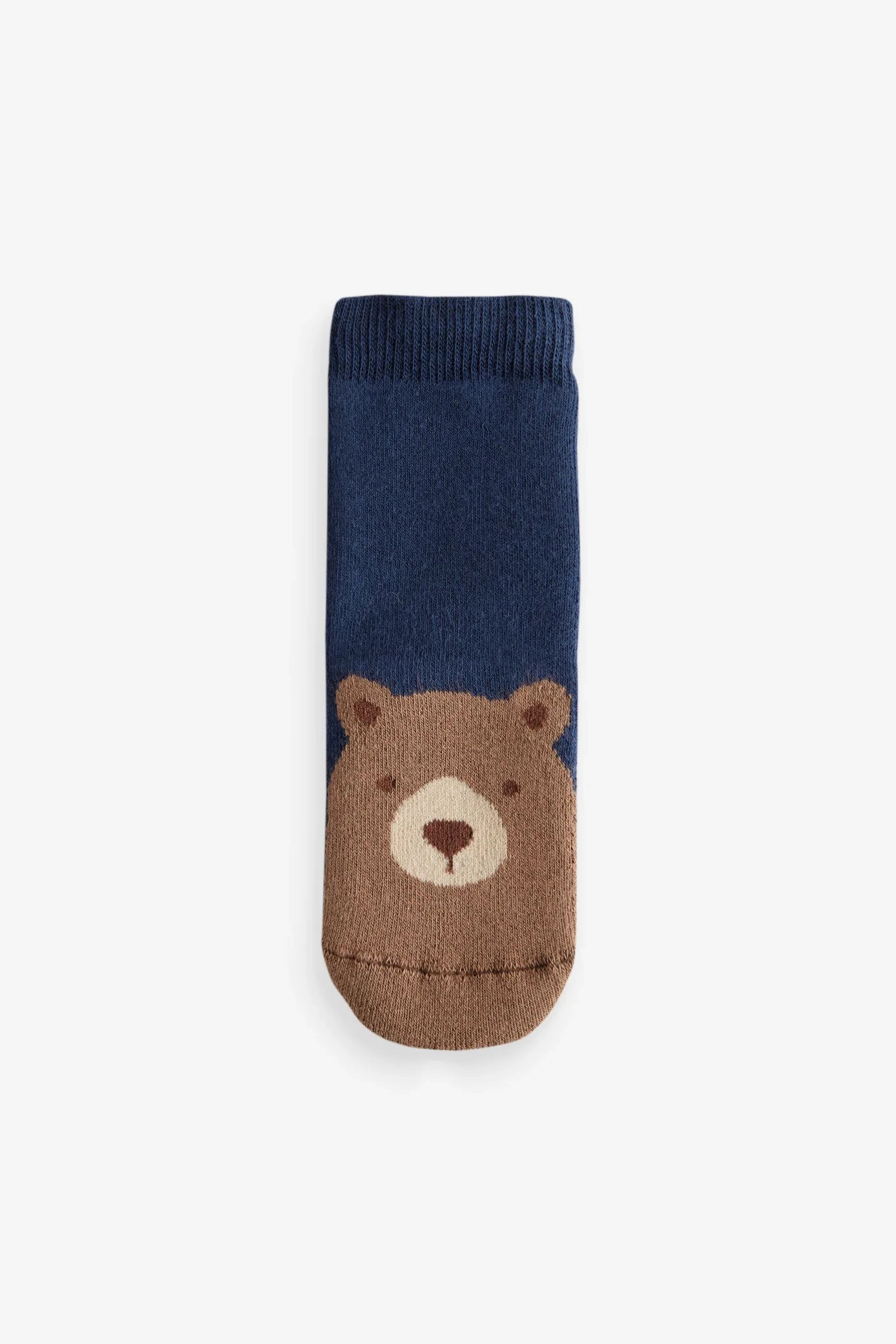 Navy/Ecru Bear Cosy Terry Cotton Rich Socks 5 Pack