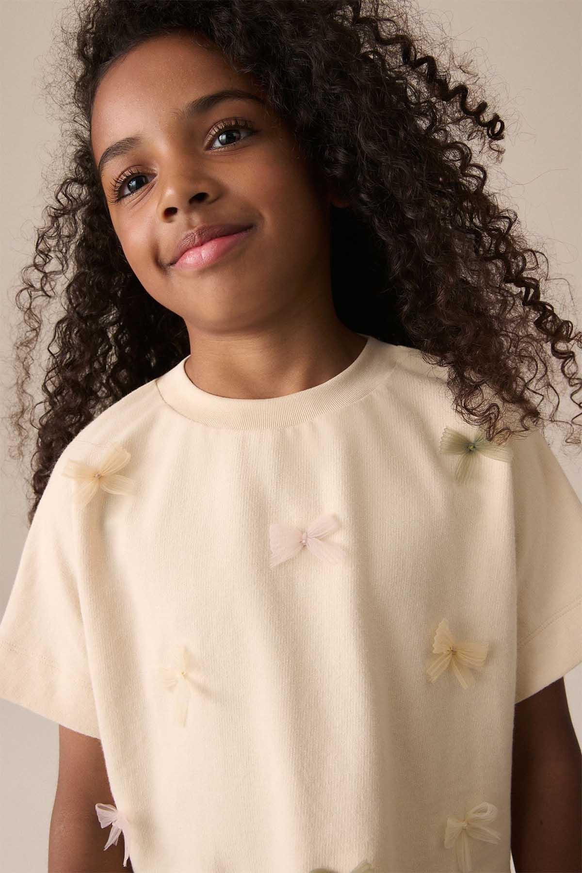 Ecru Boxy Bows T-Shirt (3-16yrs)