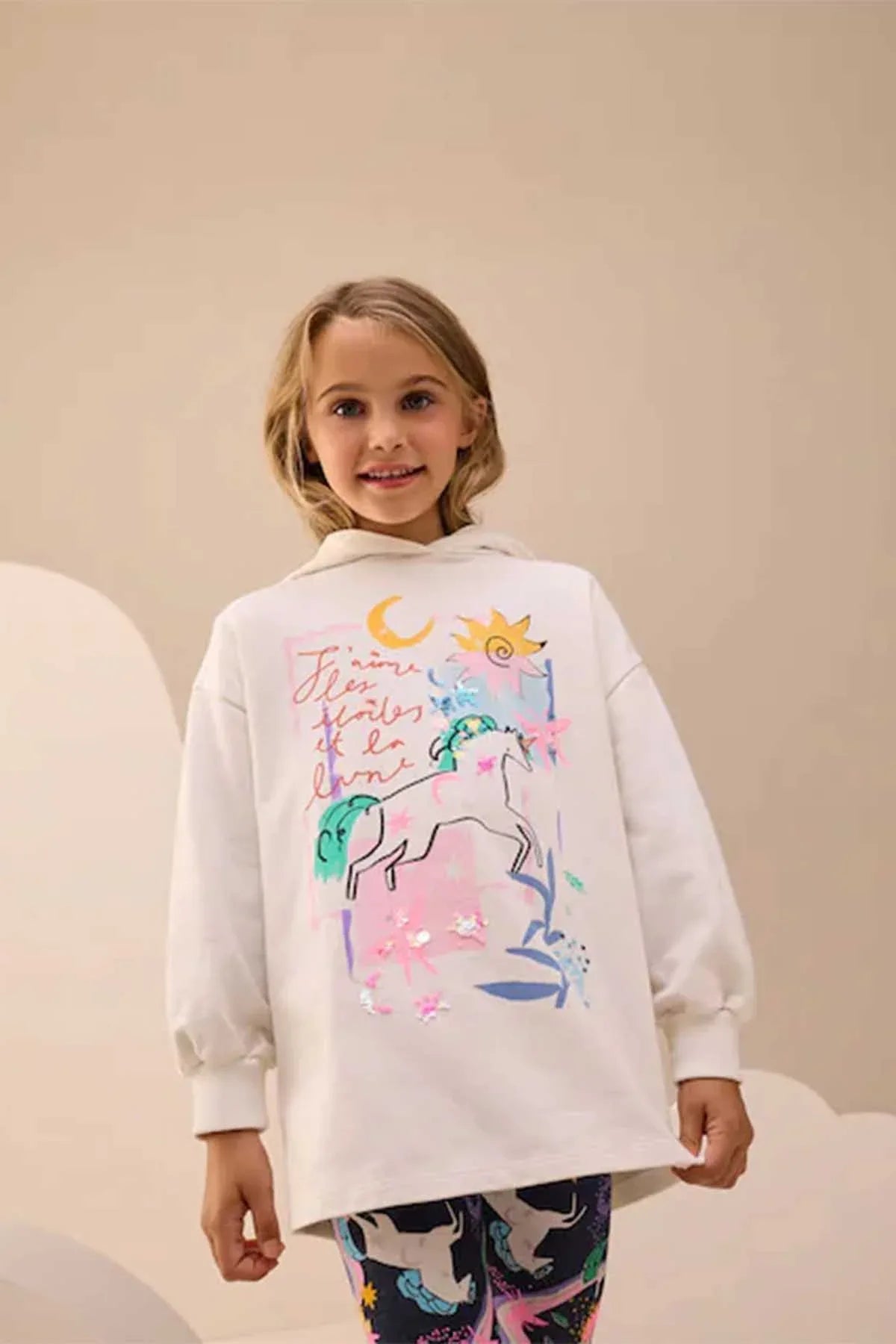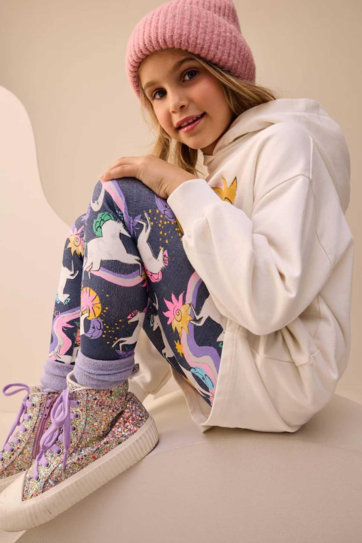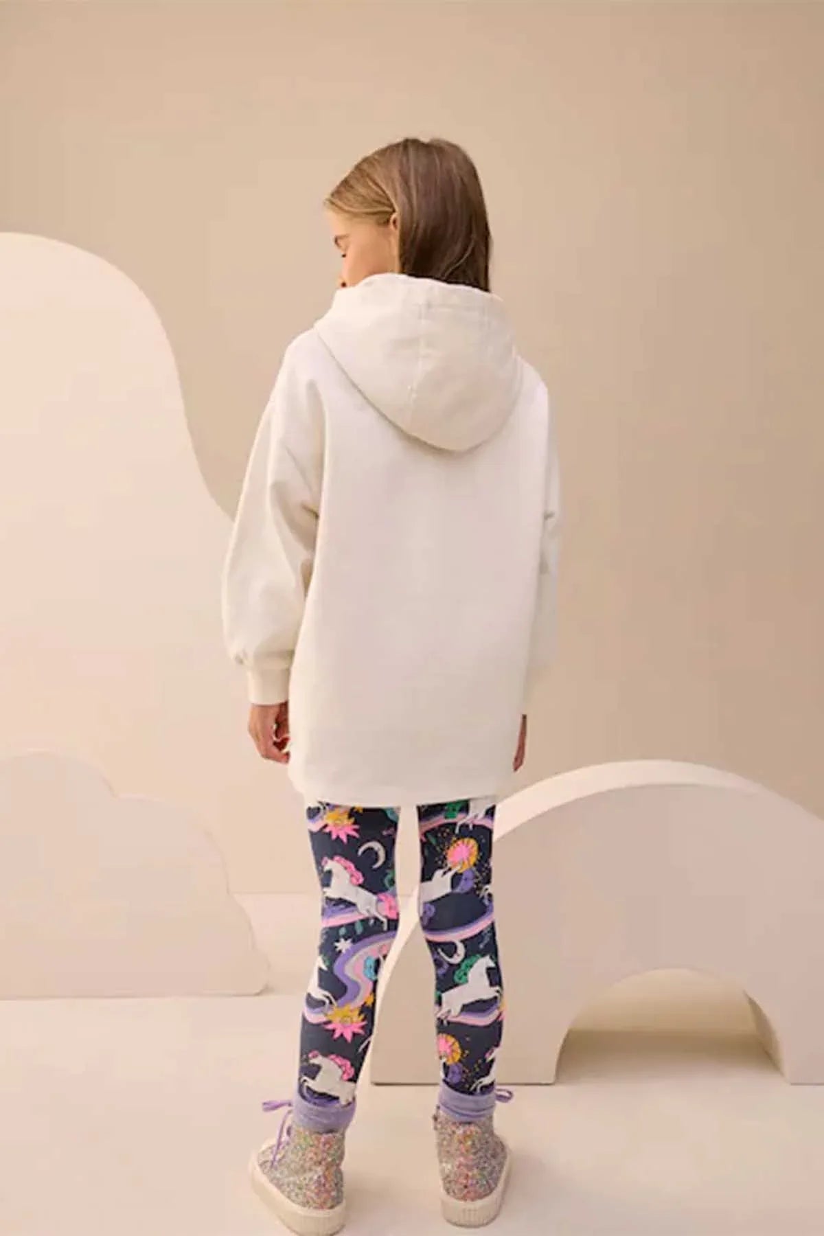 Ecru/Navy Unicorn Graphic Print Hoodie Leggings Set (3-16yrs)