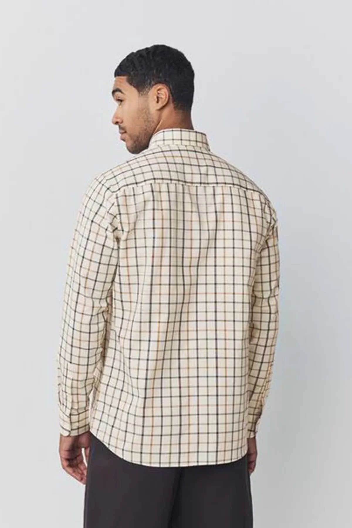 Ecru Tattersall Check Regular Fit Easy Iron Button Down Oxford Shirt