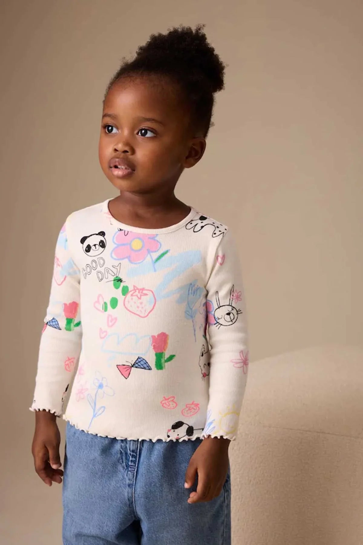Ecru White Rib Long Sleeve T-Shirt (3mths-7yrs)