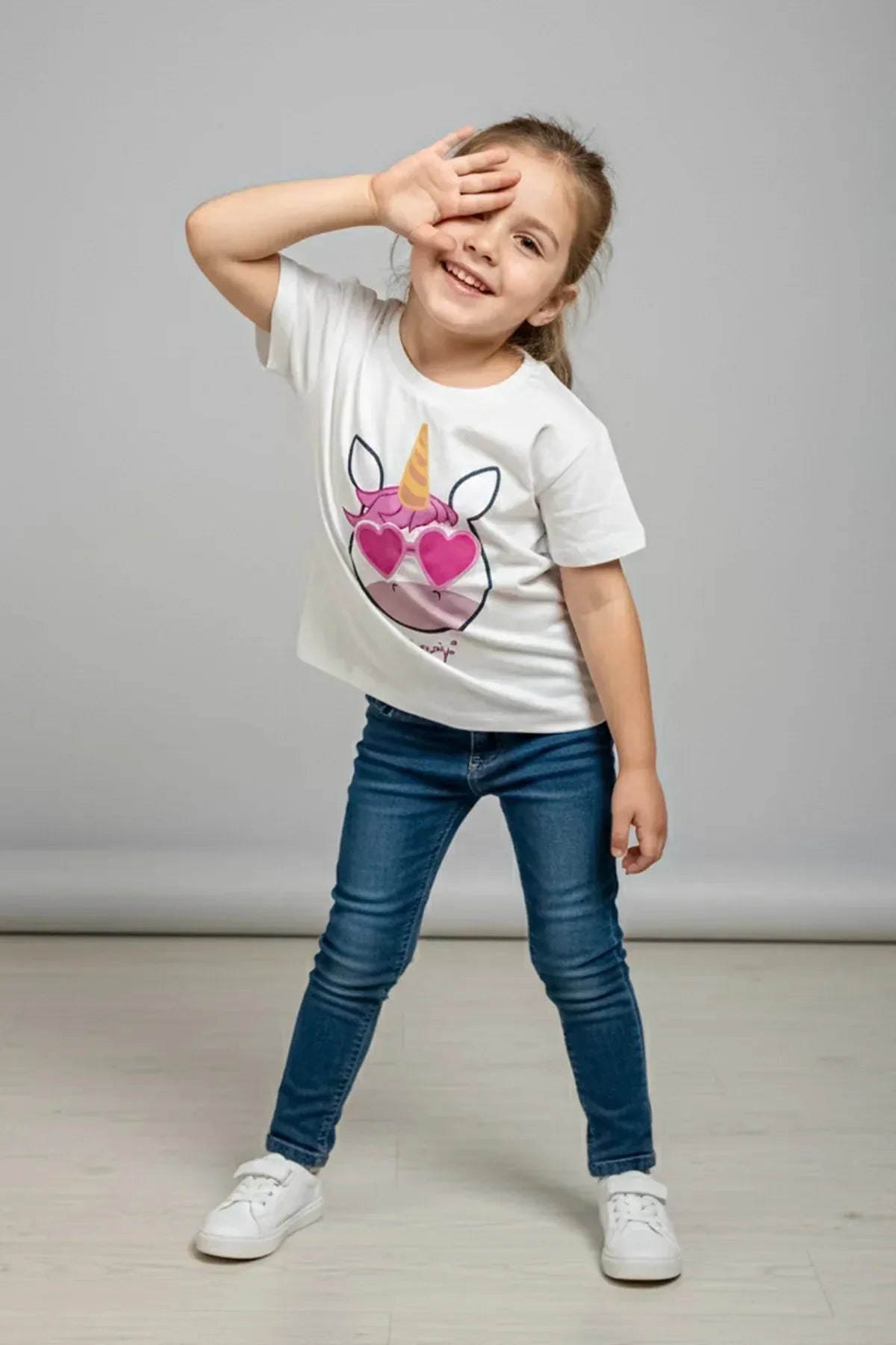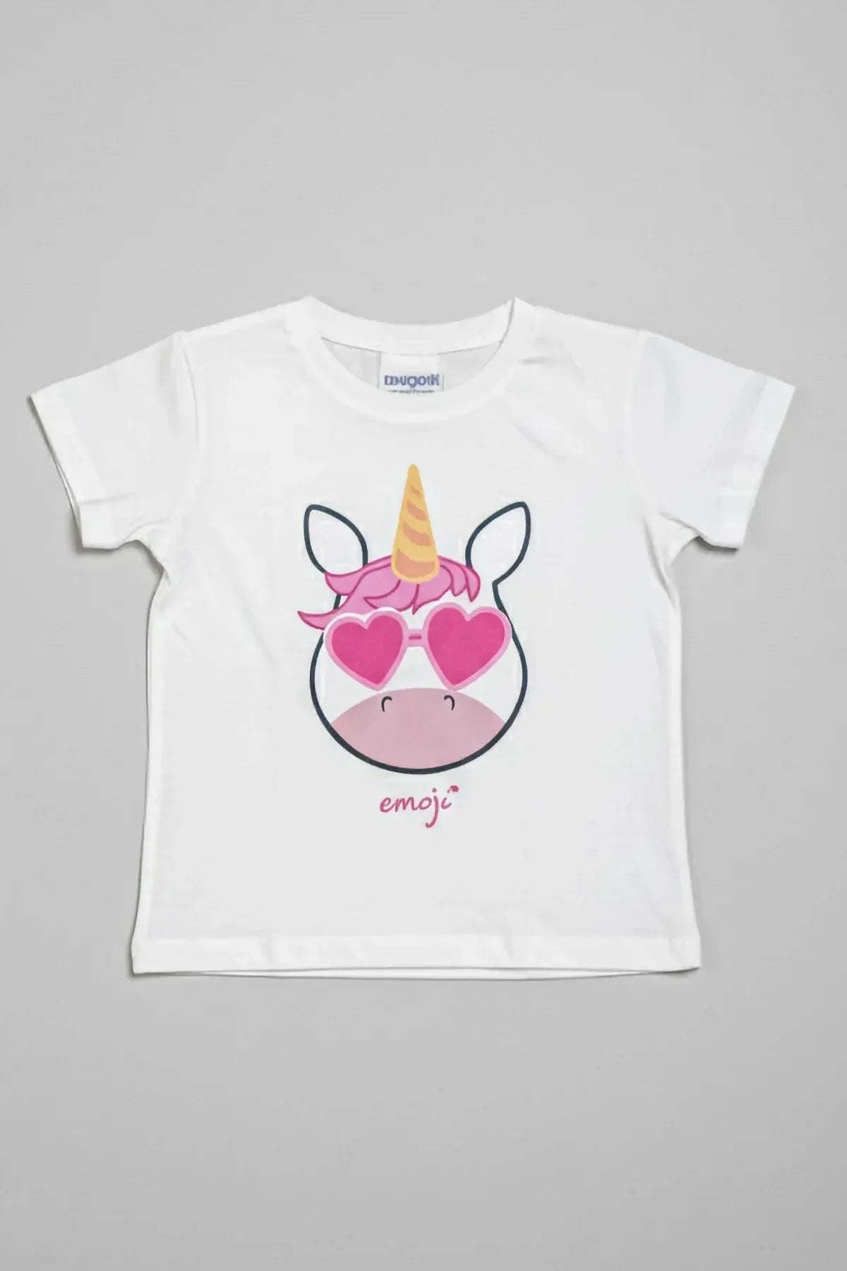 Add a playful touch to your child's wardrobe with this Unicorn Emoji graphic t-shirt, featuring a cute unicorn with heart-shaped sunglasses and a golden horn. Crafted from soft, breathable cotton, its perfect for everyday comfort and colorful style.