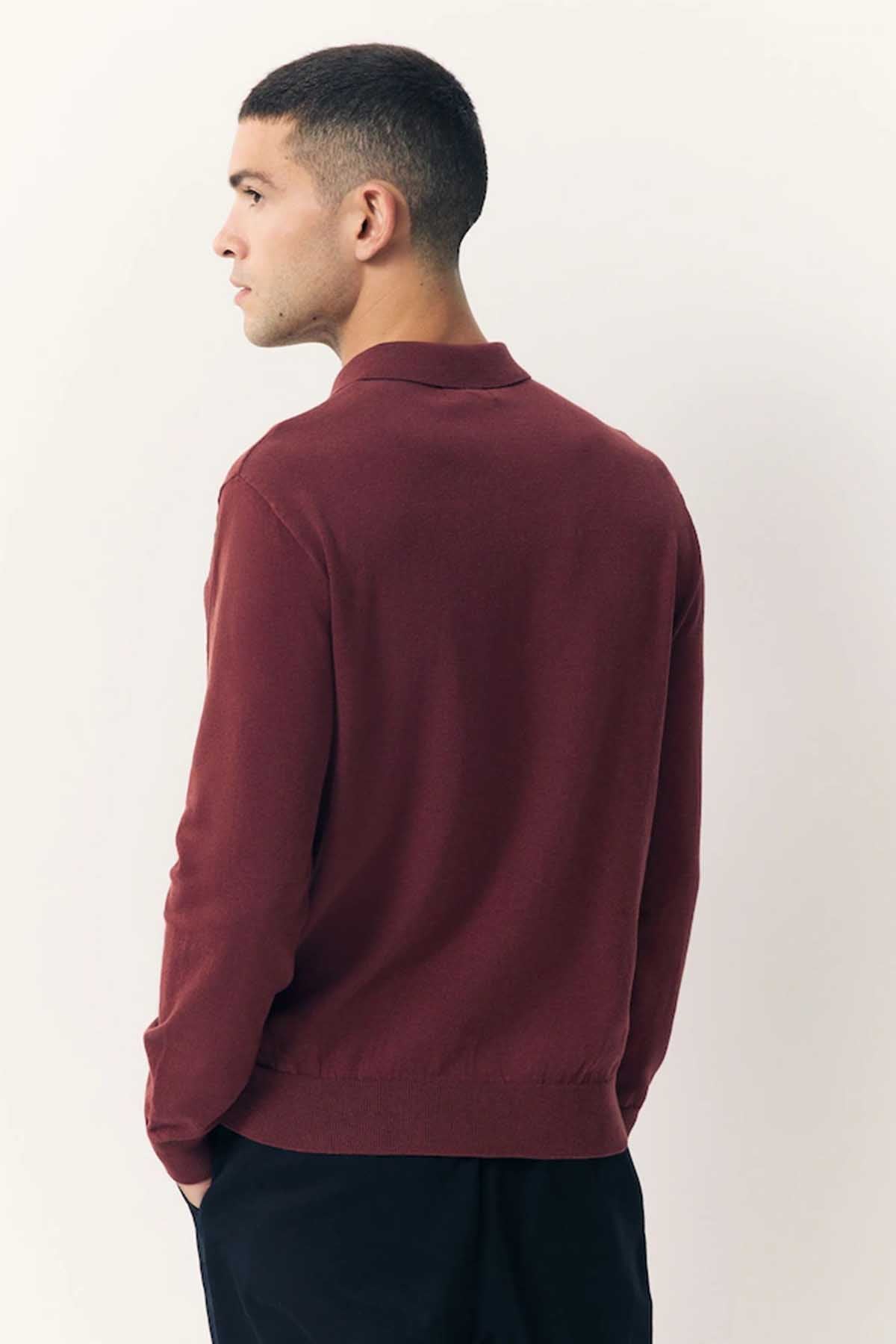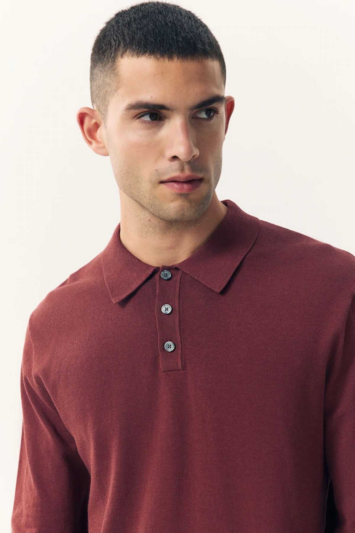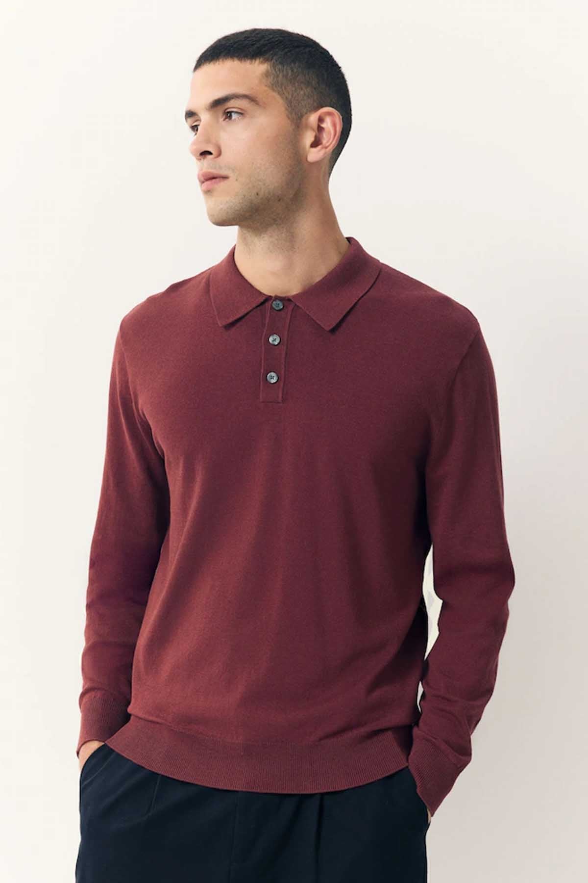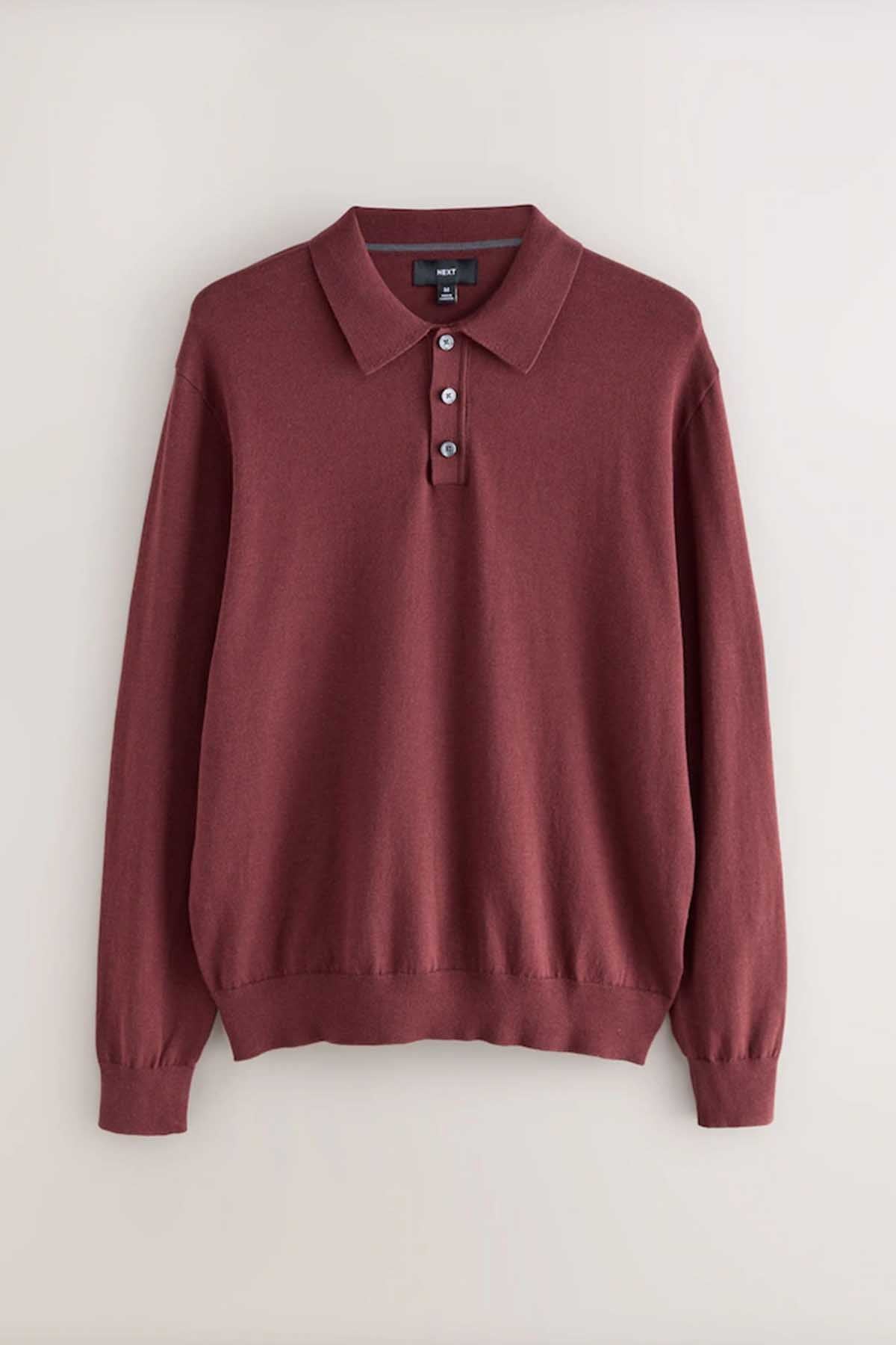 Red Regular Fit Cotton Rich Long Sleeve Knitted Polo Shirt