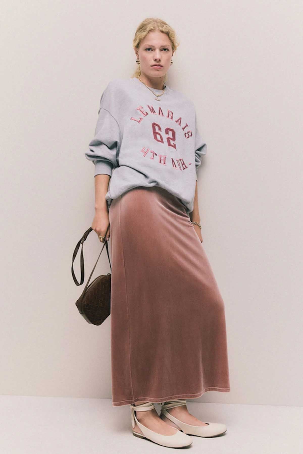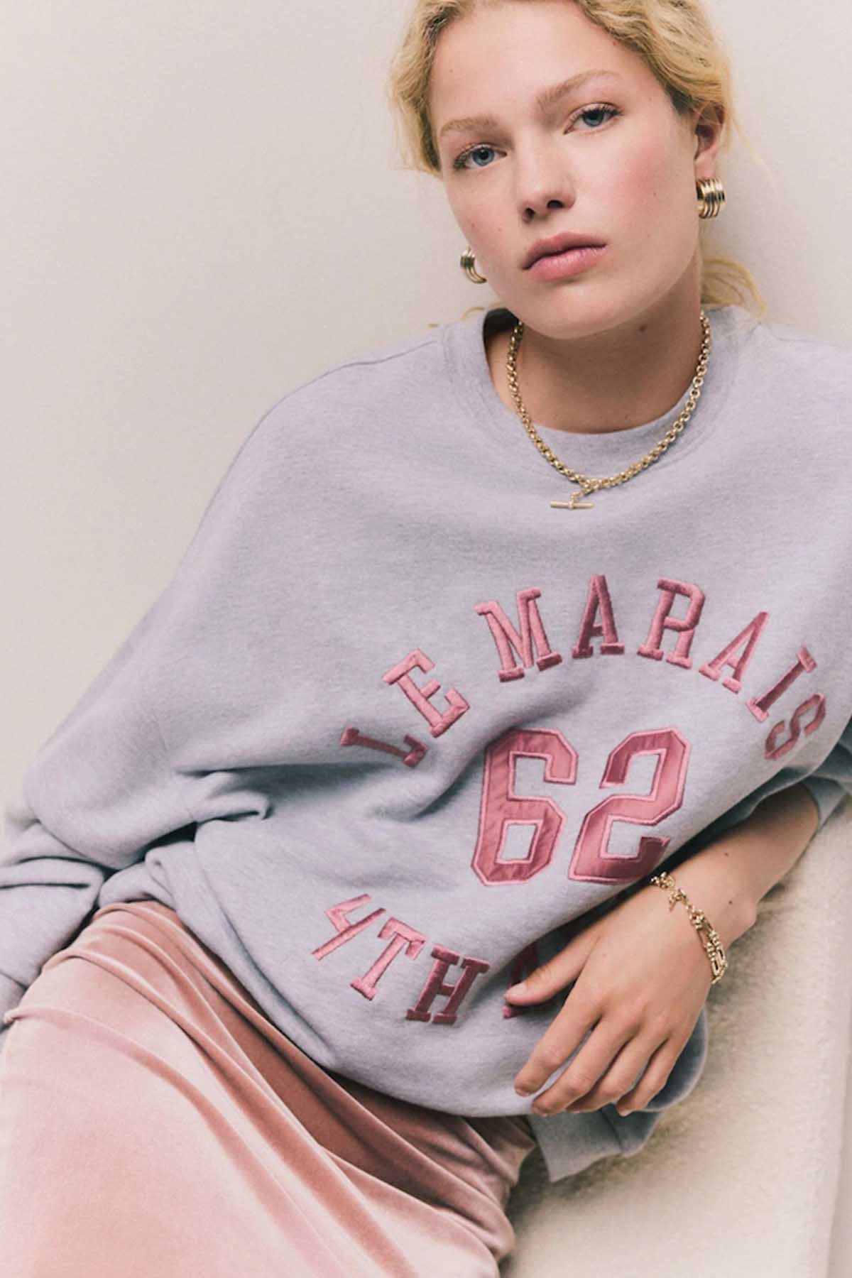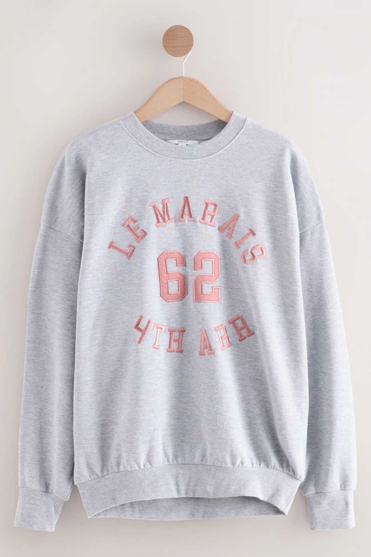 Grey Graphic Satin Applique 'Le Marais' City Longsleeve Crewneck Sweatshirt
