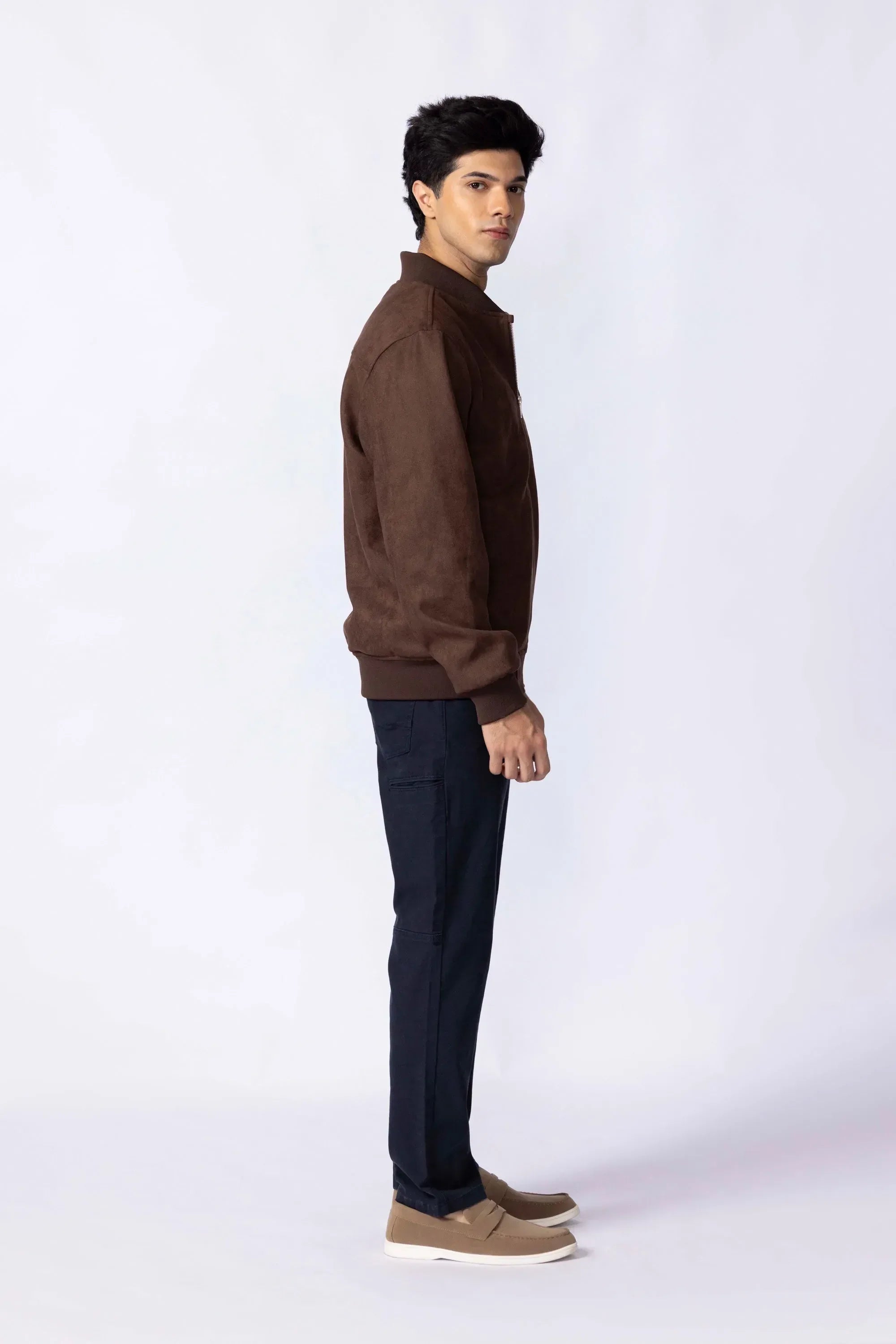Crafted to feel as good as it looks, this jacket offers a suede-like texture without the added weight, creating a refined layer for elevated everyday wear. Clean, minimal lines frame the silhouette, complemented by welt pockets, ribbed edges, and a touch of structure that keeps the look sharp. With its soft hand feel and detail-led design, it brings quiet confidence and a streamlined, contemporary finish