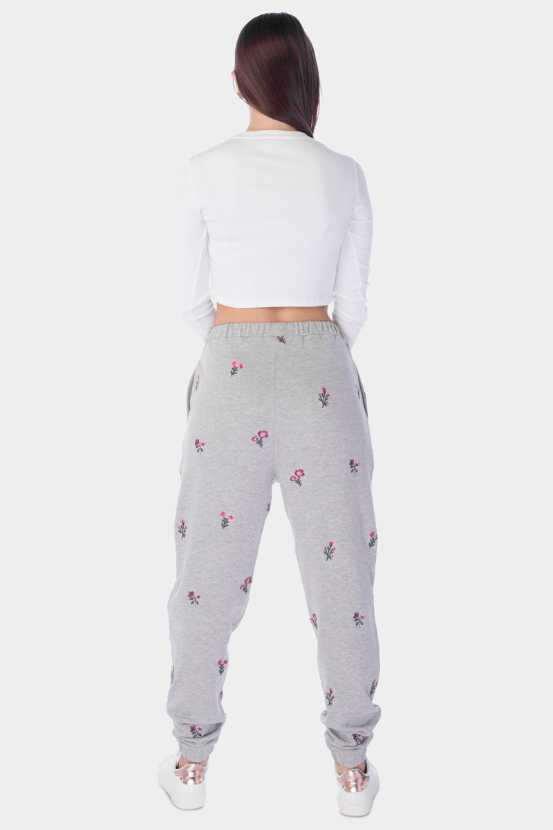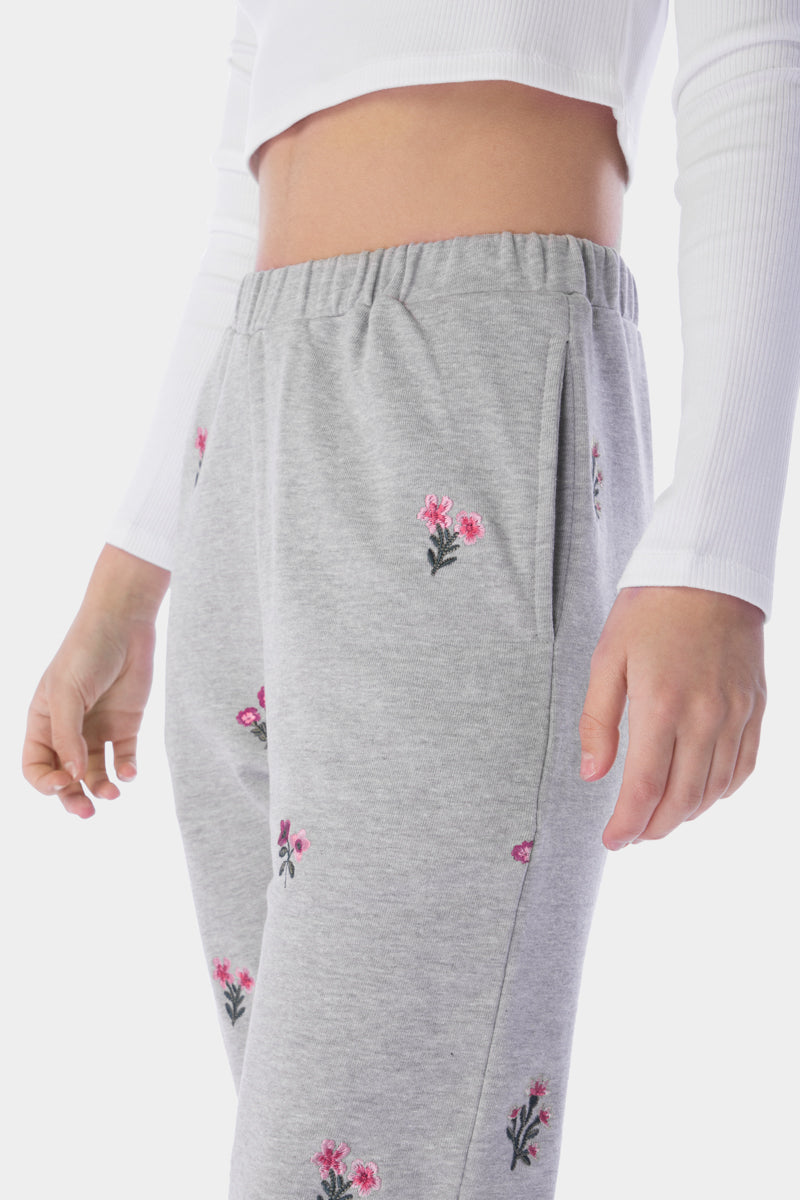 FLORAL EMBROIDERY FLEECE PANTS