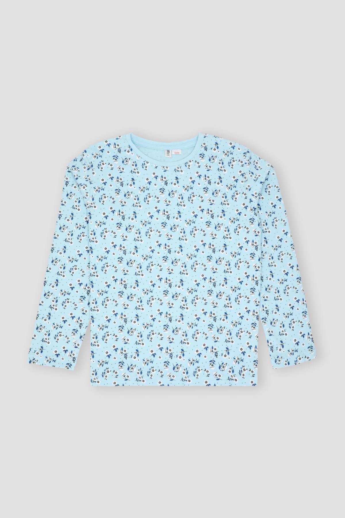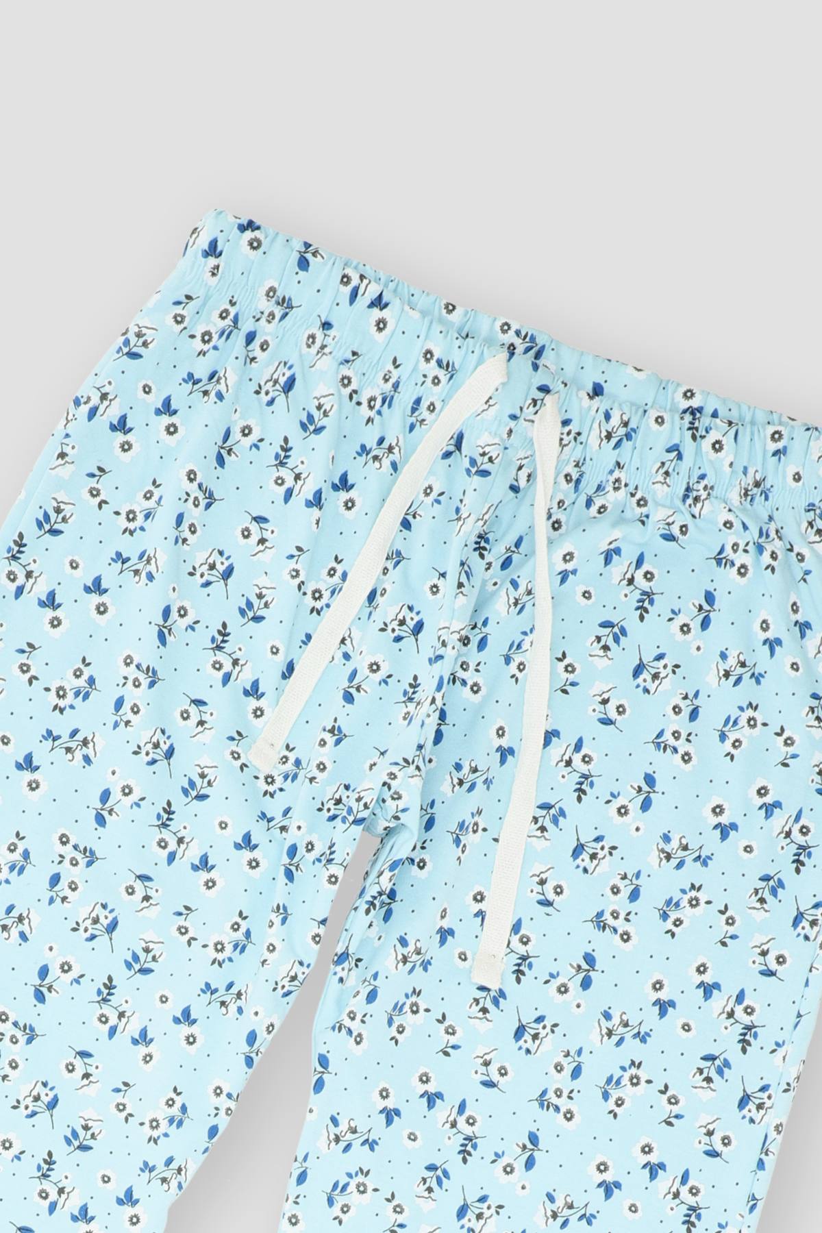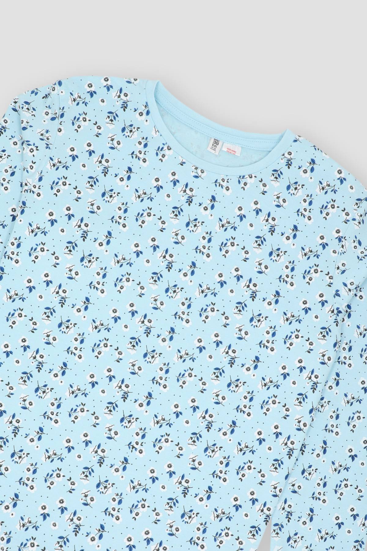 100% Cotton. Floral Printed Sleepwear Featuring Crew Neck Long Sleeves T-Shirt And Pjs With Drawstring