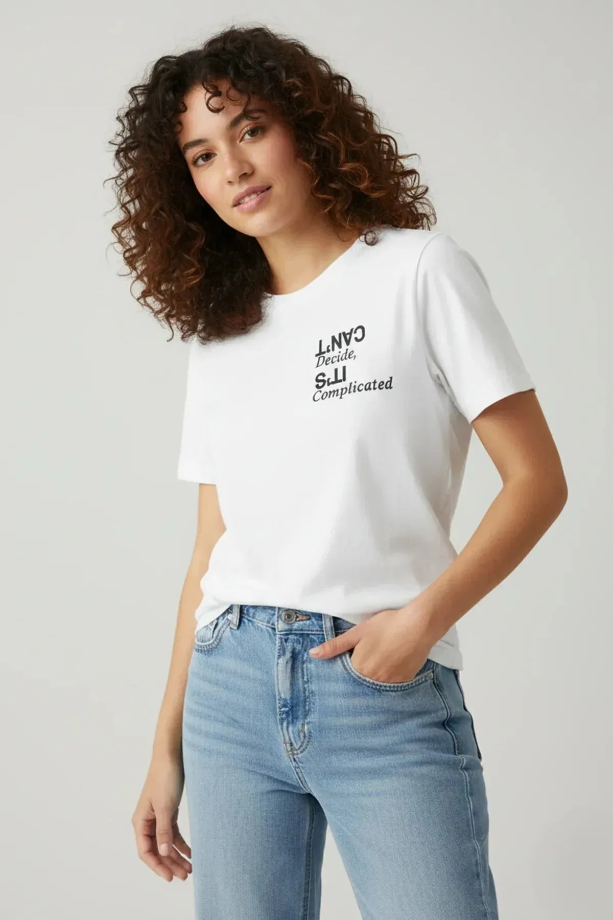 Keep it effortlessly cool with this white graphic t-shirt featuring the quirky quote, Still Complicated. Made from soft, breathable cotton, it offers a relaxed fit and minimal design perfect for casual days, jeans, and easy everyday wear.