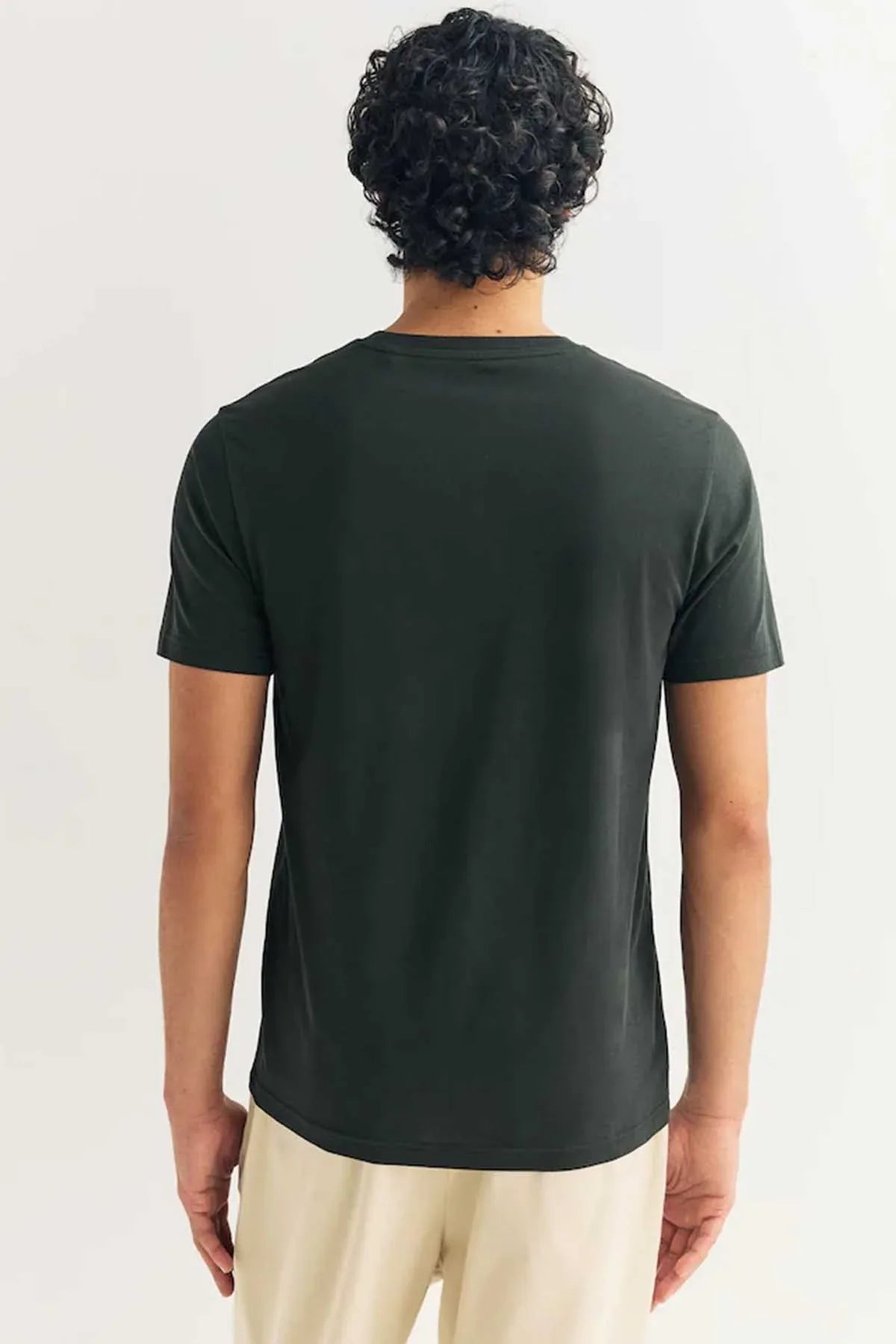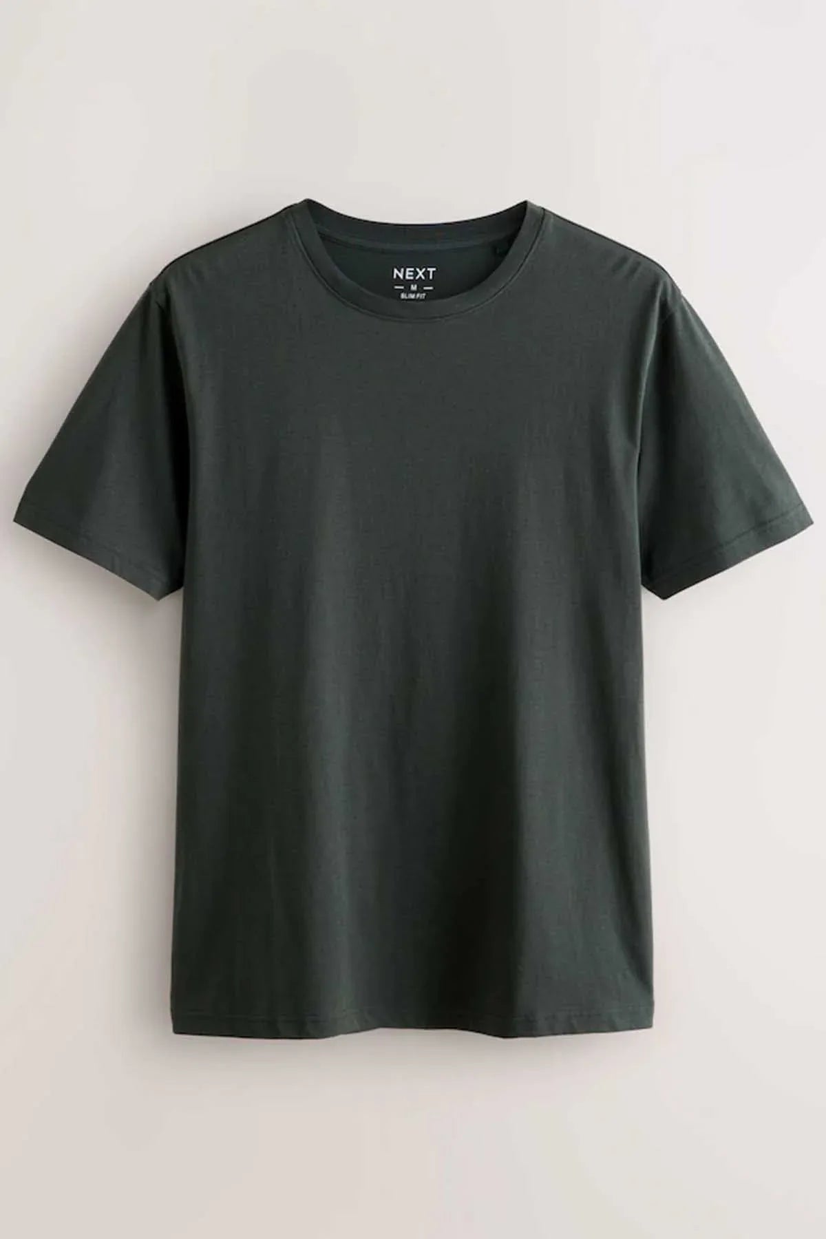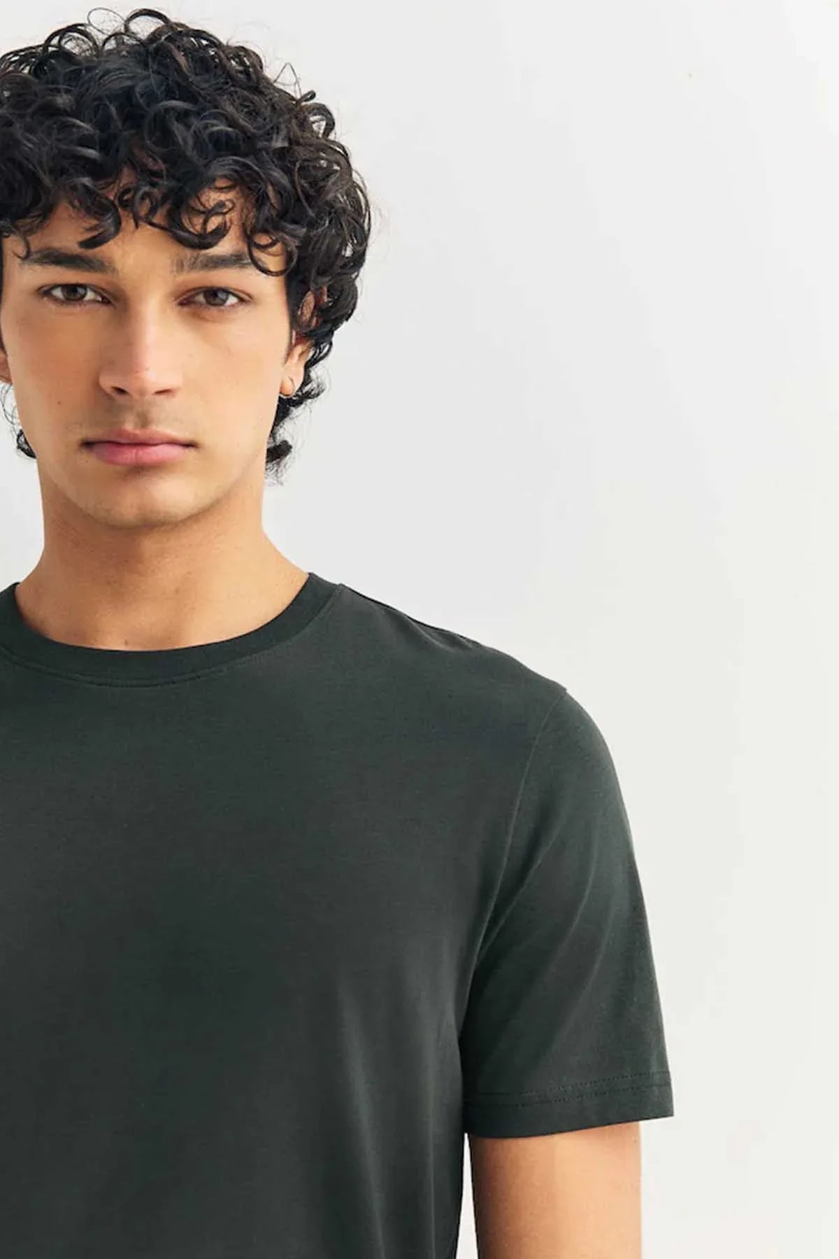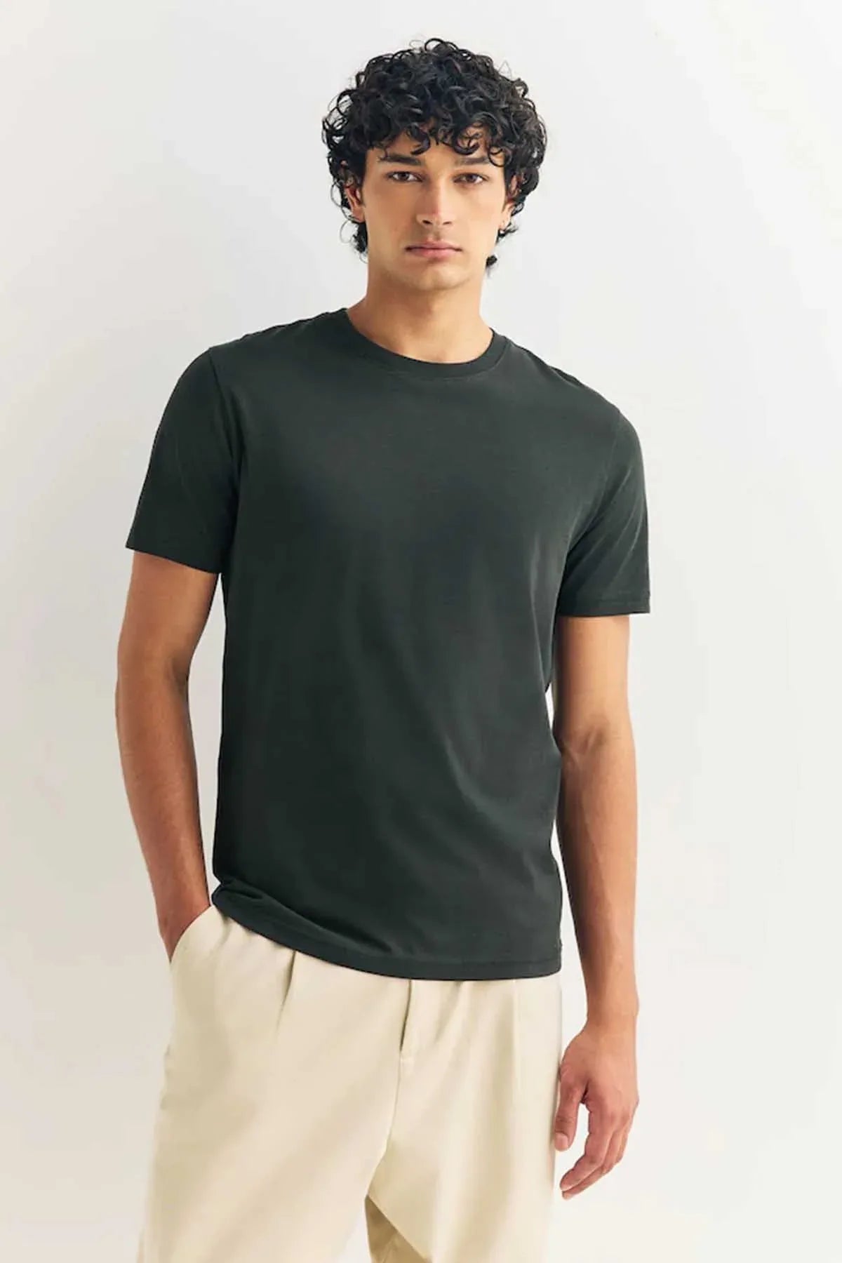 Green Dark Slim Fit Essential Crew Neck Cotton T-Shirt