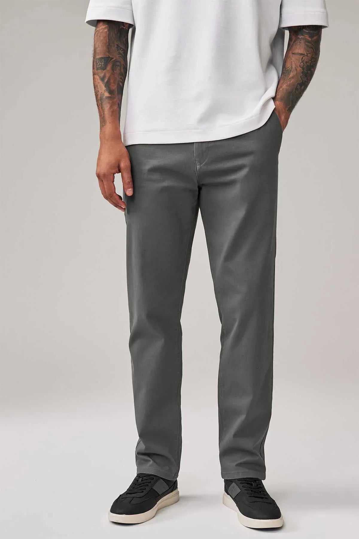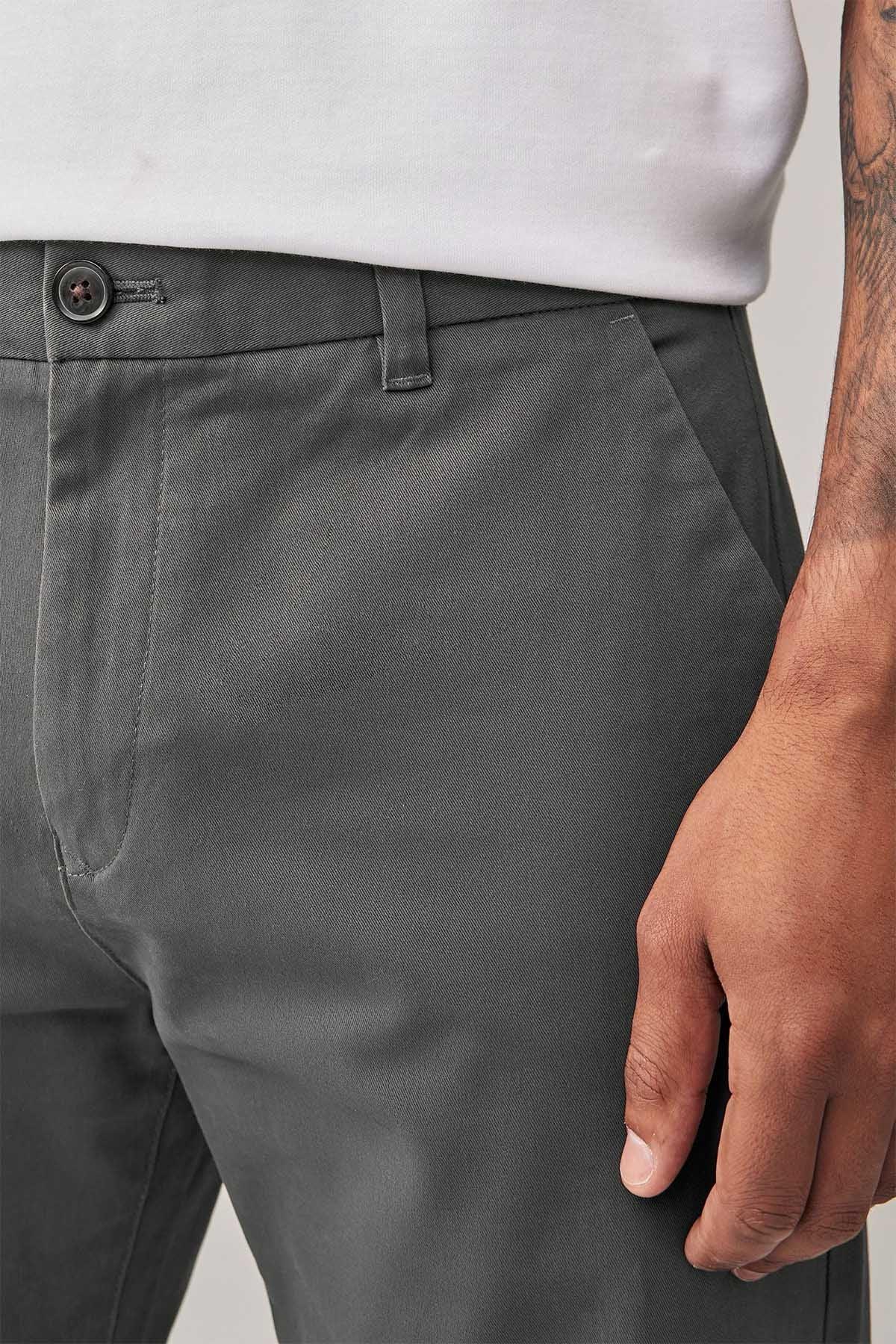Grey Dark Straight Fit Stretch Chinos Trousers