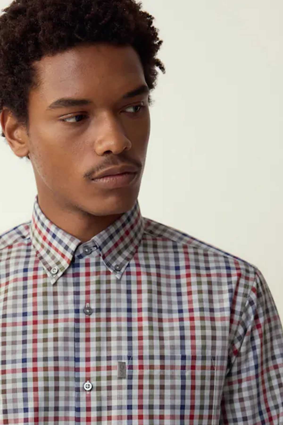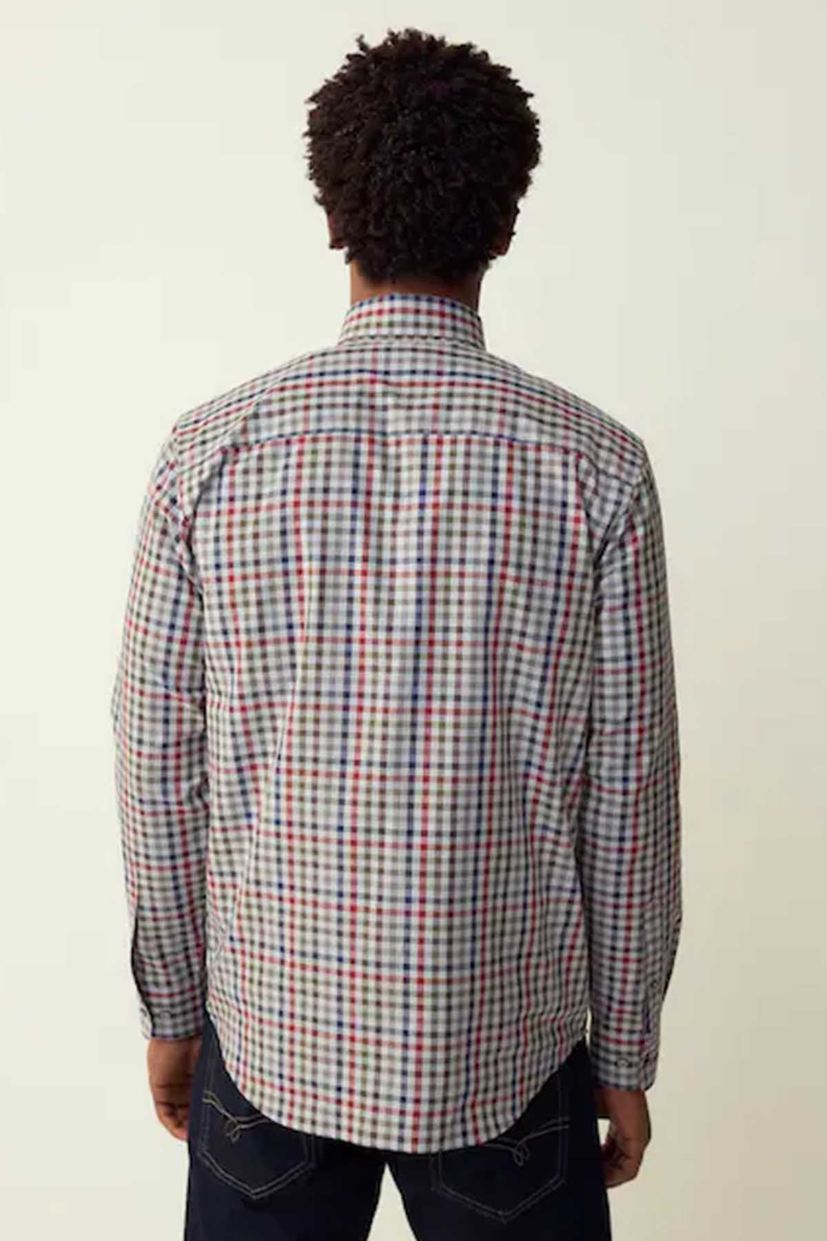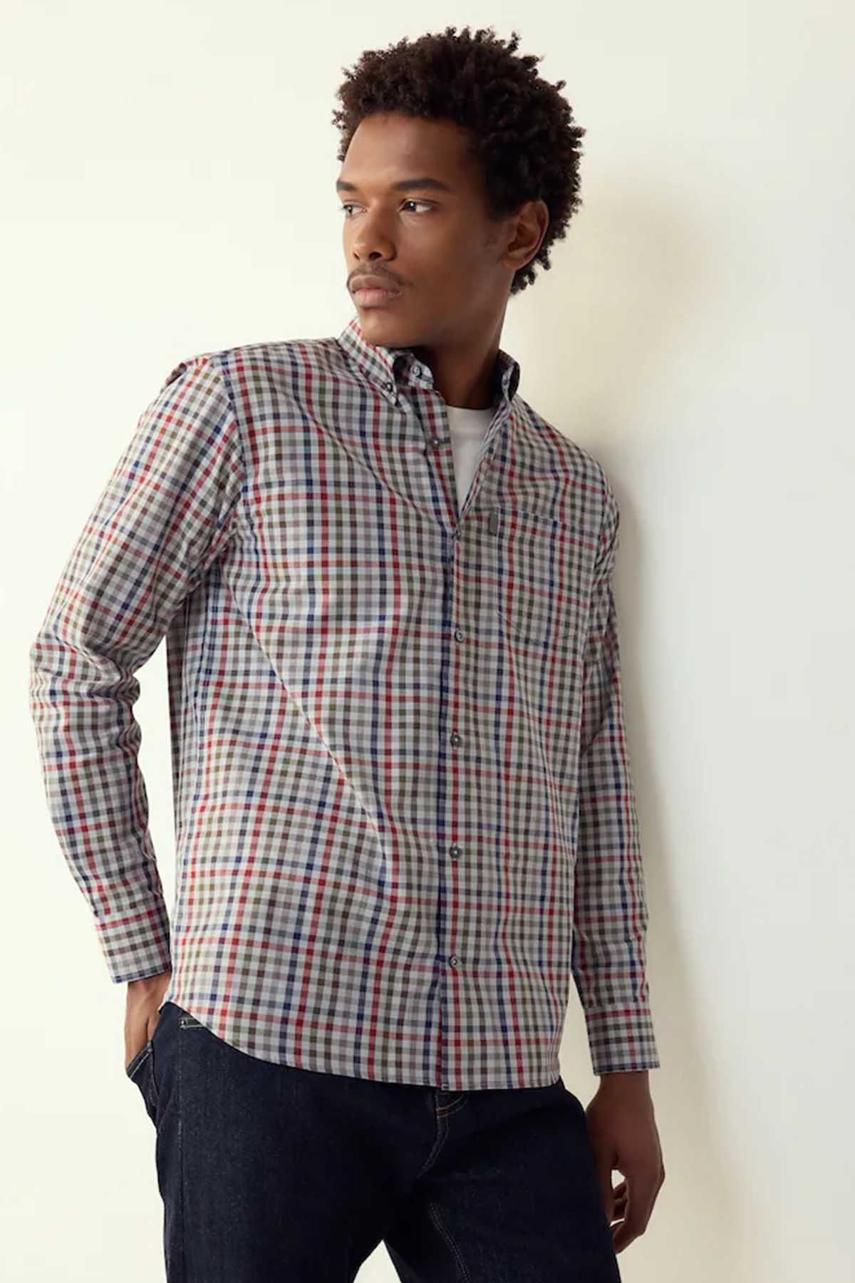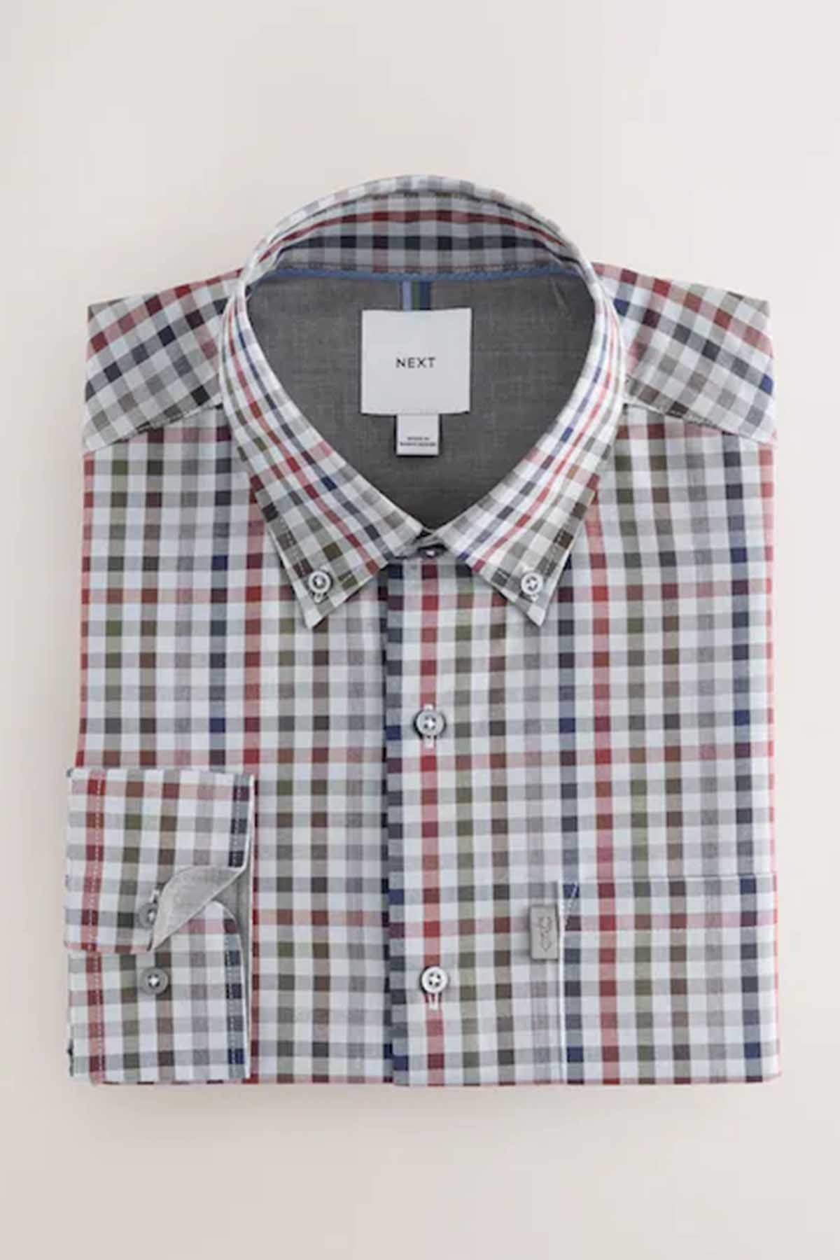 Grey/ Multi Colour Gingham Regular Fit Easy Iron Button Down Oxford Shirt