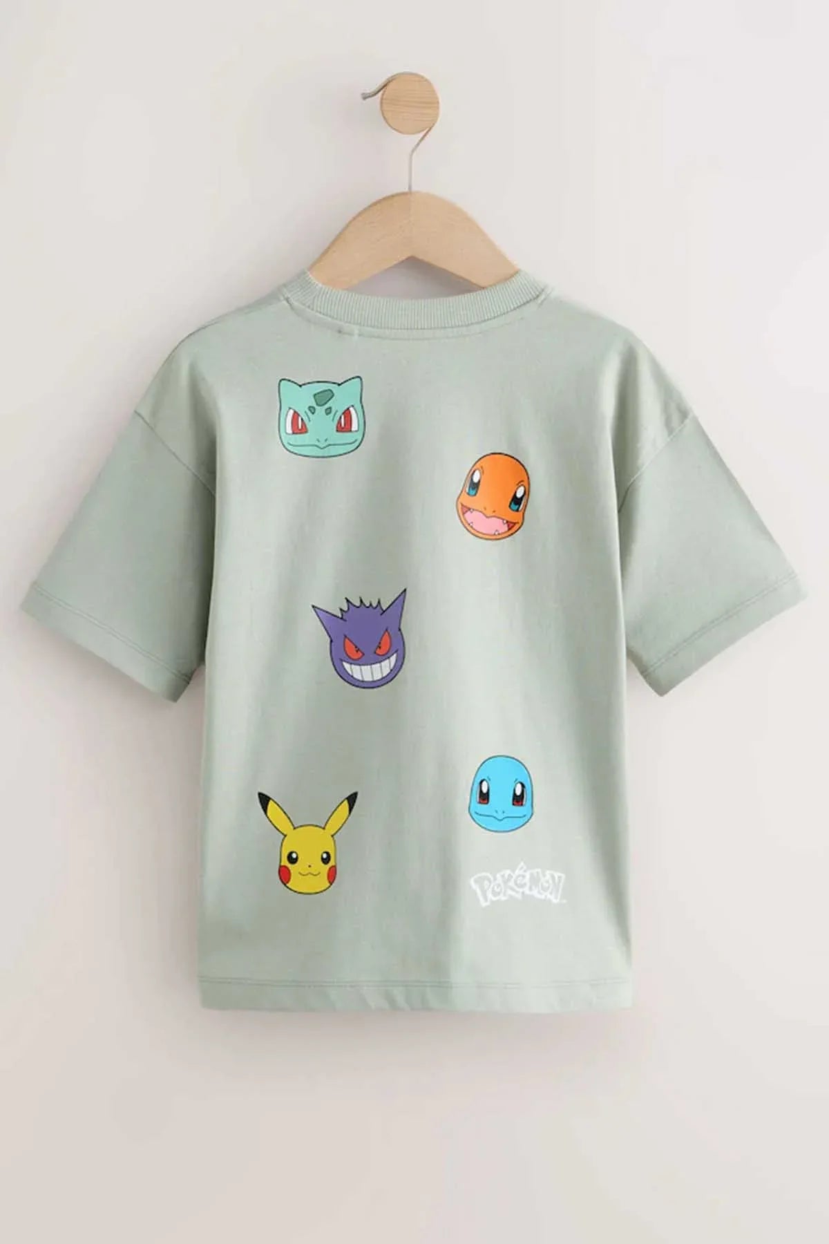 Grey Pokemon Multi Character Back Print T-Shirt (4-14yrs)