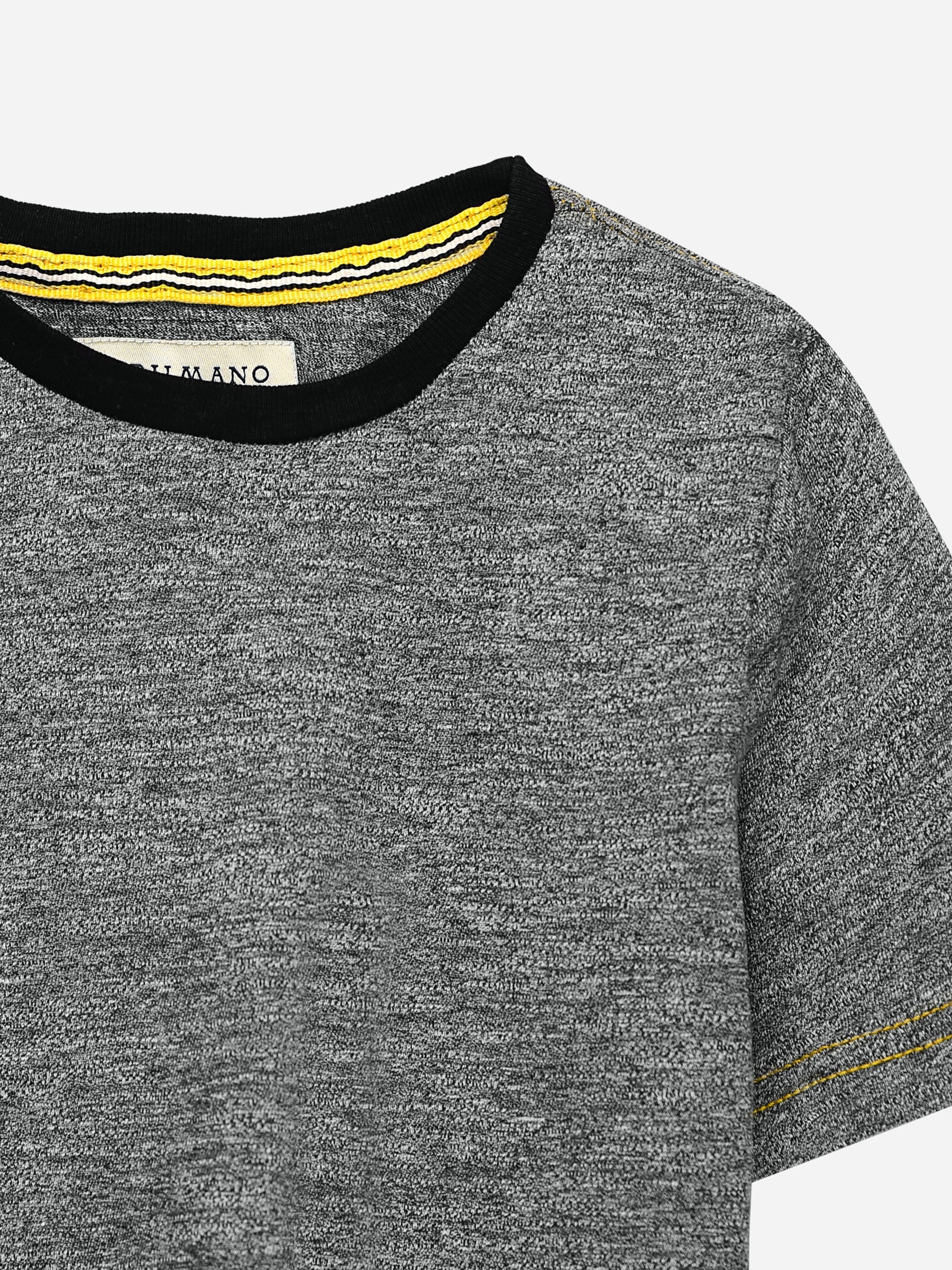 Grey Marl t-shirt from Junior collection in super light knitted fabric & contrasting rib. Soft & comfortable, this summer essential piece is ideal for every day use