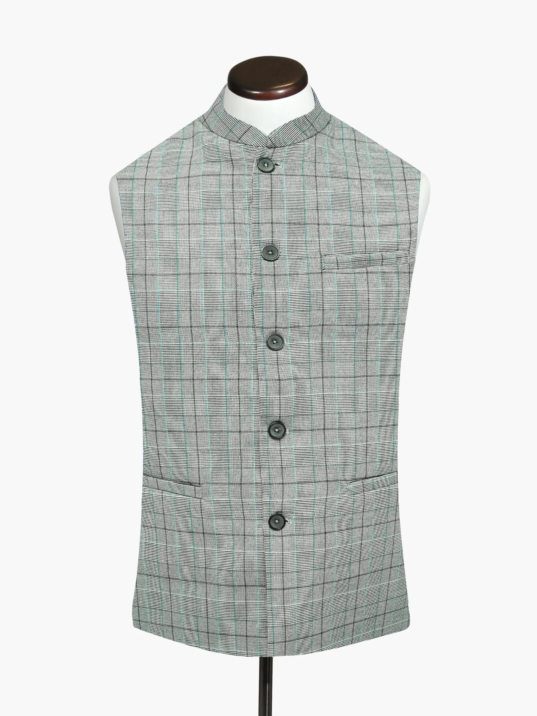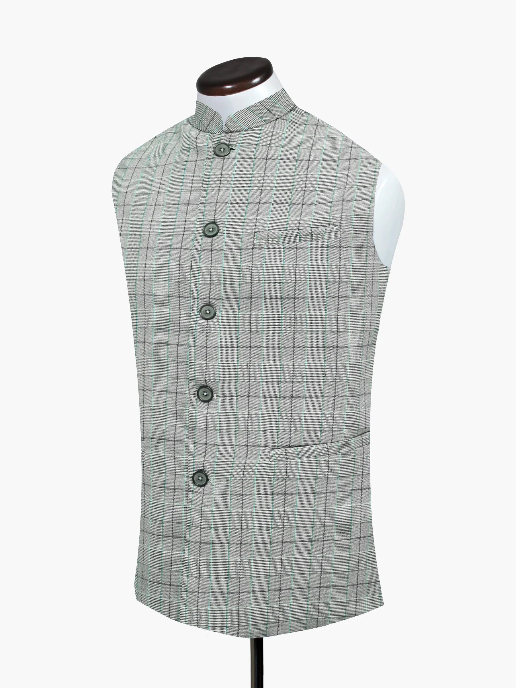 Elevate your formalwear with this finely tailored waistcoat, designed in a refined grey shade with a classic windowpane check pattern. Crafted for a structured and elegant fit, this men’s waistcoat is perfect for weddings, business events, and formal occasions.