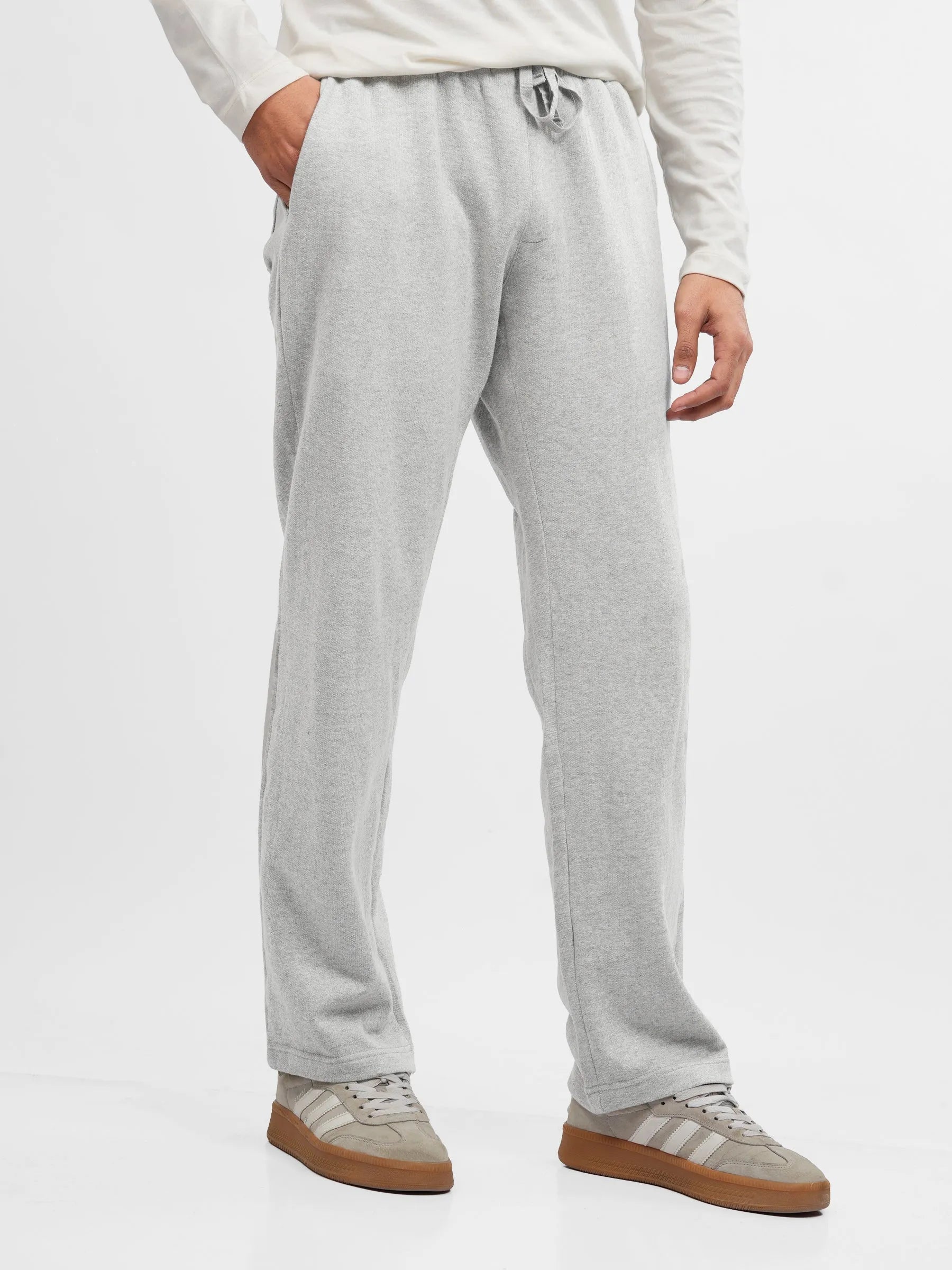 Kick back in effortless comfort with our heather grey sporty regular fit knitted pajama. Made from soft, breathable 100% cotton terry knitted fabric, it features a relaxed regular fit with an easy waistband & front dart for a clean look. Minimal, and built for lounging, travel, or everyday downtime, this is a must-have item
