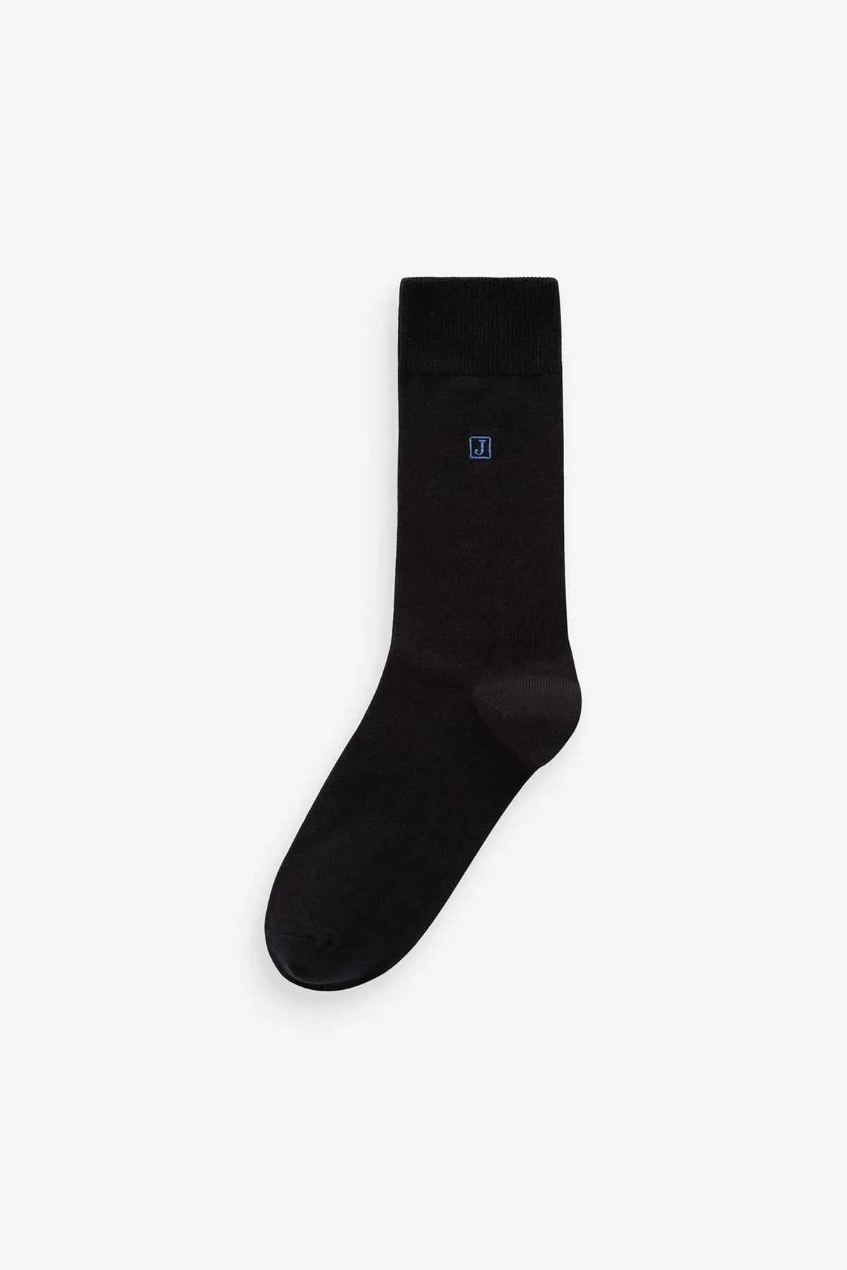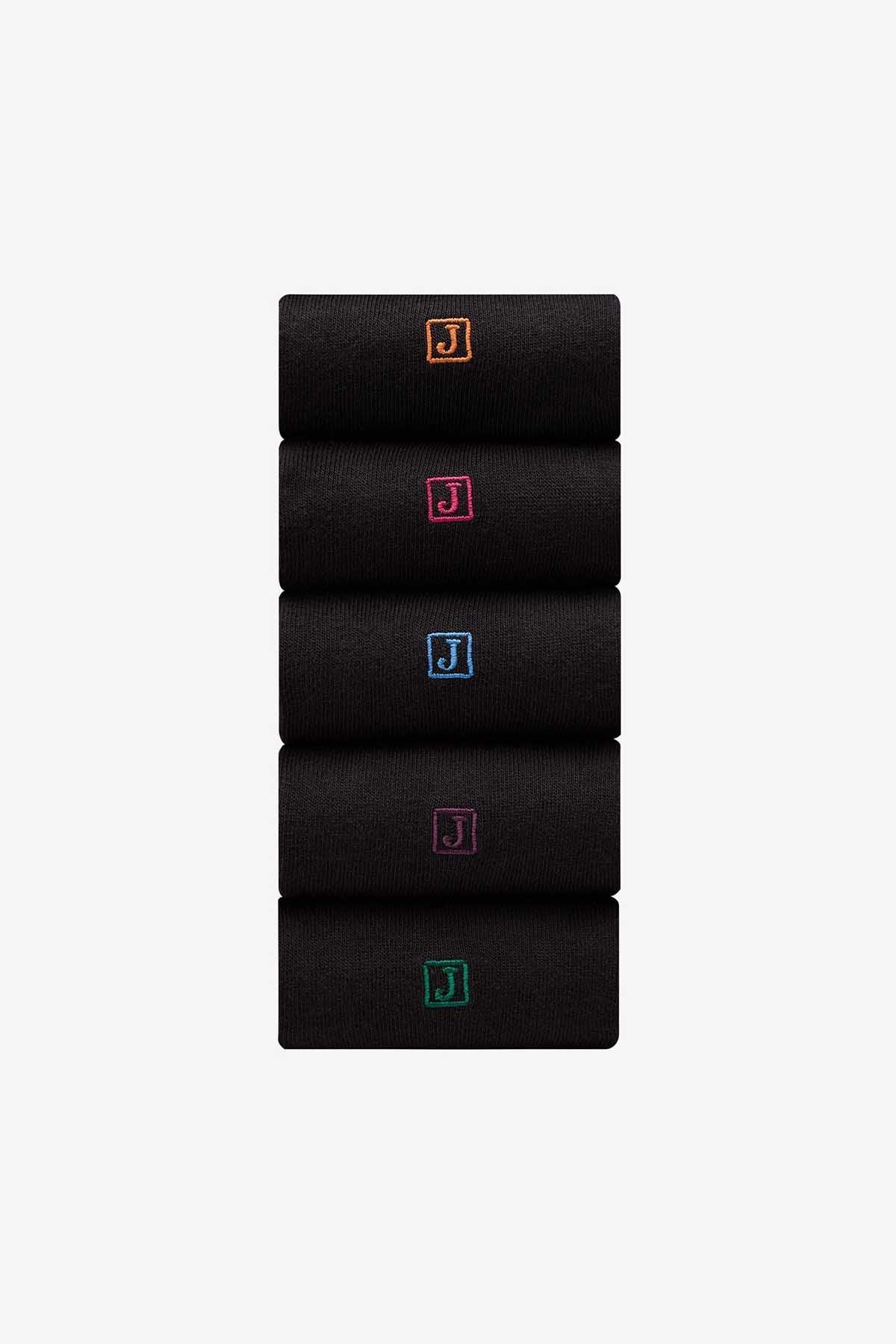 Inital Black Embroidered Lasting Fresh Socks 5 Pack