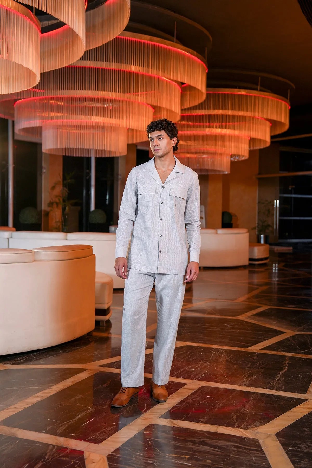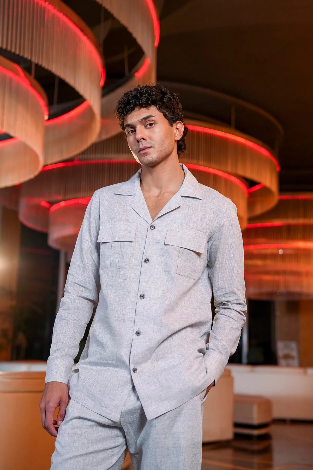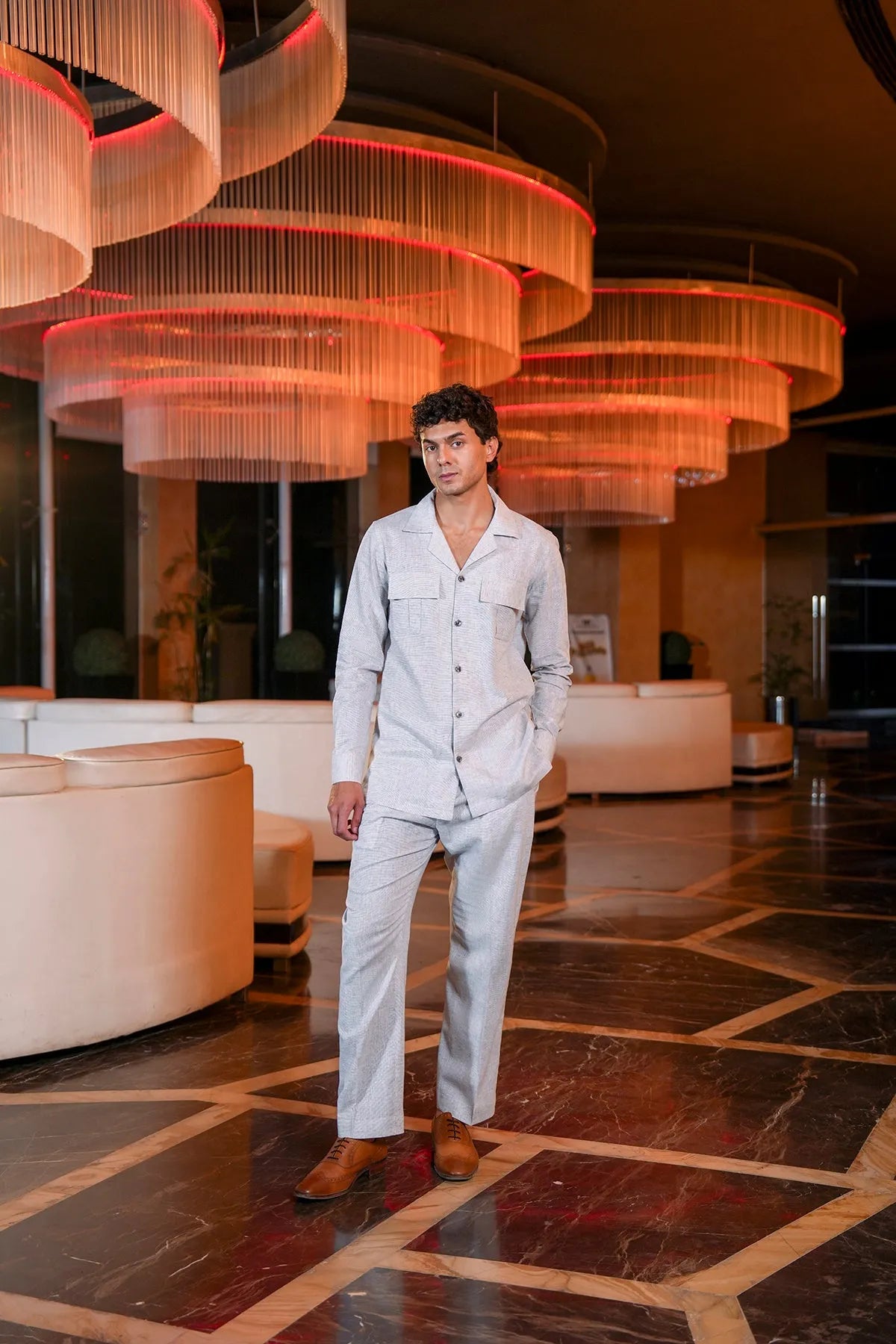 Step into effortless style with this yarn-dyed slub textured co-ord set, crafted from soft, breathable premium fabric for all-day comfort. The matching top and bottom feature functional patch pockets, adding a practical yet stylish detail to the modern silhouette. Perfect for casual outings, relaxed gatherings, or everyday wear, this set combines contemporary design with understated elegance.