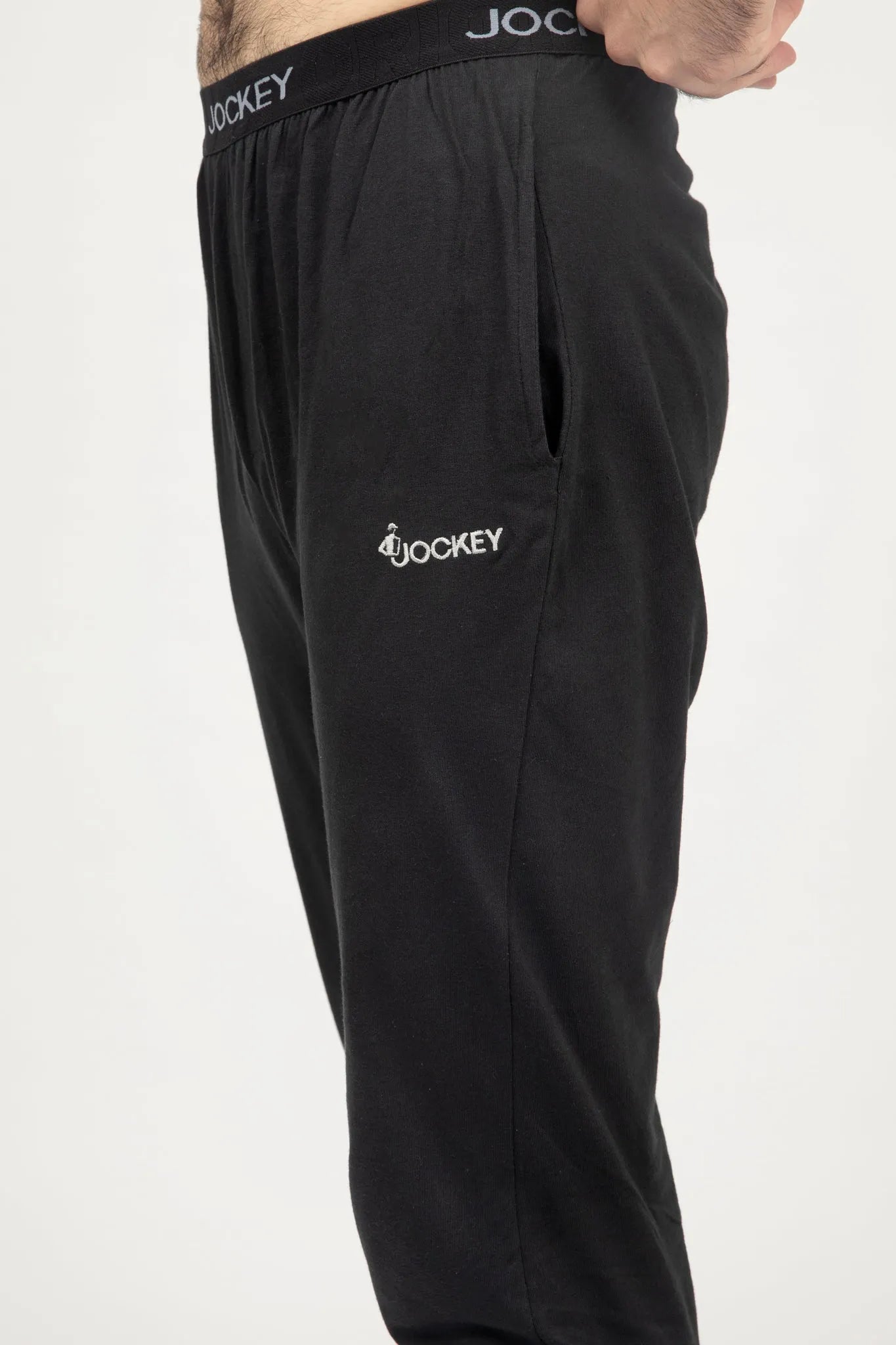 The Jockey® smart fit comfort+ knit pajama trousers made of fine combed cotton fabric, includes an ultra soft Jockey logo waistband, side pockets and closed bottom rib style.