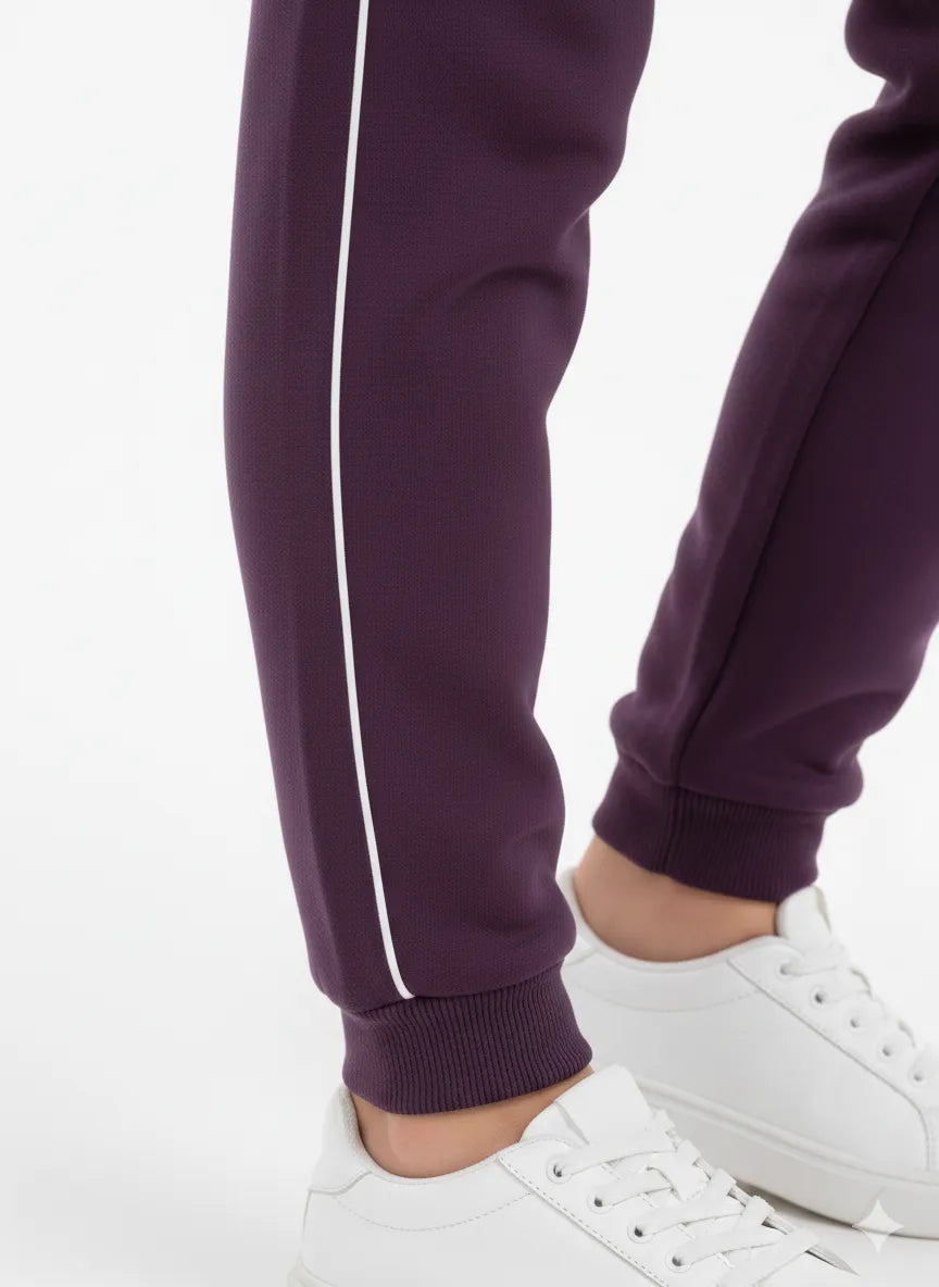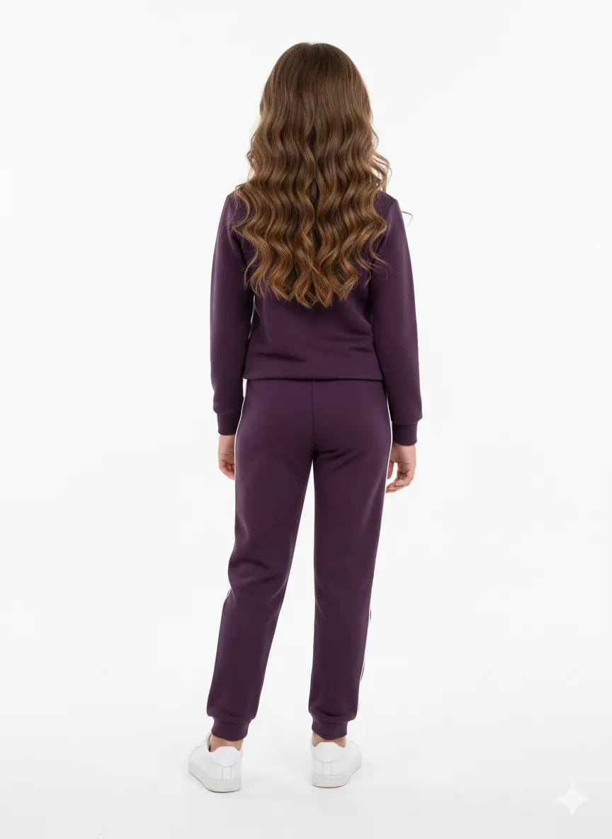 Stylish purple jogger pants for girls designed with a soft elasticated waistband and ribbed ankle cuffs. Crafted from comfortable, warm fabric for everyday wear. Perfect for casual outings and relaxed winter looks.