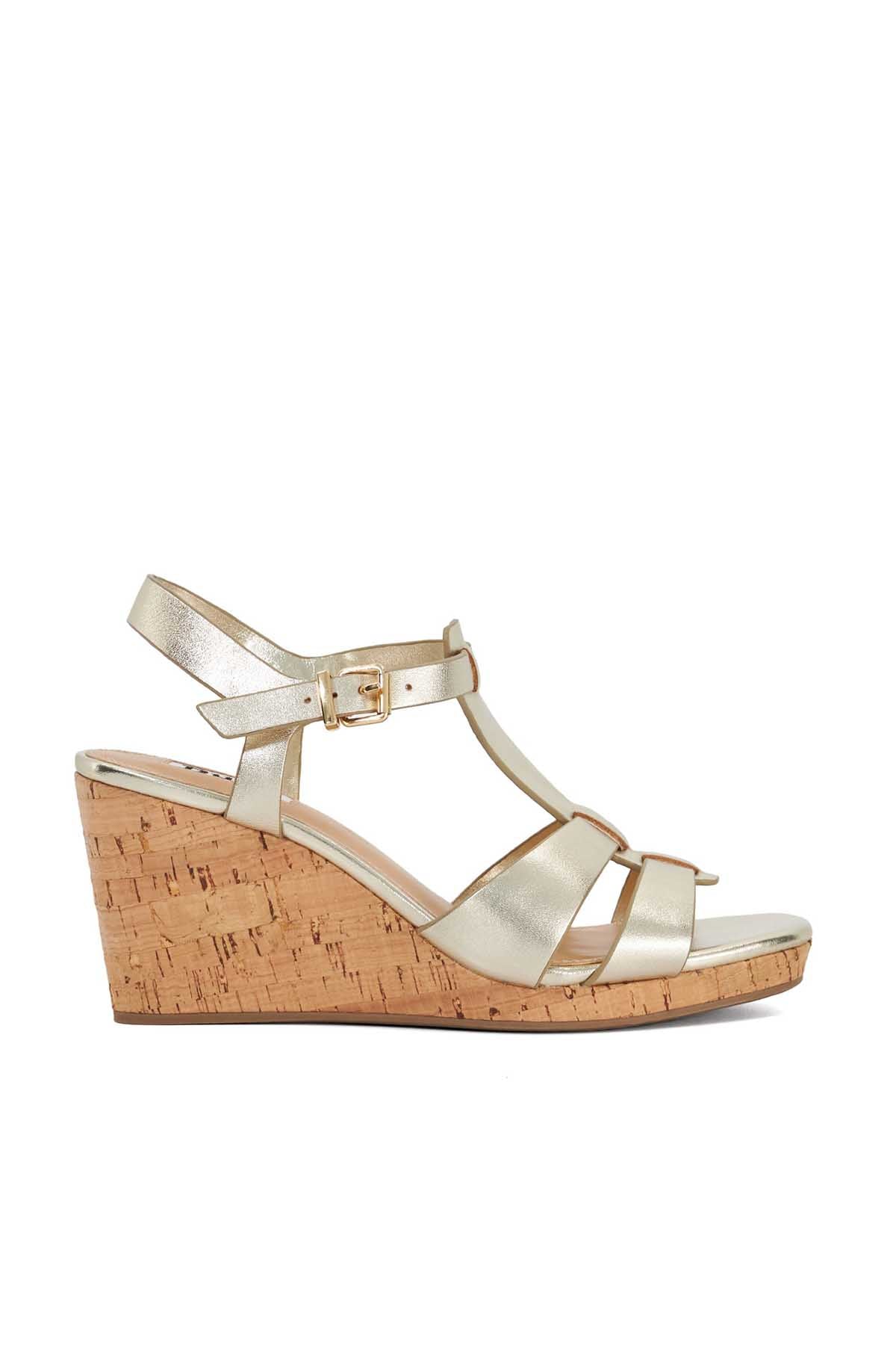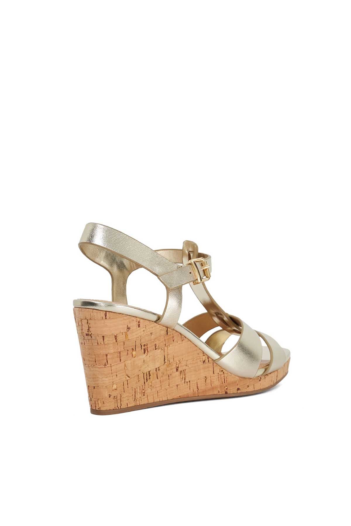 Our Kastro Wedge Has Been Crafted From Soft Leather The Foot Held In Place With A Threaded T-Bar Front Strap And An Adjustable Ankle Strap. Resting On A Cork Wedge This 70S Inspired Silhouette Will Elevate Your Day To Evening Looks.